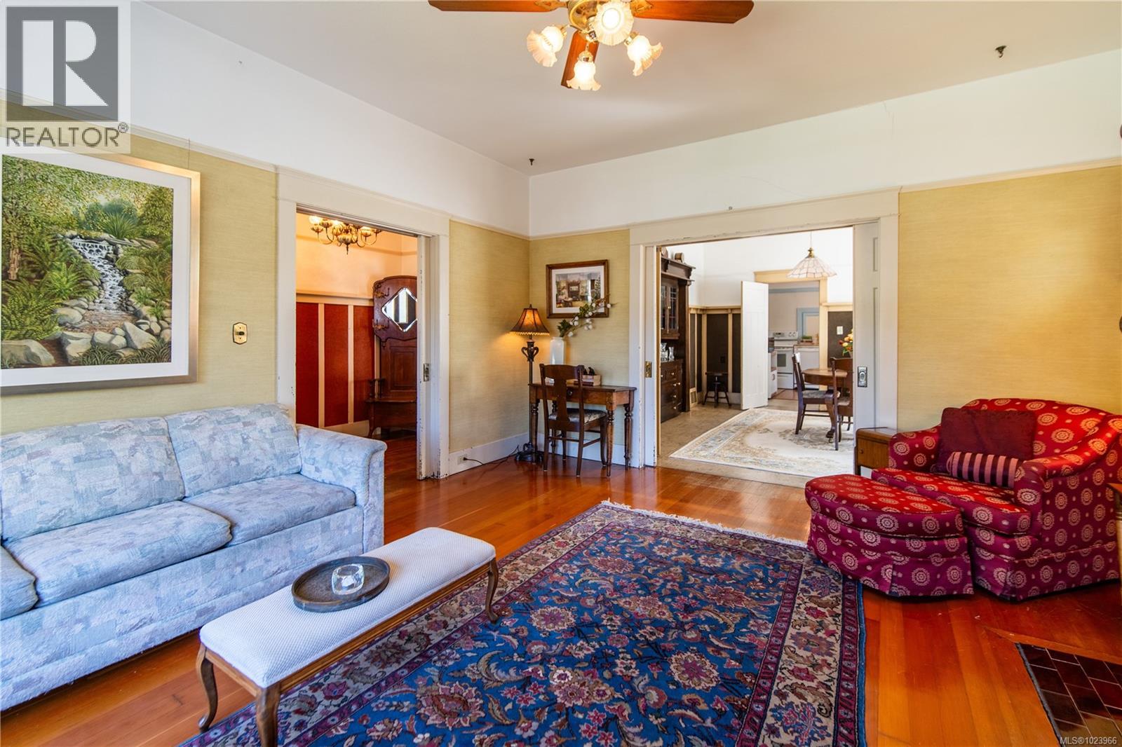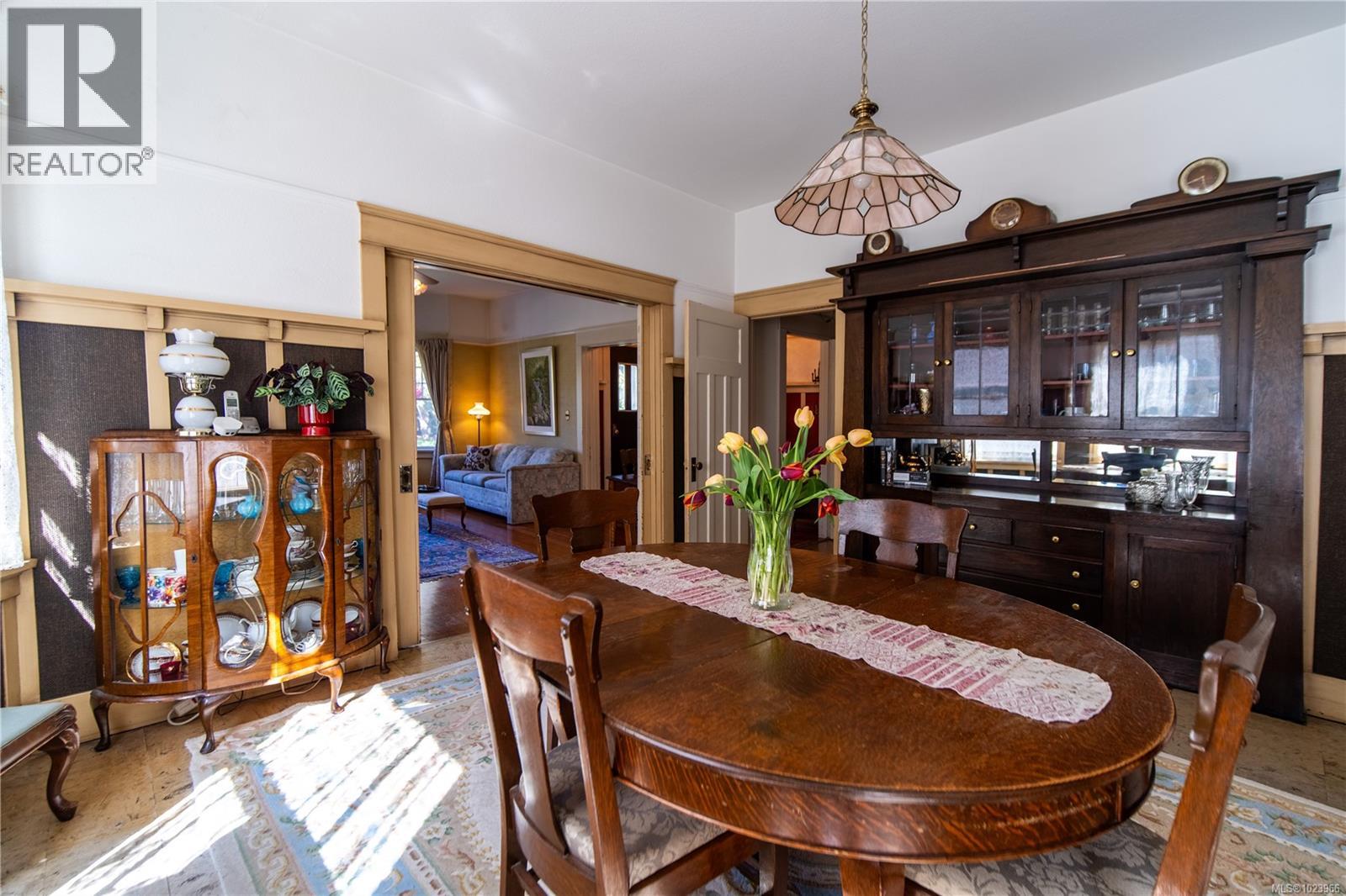 Heritage Elegance Meets Cook Street Village. In one of Victoria’s most walkable & bike-friendly neighbourhoods, this timeless Fairfield character residence sits proudly on a generous 50 x 124 lot, steps to village amenities, Dallas Rd waterfront & Beacon Hill Park. Lovingly held by the same family for over 50 years - assessed at $1,550,000 (2026)- a rare opportunity to aquire a true early-1900s classic. Spacious grand rooms w an abundance of oversized windows create light-filled living throughout. An enclosed entrance w pocket doors offers a proper arrival, while the large front verandah & covered rear sunroom extend the living space outdoors in every season. Original fir floors, fir trim and mouldings, classic wainscoting, solid wood pocket doors, preserved original hardware and stained glass accents reflect the quality craftsmanship of the era. The original fireplace mantle w tile surround anchors the living room. Floorplan is both generous and functional, featuring three main-level bedrooms, each w walk-in closet and window — a rare detail for this vintage, complemented by a spacious 5-piece bath on the main. Kitchen offers floor-to-ceiling cabinetry, double windows, a charming breakfast nook connected to the covered sunroom overlooking mature perennial gardens. Long driveway provides parking space for RV. Detached garage, tool shed, veggie beds & wildflowers — a true Fairfield garden setting. A finished staircase leads to the attic level where original stained glass windows frame a flexible retreat complete w bedroom, bath and beamed open space ready for finishing. Lower level w 7’ ceilings, laundry, workshop space + walk-out to the fenced backyard, offering future suite potential. Notables: roof (2015), 200 amp electrical service (2004), furnace (2020), HWT (2025), oil tank replacement (2006), blown-in insulation & storm windows. A rare opportunity to restore and personalize a Fairfield classic in one of Victoria’s most established communities. (id:44393)