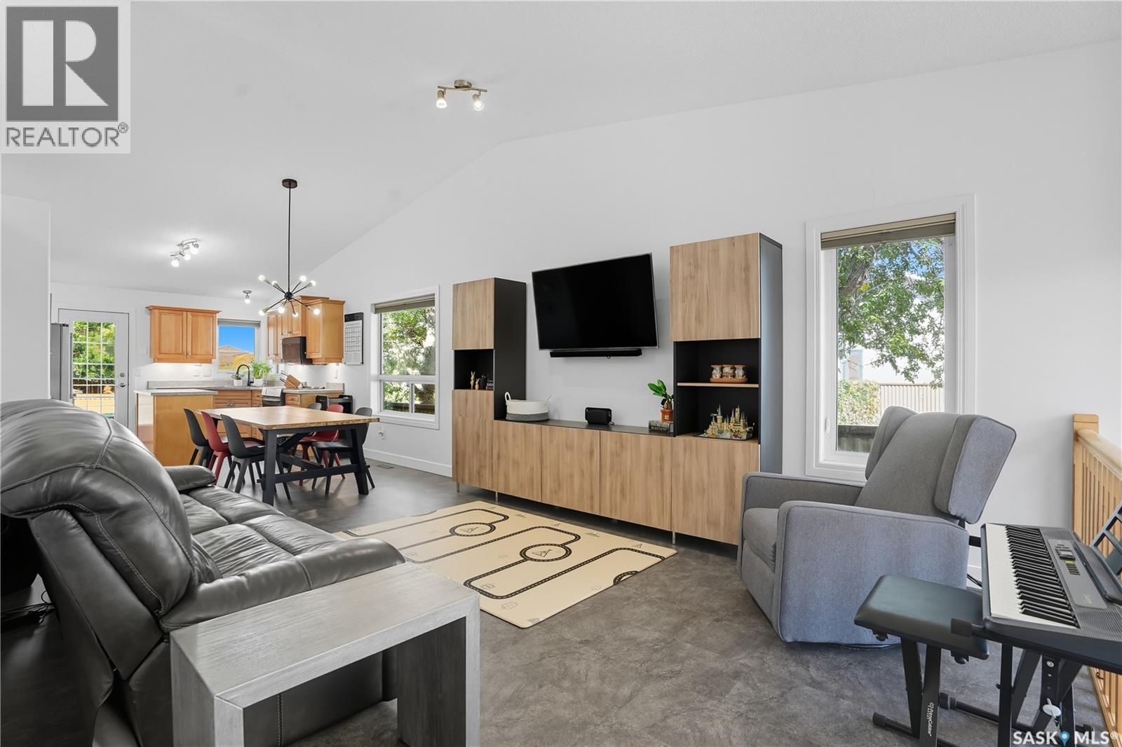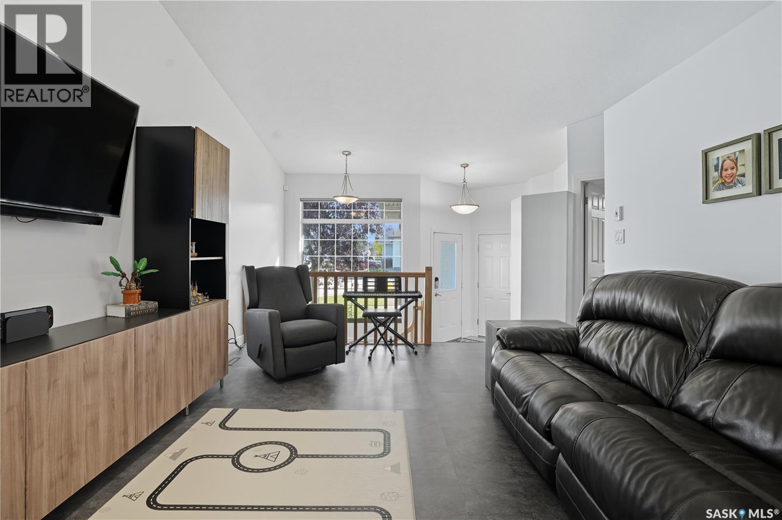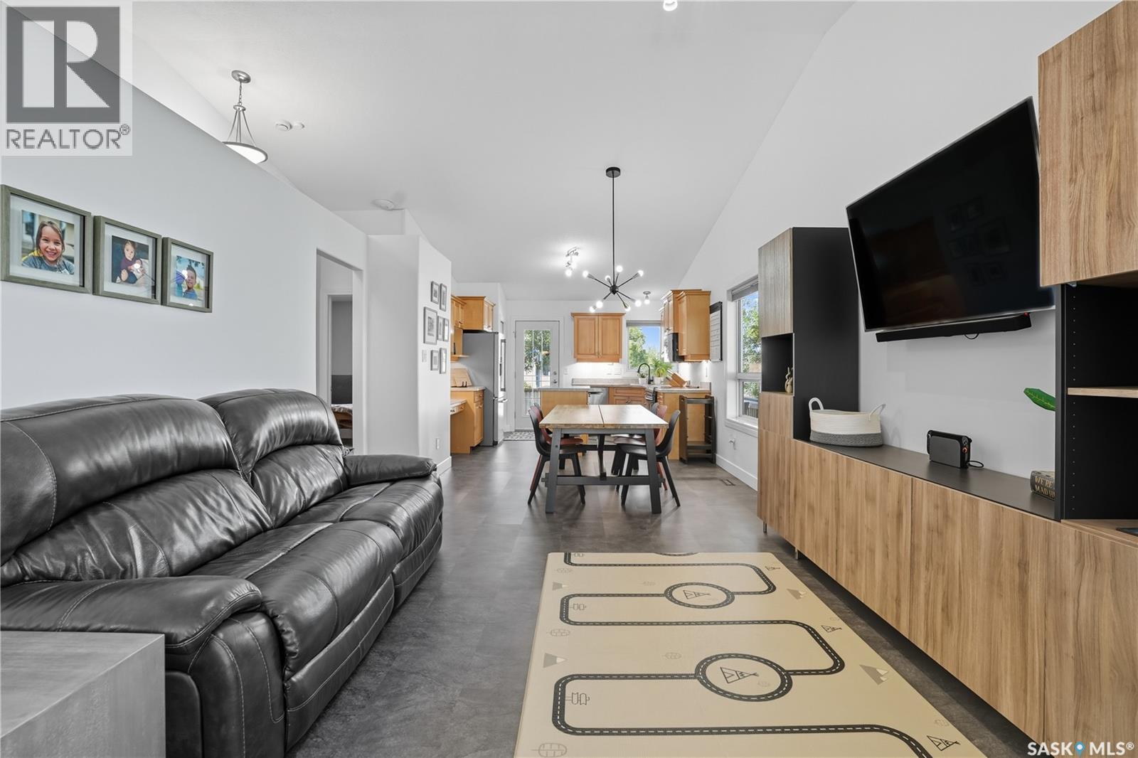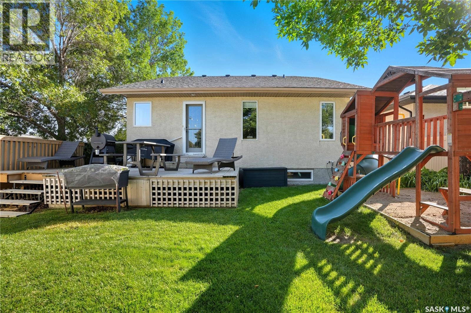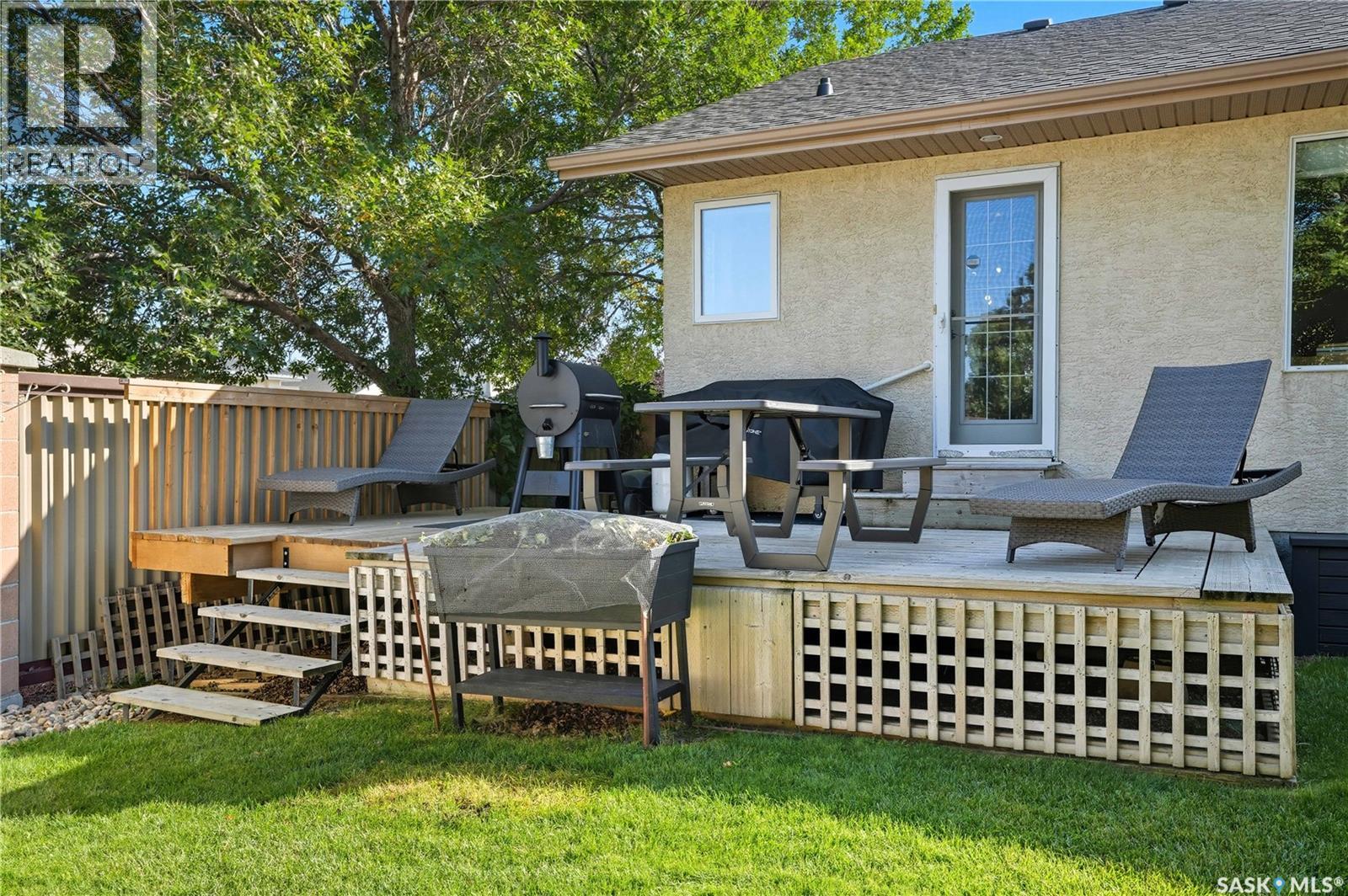 Welcome to this spacious and beautifully designed bungalow in Regina’s desirable Creekside neighborhood. Vaulted ceilings enhance the open-concept living, dining and kitchen areas, creating a bright and inviting atmosphere. Large PVC windows fill the main floor with natural light, highlighting the kitchen's elegant cabinetry, under-cabinet lighting, corner sink, island with pot drawers, built-in desk, and included appliances. Three well-sized bedrooms provide excellent closet space, including a primary suite with walk-in closet and private 3-piece ensuite. The full basement is open for development, giving you the flexibility to create the space you need. A garden door leads to the fenced and landscaped backyard with a large deck—perfect for entertaining or relaxing. A welcoming front deck adds charm, while the double concrete driveway leads to an attached double garage that is insulated, heated, cooled, and equipped with a 100 AMP secondary service. Notable upgrades include: 2021: HRV, vinyl fence 2022: Main floor renovations with new flooring, paint, stove, microwave, shingles 2023: Garage unit heater, AC heat pump, 100 AMP secondary service 2024: Water heater, laundry machine 2025: Underground sprinkler controller. Additional features include central air conditioning, central vac, and underground sprinklers. Just steps from Pilot Butte Creek pathway and Parkridge Park—with trails, benches, play structures, and a spray park—this home combines modern upgrades, family-friendly design, and an excellent location. (id:44393)