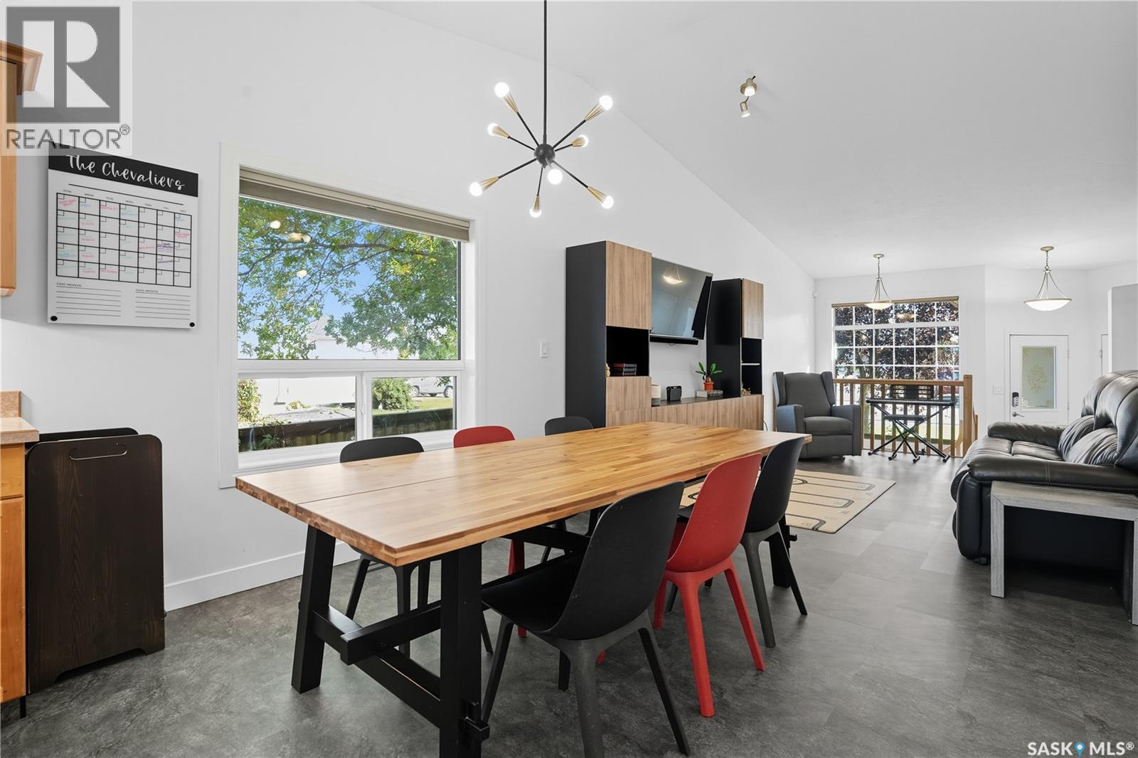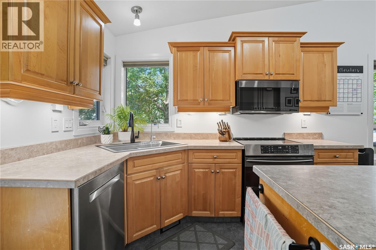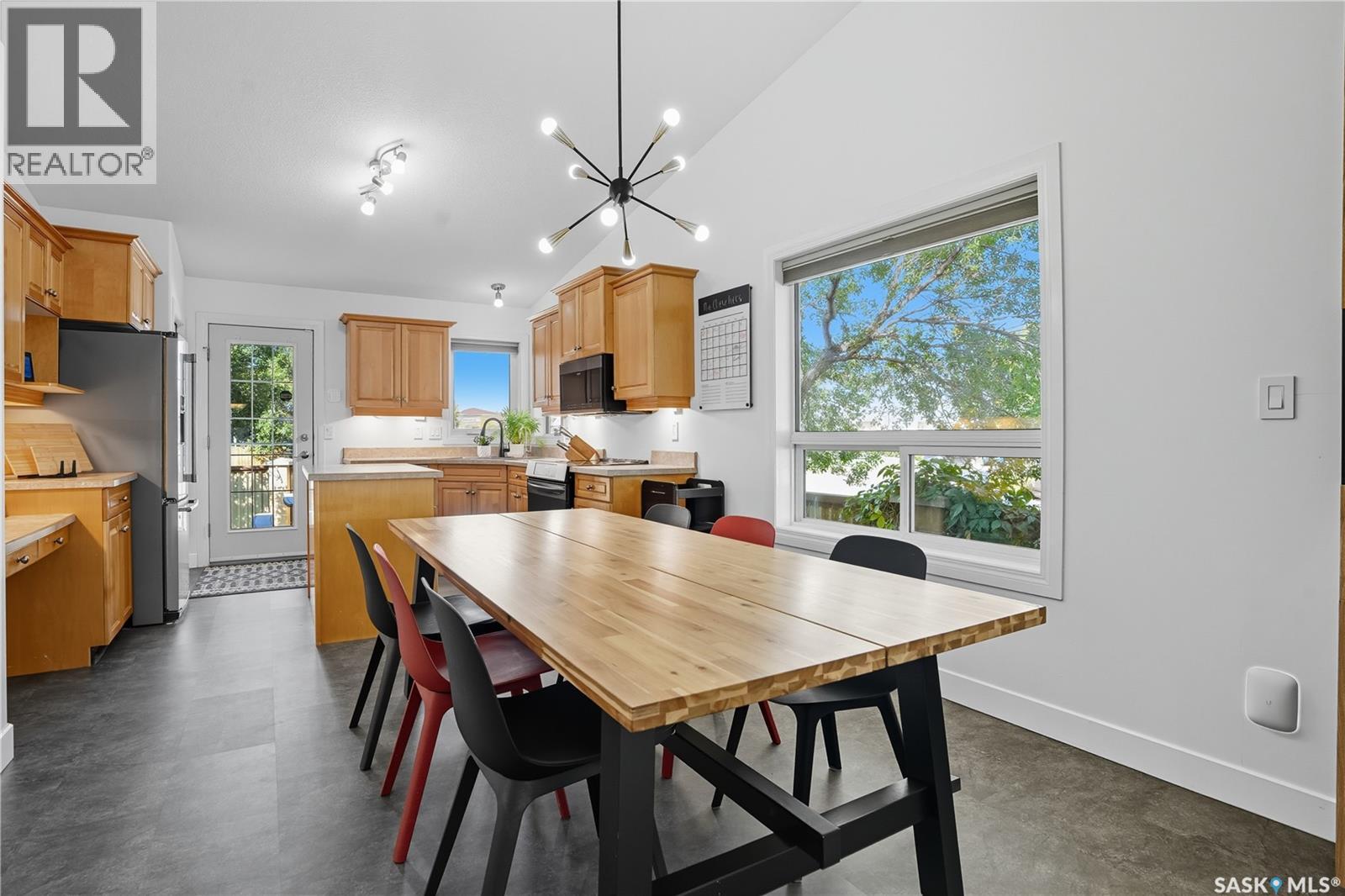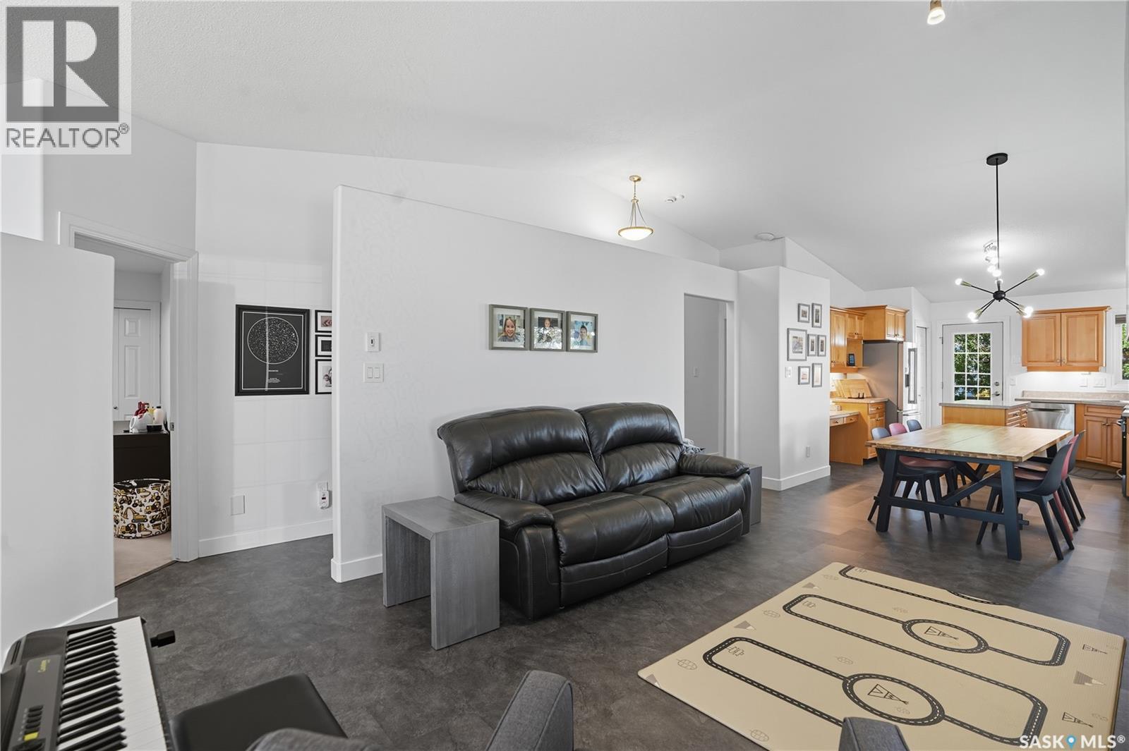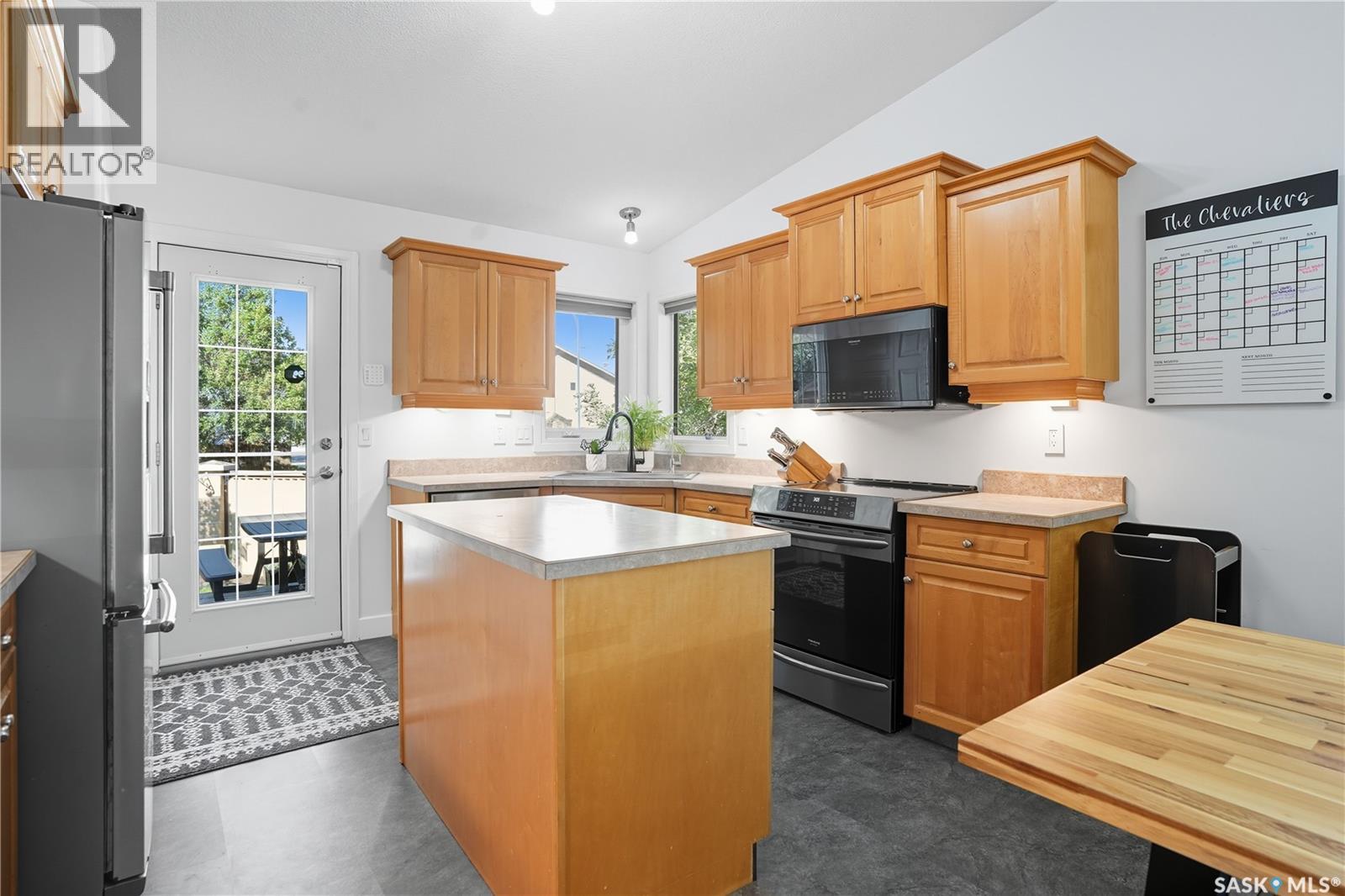 Welcome to this spacious and beautifully designed bungalow in Regina’s desirable Creekside neighborhood. Vaulted ceilings enhance the open-concept living, dining and kitchen areas, creating a bright and inviting atmosphere. Large PVC windows fill the main floor with natural light, highlighting the kitchen's elegant cabinetry, under-cabinet lighting, corner sink, island with pot drawers, built-in desk, and included appliances. Three well-sized bedrooms provide excellent closet space, including a primary suite with walk-in closet and private 3-piece ensuite. The full basement is open for development, giving you the flexibility to create the space you need. A garden door leads to the fenced and landscaped backyard with a large deck—perfect for entertaining or relaxing. A welcoming front deck adds charm, while the double concrete driveway leads to an attached double garage that is insulated, heated, cooled, and equipped with a 100 AMP secondary service. Notable upgrades include: 2021: HRV, vinyl fence 2022: Main floor renovations with new flooring, paint, stove, microwave, shingles 2023: Garage unit heater, AC heat pump, 100 AMP secondary service 2024: Water heater, laundry machine 2025: Underground sprinkler controller. Additional features include central air conditioning, central vac, and underground sprinklers. Just steps from Pilot Butte Creek pathway and Parkridge Park—with trails, benches, play structures, and a spray park—this home combines modern upgrades, family-friendly design, and an excellent location. (id:44393)