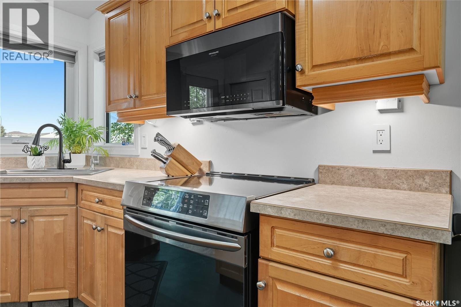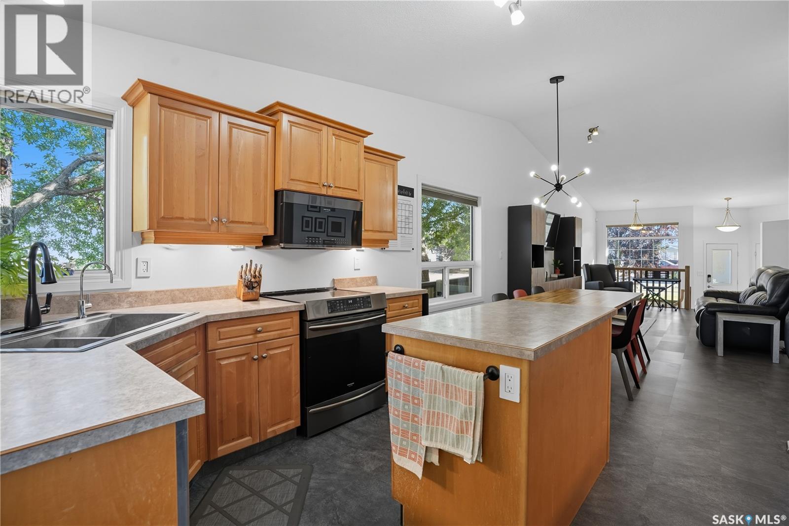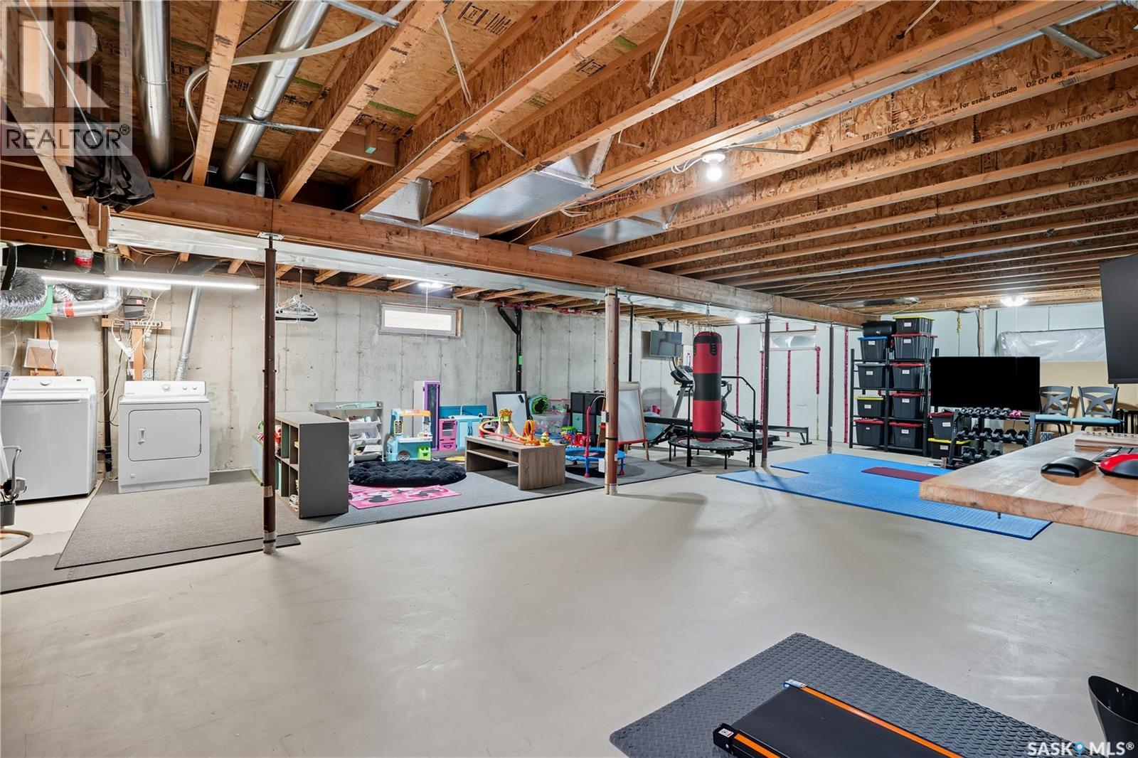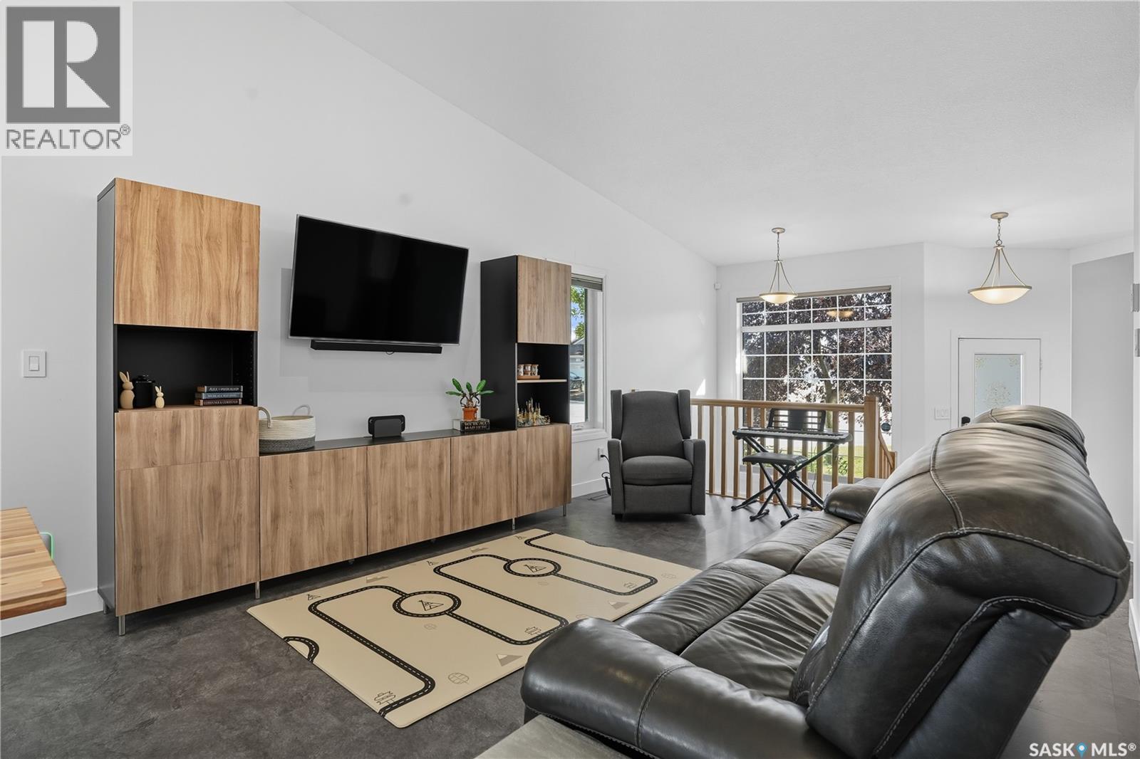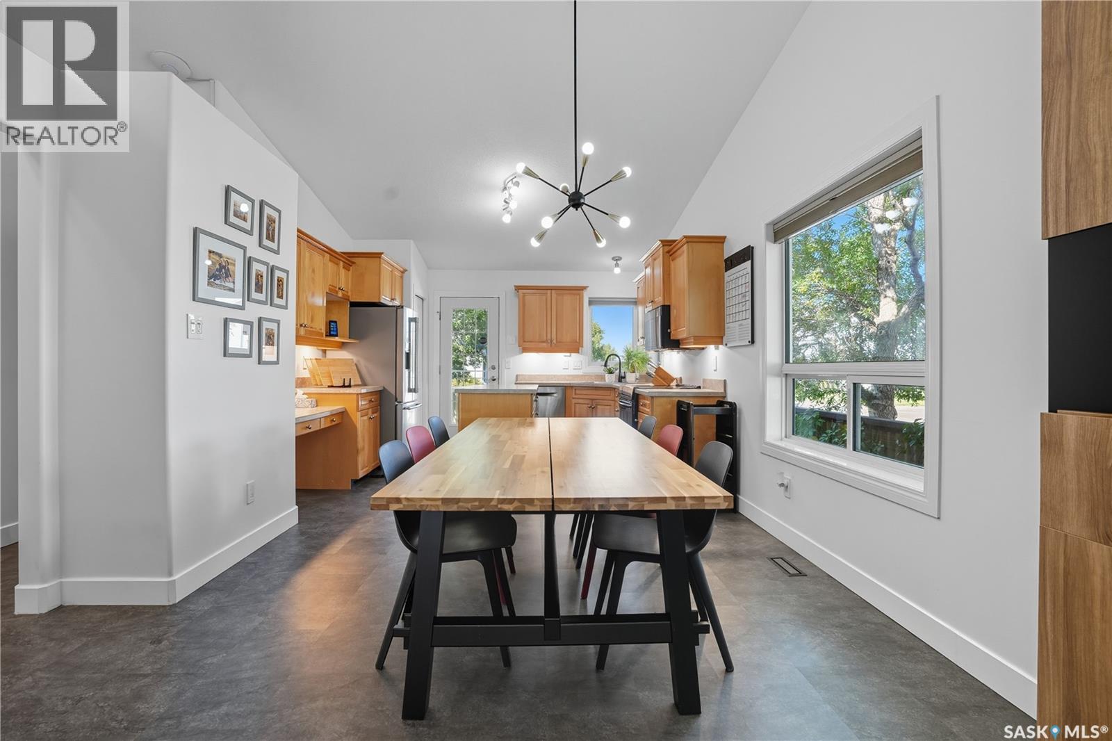 Welcome to this spacious and beautifully designed bungalow in Regina’s desirable Creekside neighborhood. Vaulted ceilings enhance the open-concept living, dining and kitchen areas, creating a bright and inviting atmosphere. Large PVC windows fill the main floor with natural light, highlighting the kitchen's elegant cabinetry, under-cabinet lighting, corner sink, island with pot drawers, built-in desk, and included appliances. Three well-sized bedrooms provide excellent closet space, including a primary suite with walk-in closet and private 3-piece ensuite. The full basement is open for development, giving you the flexibility to create the space you need. A garden door leads to the fenced and landscaped backyard with a large deck—perfect for entertaining or relaxing. A welcoming front deck adds charm, while the double concrete driveway leads to an attached double garage that is insulated, heated, cooled, and equipped with a 100 AMP secondary service. Notable upgrades include: 2021: HRV, vinyl fence 2022: Main floor renovations with new flooring, paint, stove, microwave, shingles 2023: Garage unit heater, AC heat pump, 100 AMP secondary service 2024: Water heater, laundry machine 2025: Underground sprinkler controller. Additional features include central air conditioning, central vac, and underground sprinklers. Just steps from Pilot Butte Creek pathway and Parkridge Park—with trails, benches, play structures, and a spray park—this home combines modern upgrades, family-friendly design, and an excellent location. (id:44393)