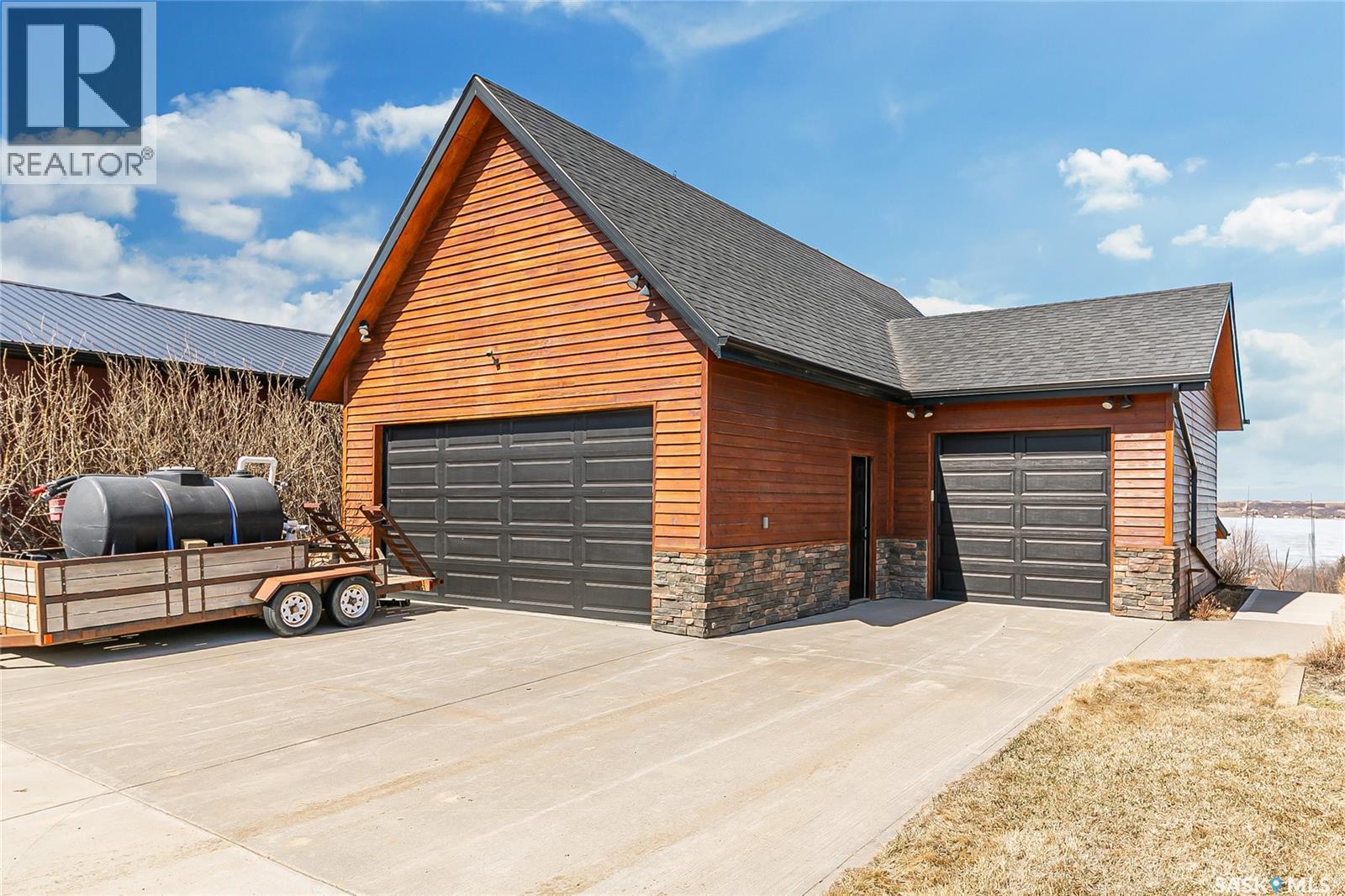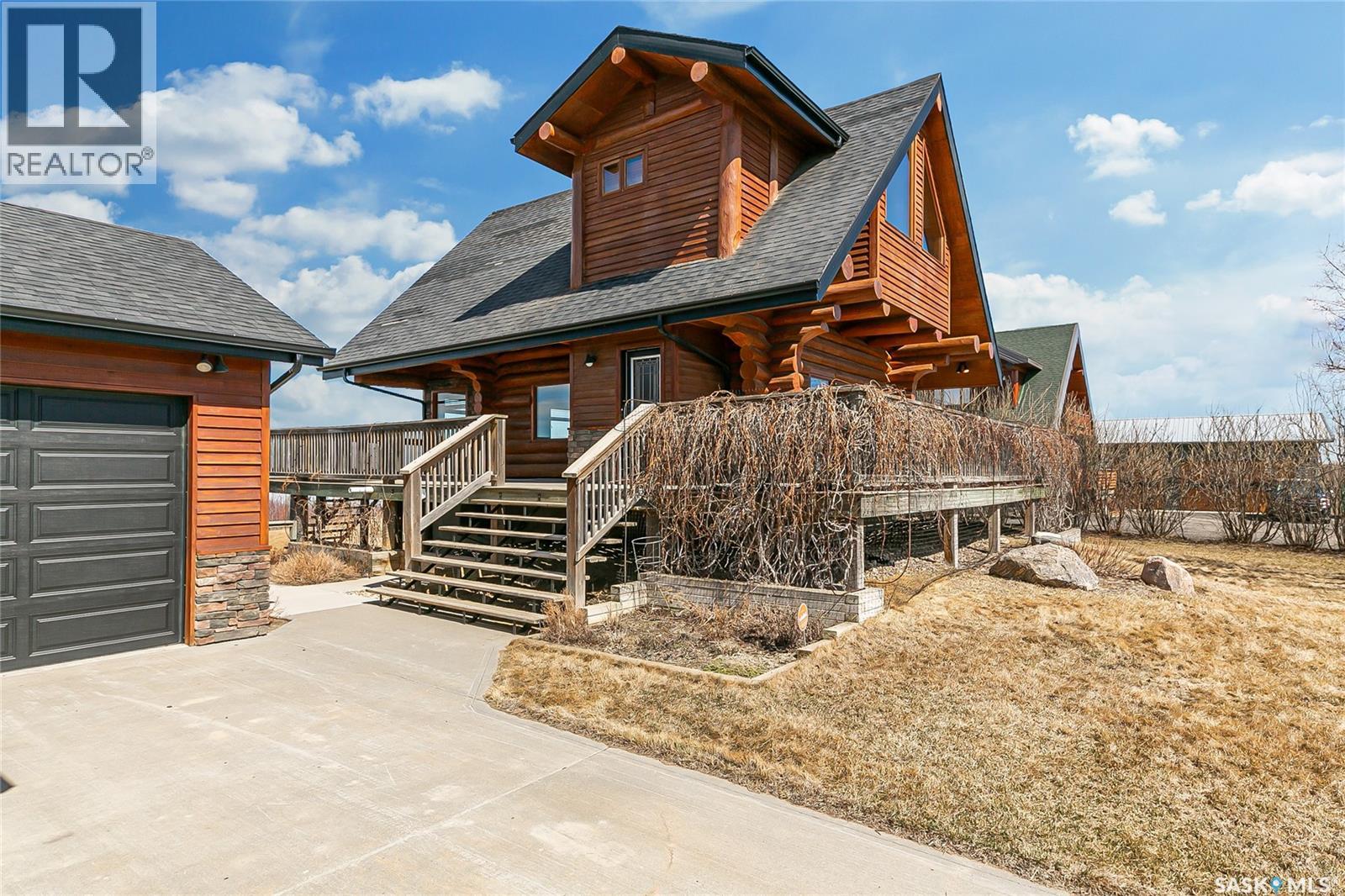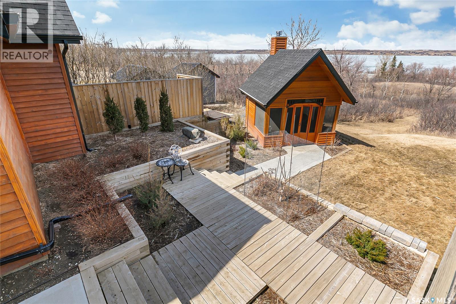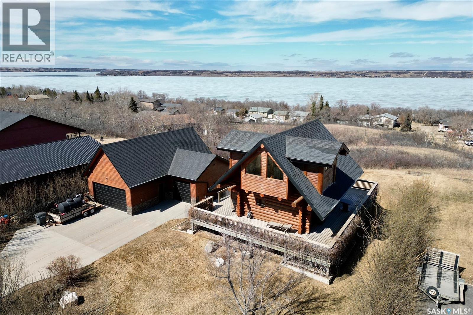 Welcome to your private retreat in Kinookimaw, next to Regina Beach and the Regina Beach Golf Club, just 30 minutes from Regina. Surrounded by nature, this beautifully landscaped double lot features retaining walls, mature greenery, and a 3.41-acre green space in front, preserving views of Last Mountain Lake. The home showcases quality craftsmanship, including 3-inch hardwood flooring across most of the main floor, triple-pane windows, and double-pane doors with built-in blinds. The inviting living space centres around a natural gas stone fireplace. The kitchen offers granite countertops, rich dark oak cabinetry, and timeless finishes, complemented by cast iron floor registers and return air. Outdoor living shines with a 360-degree wraparound deck, concrete patio, and a stunning gazebo with a concrete floor and wood-burning fireplace with a Class A chimney. The walkout basement adds a bedroom, large family room, 4-piece bathroom, and utility room with storage. Upstairs, the spacious primary bedroom fits a king bed and includes a 3-piece ensuite. Additional highlights include spray foam-insulated basement walls, a spray foamed ceiling roof for enhanced efficiency, a high-efficiency furnace with central air conditioning, and an owned natural gas water heater. The detached, fully heated 2' x 6' constructed garage offers 1,040 sq ft with 10-foot ceilings, accommodating up to five vehicles. The annual lease of $2,488 includes water. Sold fully furnished (excluding a few items). A rare opportunity for space, privacy, and lifestyle just minutes from Regina Beach. (id:44393)