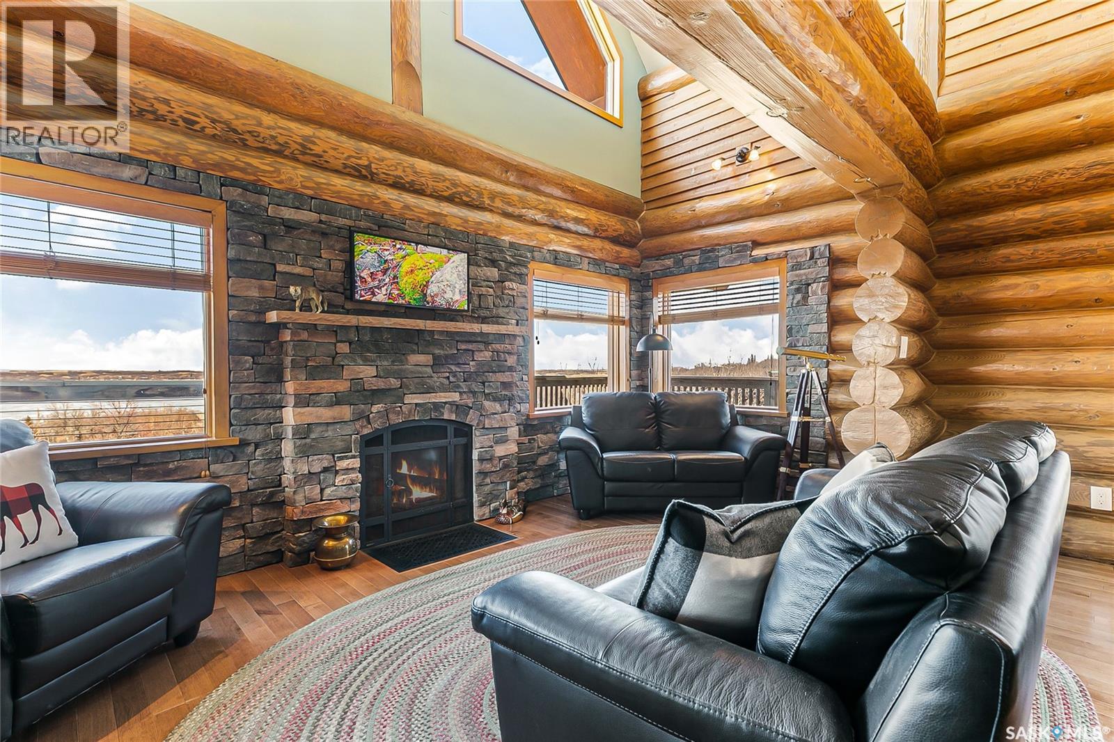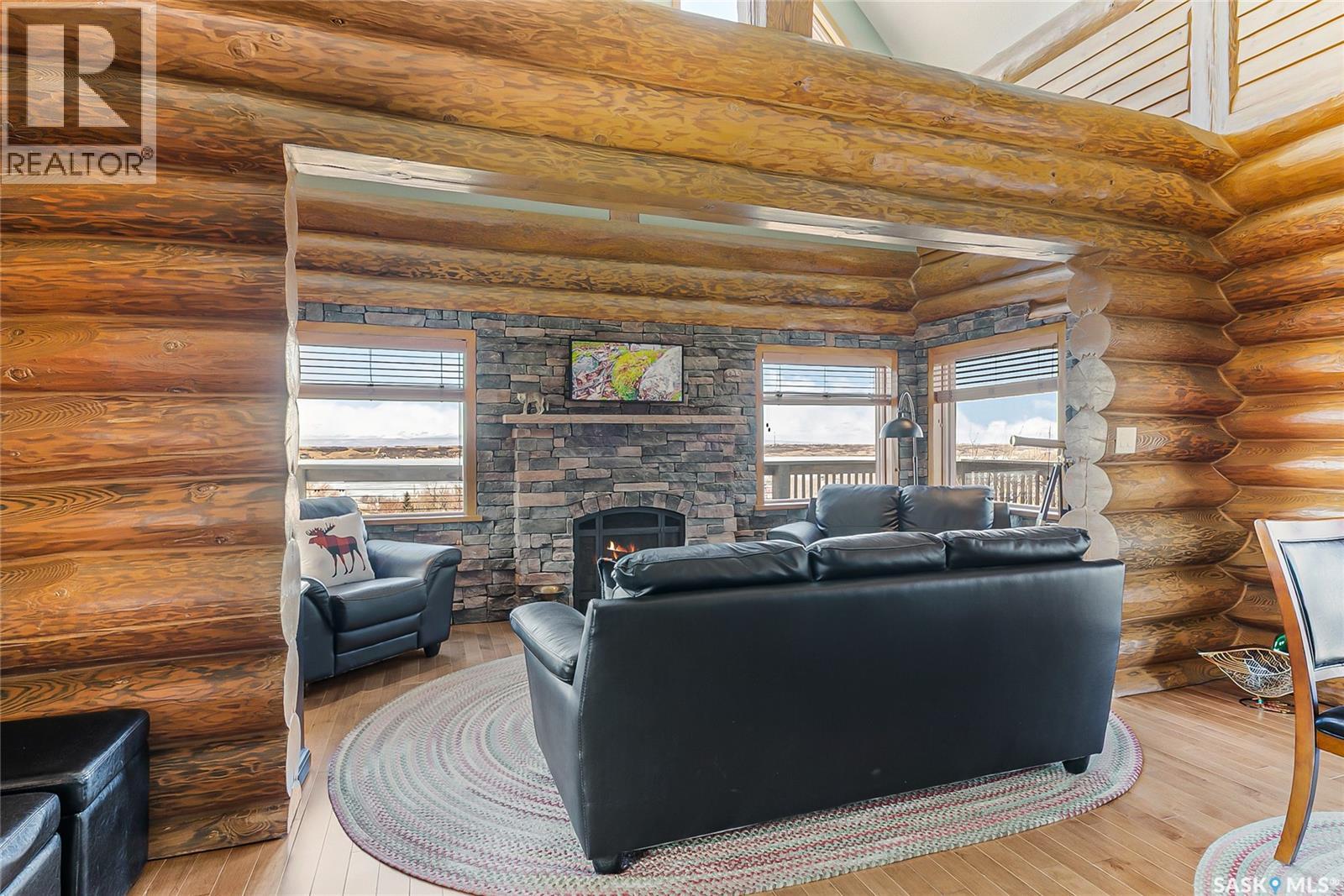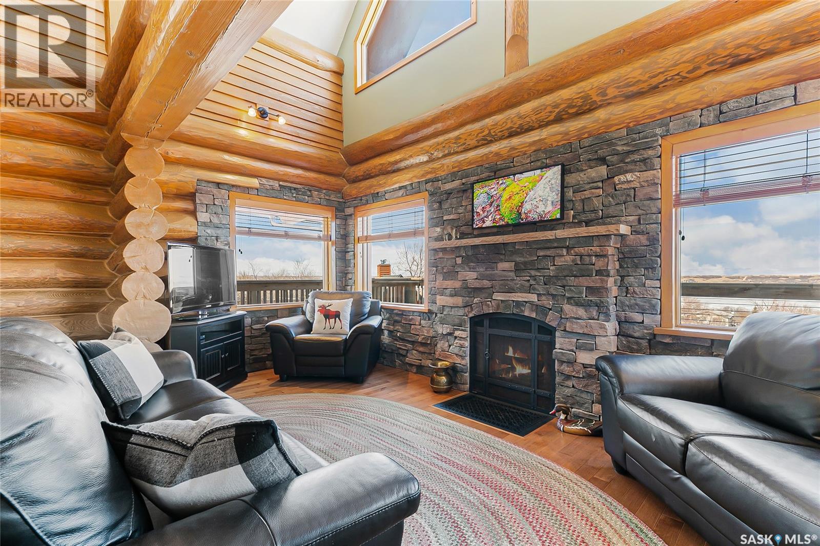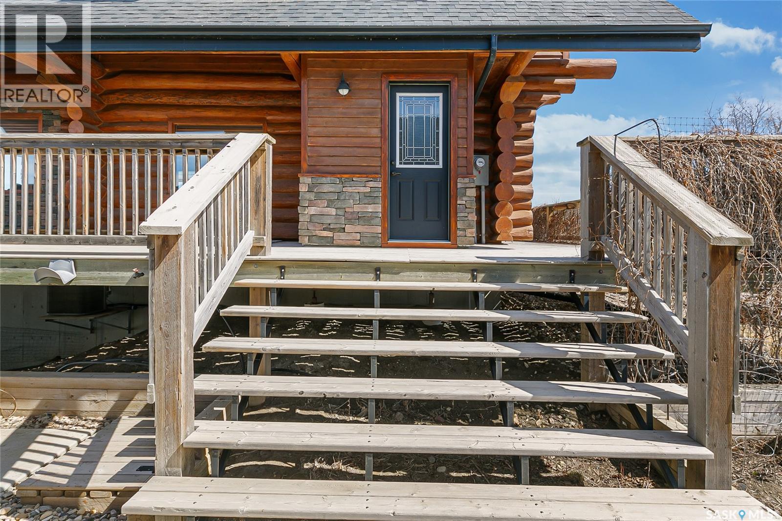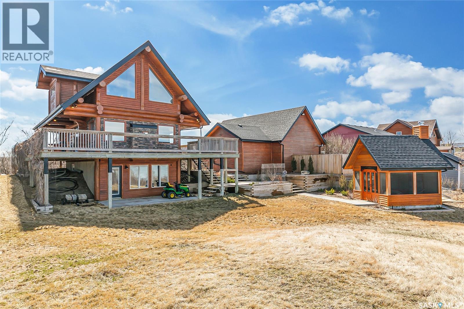 Welcome to your private retreat in Kinookimaw, next to Regina Beach and the Regina Beach Golf Club, just 30 minutes from Regina. Surrounded by nature, this beautifully landscaped double lot features retaining walls, mature greenery, and a 3.41-acre green space in front, preserving views of Last Mountain Lake. The home showcases quality craftsmanship, including 3-inch hardwood flooring across most of the main floor, triple-pane windows, and double-pane doors with built-in blinds. The inviting living space centres around a natural gas stone fireplace. The kitchen offers granite countertops, rich dark oak cabinetry, and timeless finishes, complemented by cast iron floor registers and return air. Outdoor living shines with a 360-degree wraparound deck, concrete patio, and a stunning gazebo with a concrete floor and wood-burning fireplace with a Class A chimney. The walkout basement adds a bedroom, large family room, 4-piece bathroom, and utility room with storage. Upstairs, the spacious primary bedroom fits a king bed and includes a 3-piece ensuite. Additional highlights include spray foam-insulated basement walls, a spray foamed ceiling roof for enhanced efficiency, a high-efficiency furnace with central air conditioning, and an owned natural gas water heater. The detached, fully heated 2' x 6' constructed garage offers 1,040 sq ft with 10-foot ceilings, accommodating up to five vehicles. The annual lease of $2,488 includes water. Sold fully furnished (excluding a few items). A rare opportunity for space, privacy, and lifestyle just minutes from Regina Beach. (id:44393)