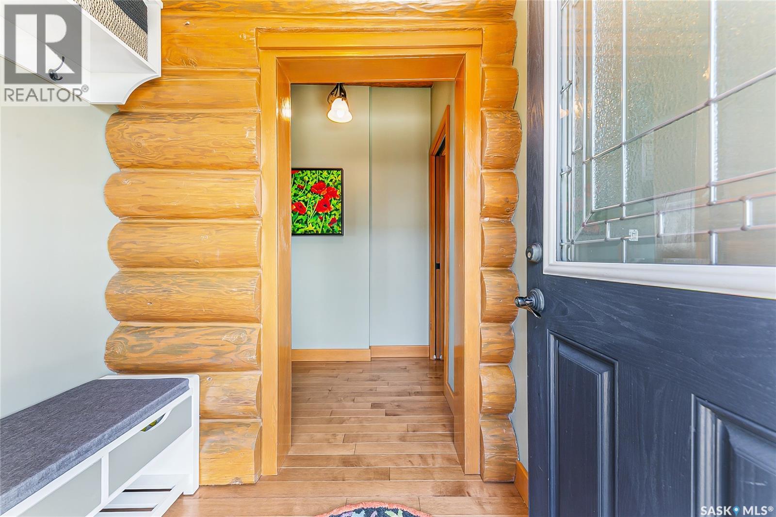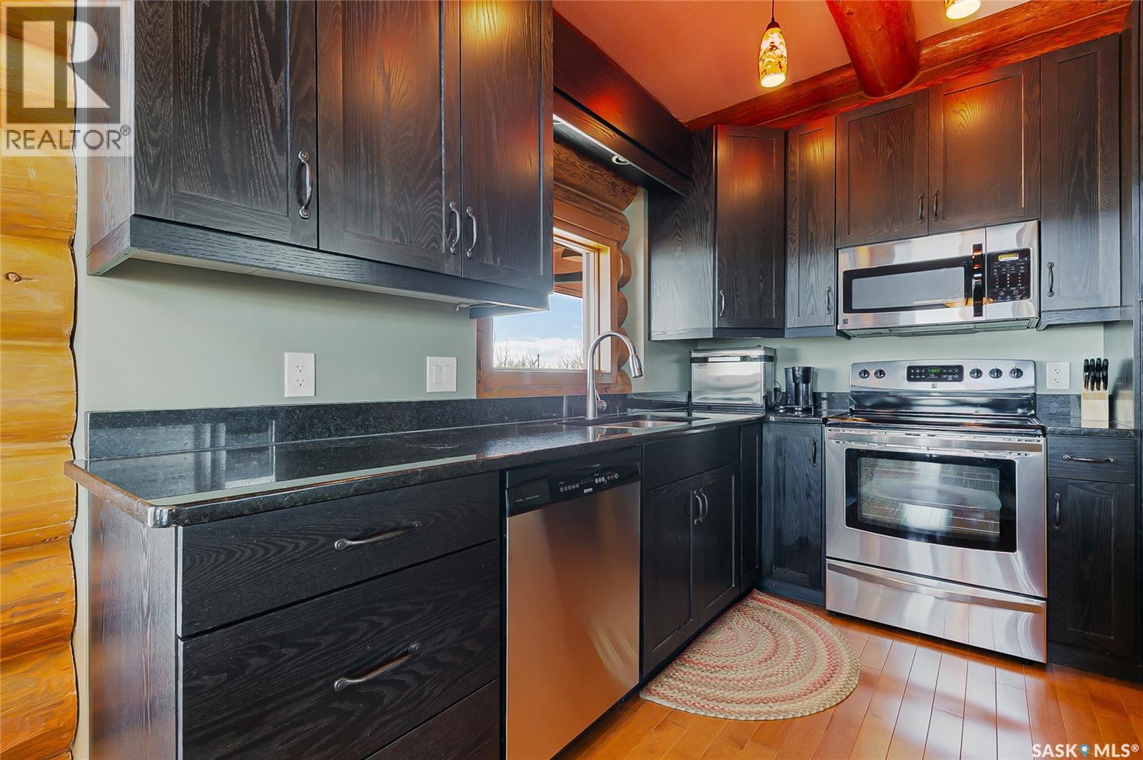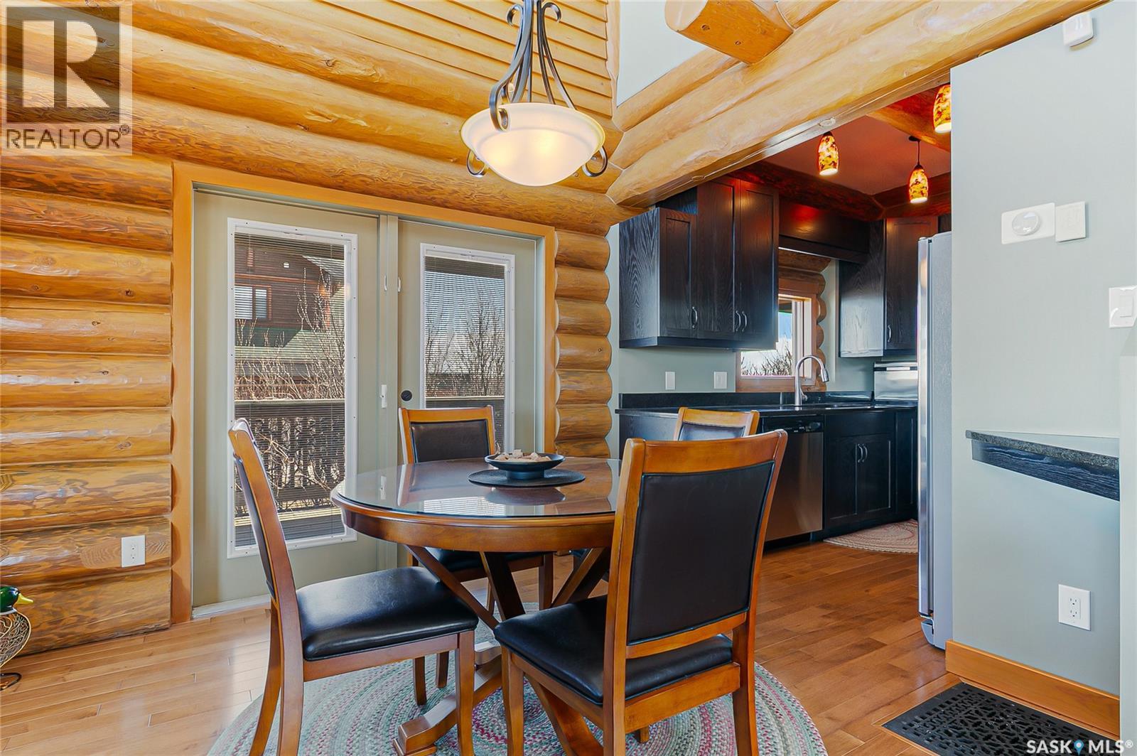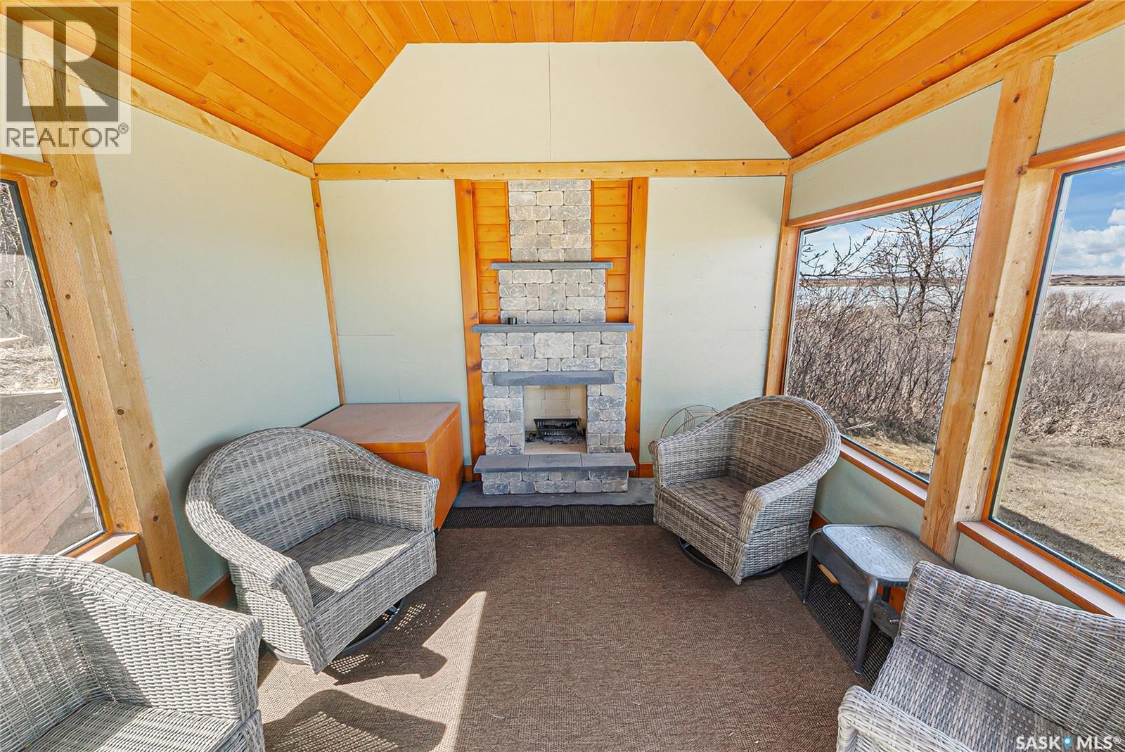 Welcome to your private retreat in Kinookimaw, next to Regina Beach and the Regina Beach Golf Club, just 30 minutes from Regina. Surrounded by nature, this beautifully landscaped double lot features retaining walls, mature greenery, and a 3.41-acre green space in front, preserving views of Last Mountain Lake. The home showcases quality craftsmanship, including 3-inch hardwood flooring across most of the main floor, triple-pane windows, and double-pane doors with built-in blinds. The inviting living space centres around a natural gas stone fireplace. The kitchen offers granite countertops, rich dark oak cabinetry, and timeless finishes, complemented by cast iron floor registers and return air. Outdoor living shines with a 360-degree wraparound deck, concrete patio, and a stunning gazebo with a concrete floor and wood-burning fireplace with a Class A chimney. The walkout basement adds a bedroom, large family room, 4-piece bathroom, and utility room with storage. Upstairs, the spacious primary bedroom fits a king bed and includes a 3-piece ensuite. Additional highlights include spray foam-insulated basement walls, a spray foamed ceiling roof for enhanced efficiency, a high-efficiency furnace with central air conditioning, and an owned natural gas water heater. The detached, fully heated 2' x 6' constructed garage offers 1,040 sq ft with 10-foot ceilings, accommodating up to five vehicles. The annual lease of $2,488 includes water. Sold fully furnished (excluding a few items). A rare opportunity for space, privacy, and lifestyle just minutes from Regina Beach. (id:44393)
