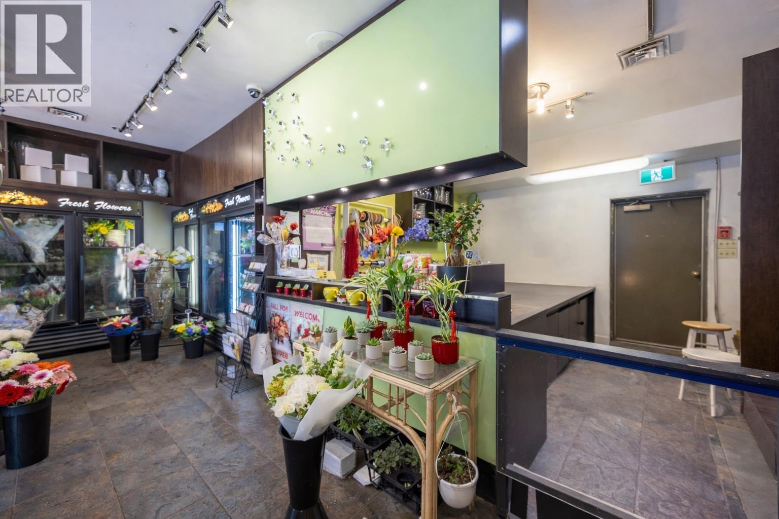 Turnkey florist business in a prime Downtown Vancouver location at Davie & Hornby. Successfully established and owner-operated for over 20 years, this well-known flower shop offers a solid foundation with a loyal customer base that includes nearby hotels, medical clinics, and law offices. Surrounded by high-density residential towers and steady pedestrian traffic, the business benefits from excellent visibility and consistent demand. Low gross rent includes hydro, water, property tax, and management fees. Fully equipped and ready for seamless takeover, this is a rare opportunity for an owner-operator or first-time business buyer to step into an established operation. Training available from the owner to support a smooth transition. Showings by appointment only; please do not disturb staff. Contact the listing agent for details. (id:44393)