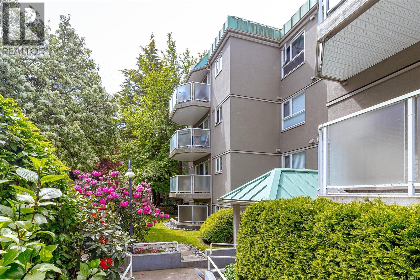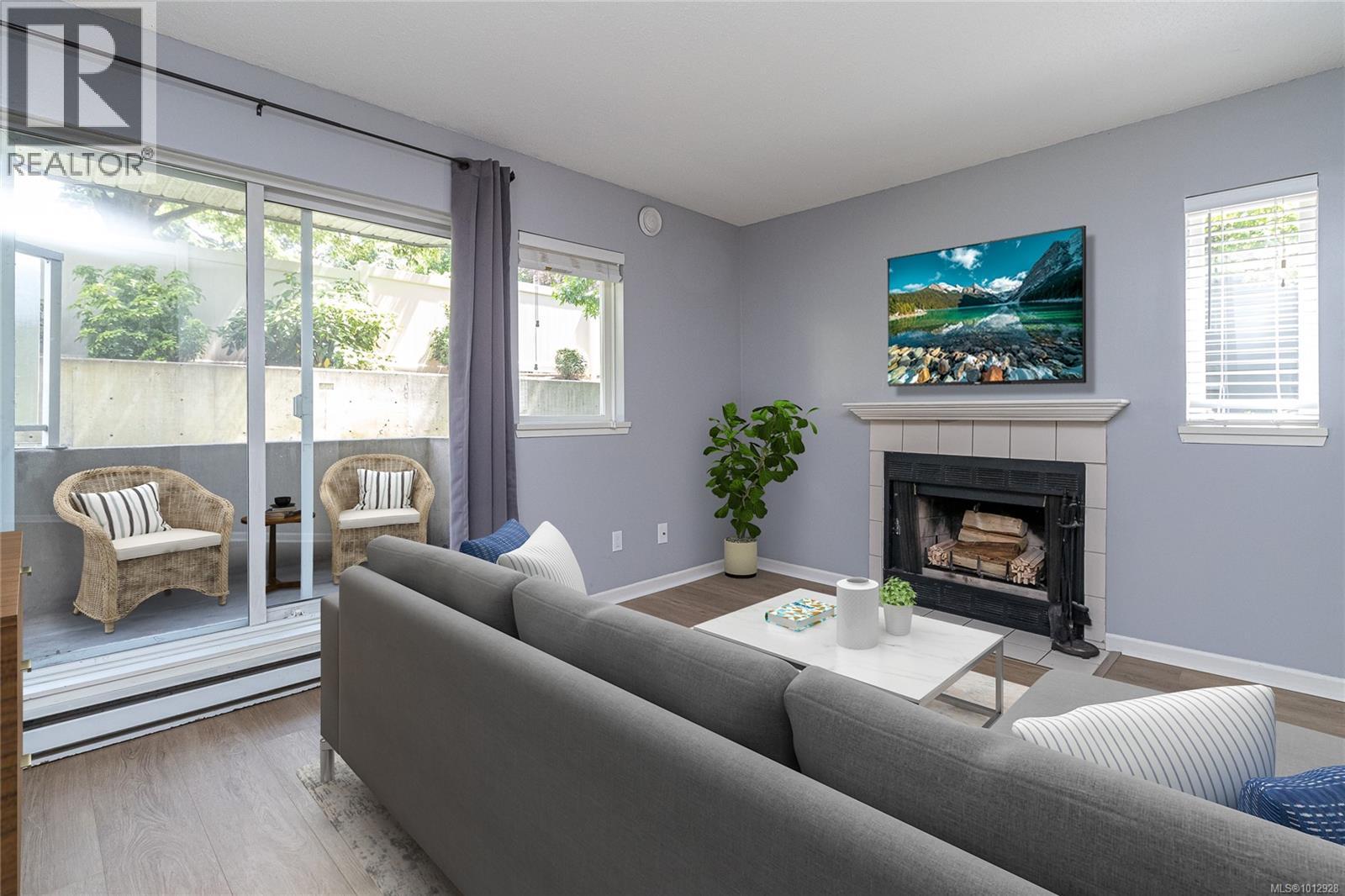 $616 Monthly2 dogs allowed, NO SIZE RESTRICTIONS! Come see this spacious 2-bedroom patio/garden home in the heart of Quadra St Village. You will be amazed at all the amenities right out your doorstep. Grab an award-winning coffee at Caffe Fantastico and wander the eclectic shops in the neighborhood. Plenty of restaurants, Fairway Market, and Health services in the area. The Crystal Pool is just a few blocks away, as well as Royal Athletic Park. Endless opportunities for leisure and excitement right out your door from this swanky pad, boasting an ensuite bathroom, wood-burning fireplace to cozy up to in the cool months, and a patio, perfect for your BBQ. Recent paint, flooring, and other updates make this a turn-key home. Pets are welcome here in this very well-run community. There is an EV charger onsite, bike storage, and a secure underground car park. Make this exceptional entry point in one of Victoria's most cherished neighbourhoods yours! (id:44393)