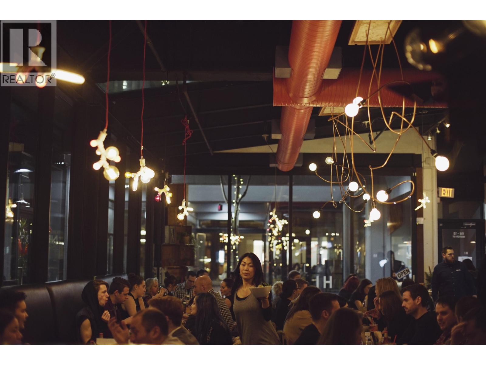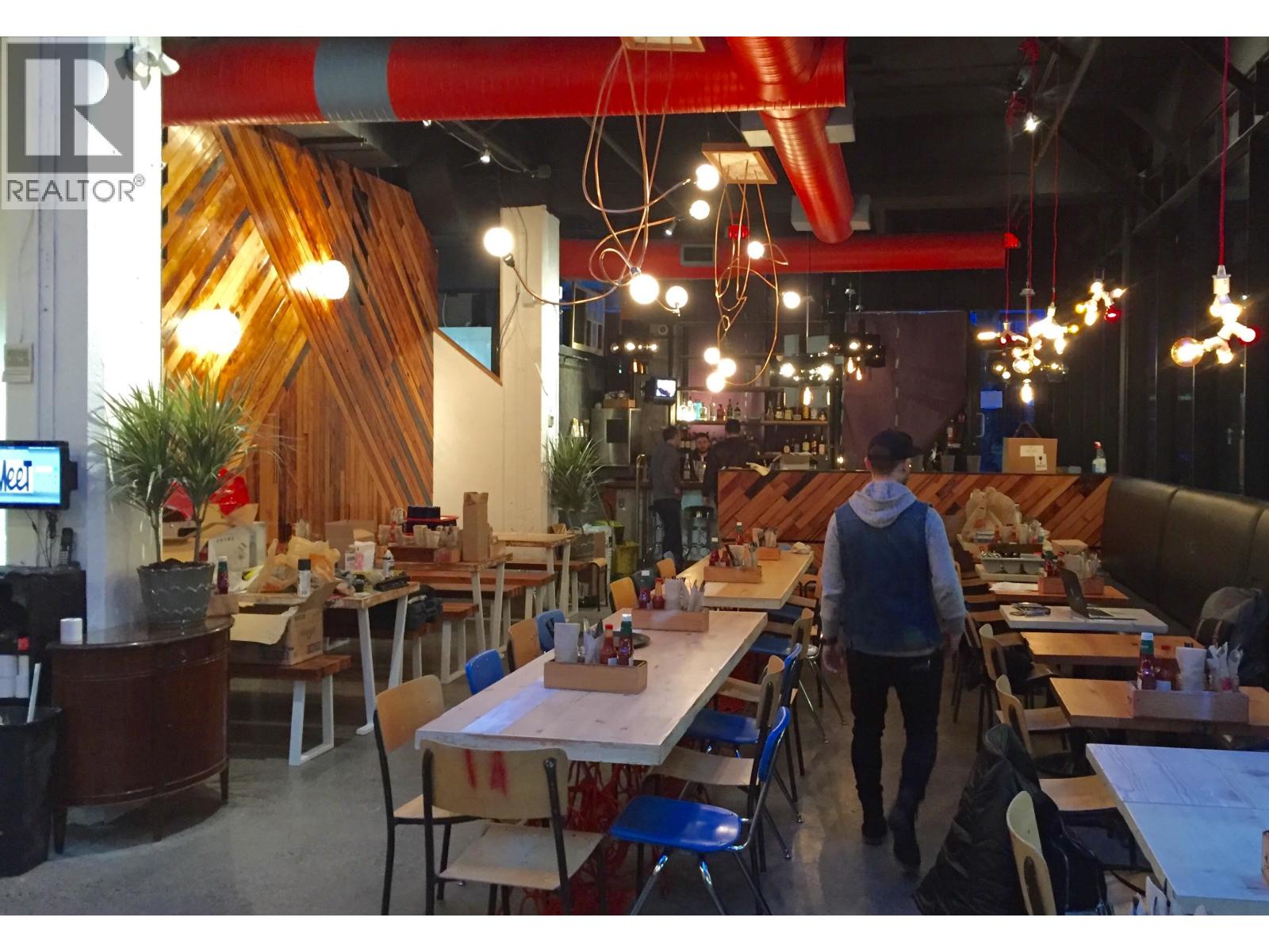 Restaurant Opportunity ' 12 Water Street, Vancouver Prime 2,360 sq. ft. restaurant in the heart of Gastown with soaring 16' ceilings, two patios, and full glass frontage for high visibility. Licensed for 97 seats plus patios and grandfathered hours until 1AM (2AM weekends). Equipped with a 12' commercial hood and walk-in cooler. No demolition clause.Rent includes water and waste ($1,500/month savings). One year remains on the term with a 5-year renewal option. Excellent exposure via multiple entrances, interior courtyard access, and proximity to the new 600-person live event venue and Blood Alley redevelopment. Please do not approach staff or owners. All inquiries through the listing agent. (id:44393)