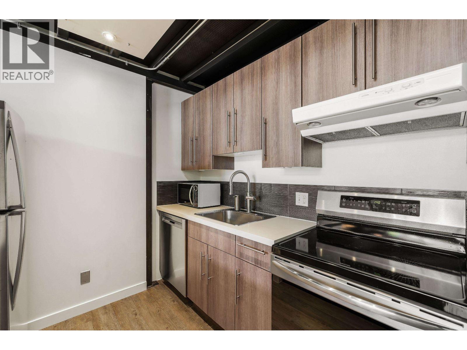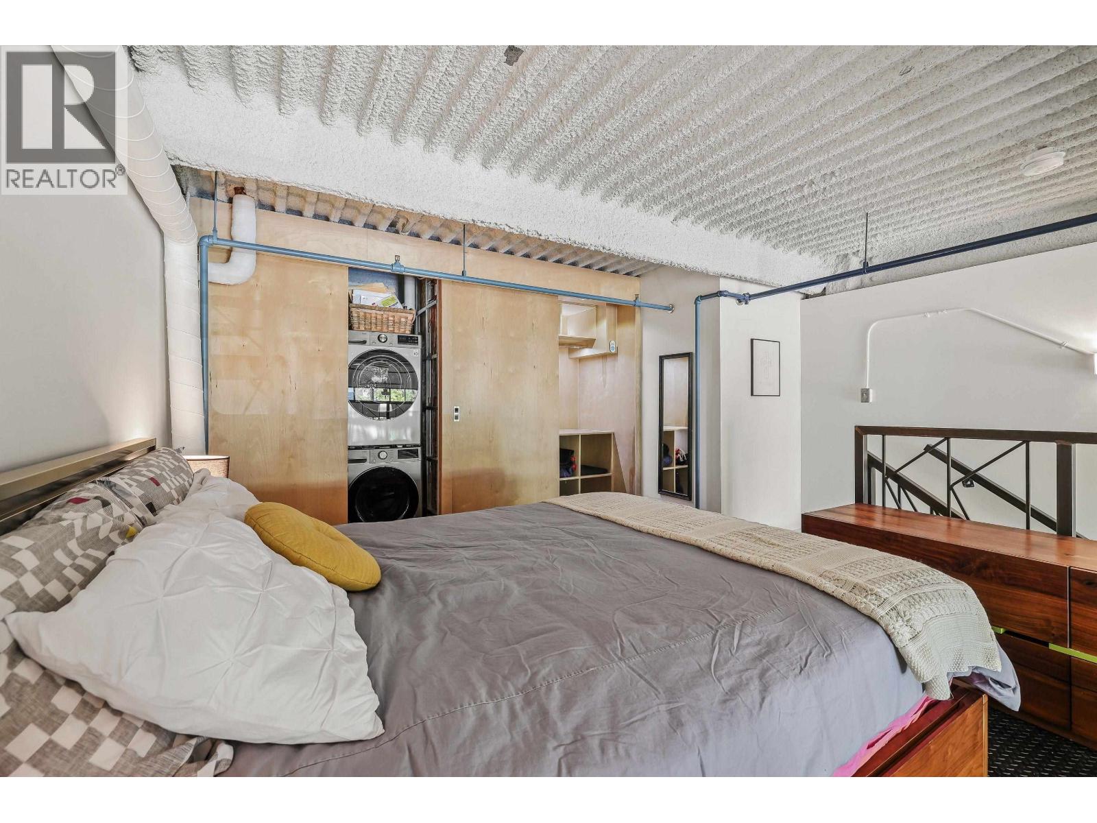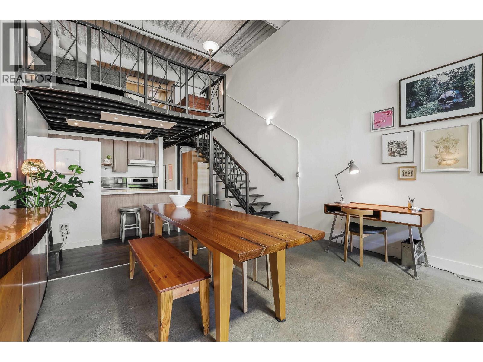 $378.55 MonthlyExperience authentic loft living at ARTWORKS, just steps from vibrant Main Street. This stunning live/work space features soaring 16-foot ceilings and an open, airy design. The tastefully renovated kitchen boasts a waterfall stone countertop, contemporary cabinetry, and new appliances, including a refrigerator and stove. Polished concrete in the main area complement the commercial-grade luxury vinyl plank in the entry, bathroom and kitchen. Upstairs, the loft level showcases industrial-style solid steel diamond flooring plate, all COMPLETED WITH PERMITS. Enjoy the rare bonus of a private balcony for plants or fresh air, plus access to a common gallery space for hosting events, secure bike storage, and a thriving artist community. All this in one of the city´s most dynamic neighbourhoods. (id:44393)