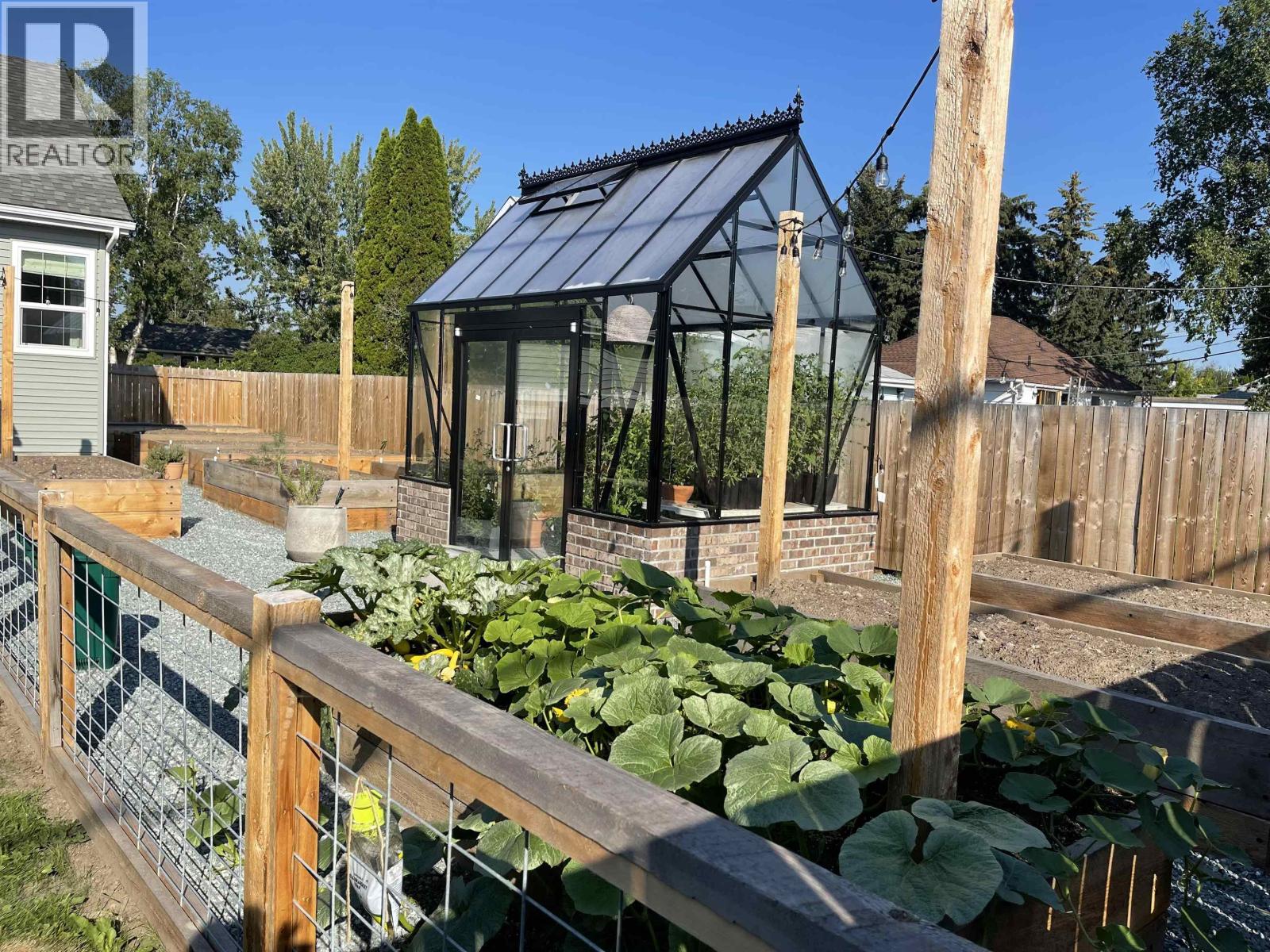 Meticulously renovated inside and out by Design Logic Interiors, this home blends timeless character with high-end modern finishes -- every update done with care to preserve the charm of an older home. Inside you'll find engineered hardwood throughout, custom cabinetry, and beautiful built-ins. The layout offers 3 bedrooms and 2 bathrooms, plus a flexible bonus: the walk-in closet can easily be converted back into a bedroom if you need the extra space. Outside is the showstopper: an incredible garden setup with an extra-large two-tier deck, 10 raised beds with self-watering sprinklers, and a large BC's Best Greenhouse with power and water-hello, homegrown tomatoes all summer. Just two blocks from the hospital and BC Cancer Centre, and centrally located for easy access across Prince George. (id:44393)