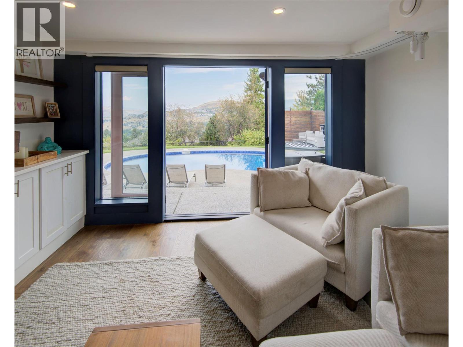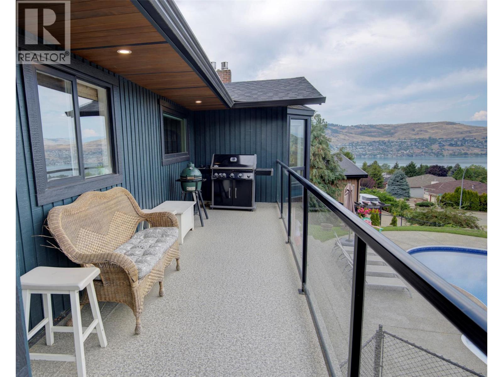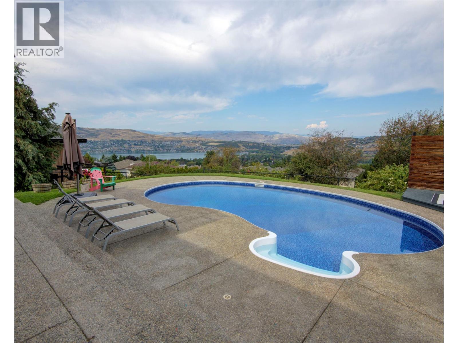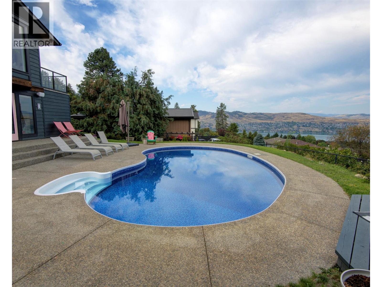 Welcome to a home that blends family living with outdoor adventure. Located just steps from the beautiful Kalamalka Lake hiking trails, this property offers stunning views of the lake and hillsides, all while providing the comfort of your own private pool. Families will also appreciate the convenient access to nearby schools. The main floor features three bedrooms, including a primary suite with a full ensuite, plus a luxurious main bathroom. Large windows frame breathtaking views from every room, and the open-concept layout makes daily living and entertaining seamless. A fantastic covered deck off the kitchen is perfect for summer barbecues, while the living room opens onto a spacious deck with a hot tub and easy backyard access. New gourmet kitchen with new hardwood flooring make this space truly beautiful. Downstairs, you will find two additional bedrooms (window egress to be confirmed) and a generous family room that flows directly to the pool area as well as a luxurious bathroom with walk in shower—ideal for children and gatherings. Privacy surrounds this home, even with neighboring properties nearby. With many thoughtful updates and a designer touch styling, this home is designed for both everyday comfort and endless enjoyment of the Okanagan lifestyle. (id:44393)