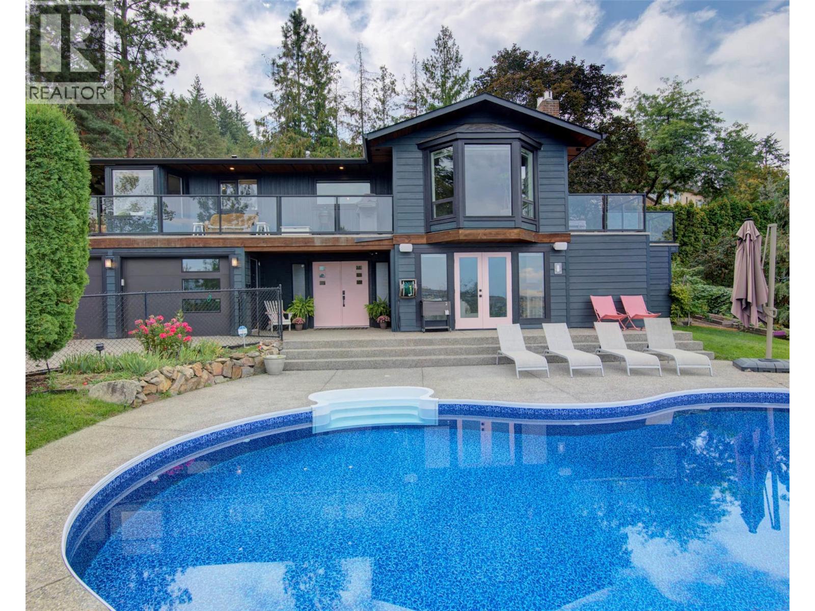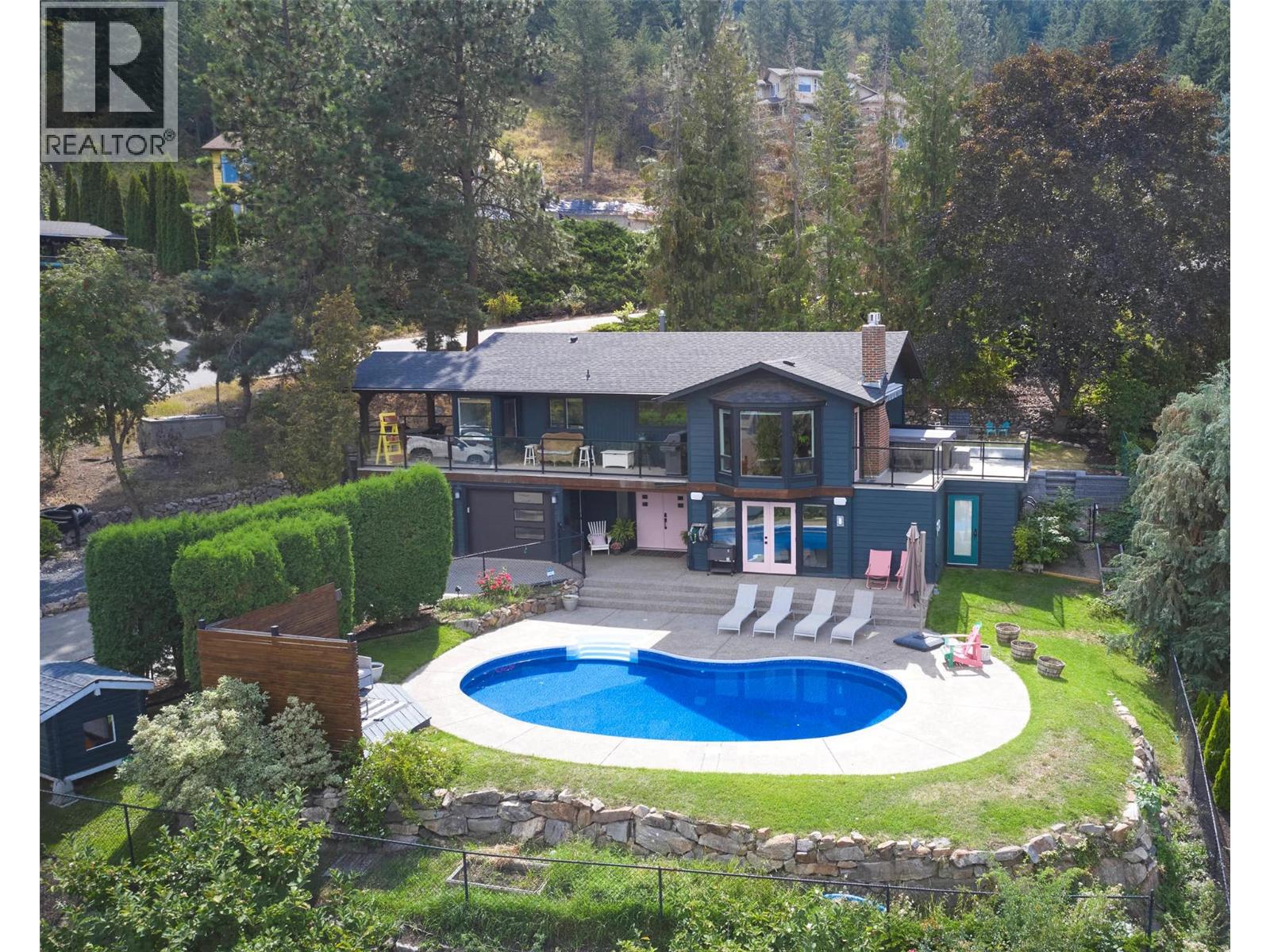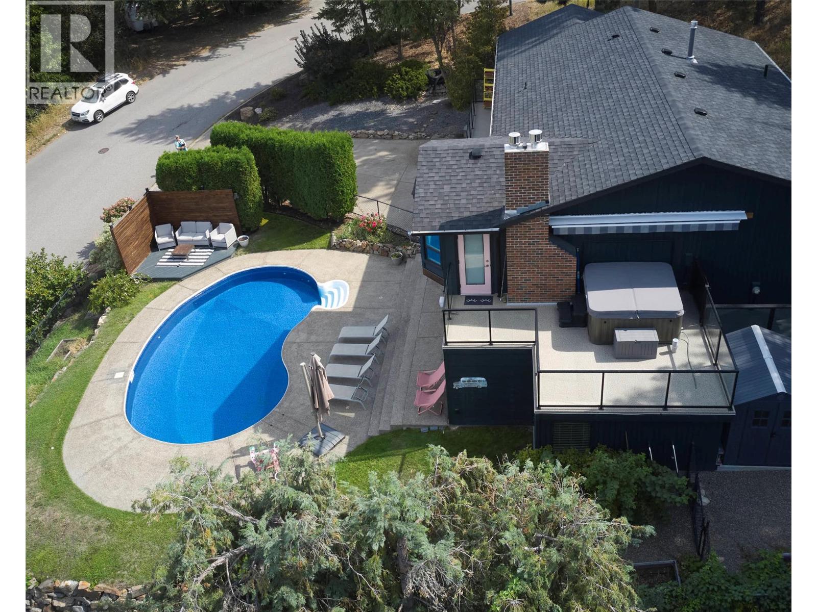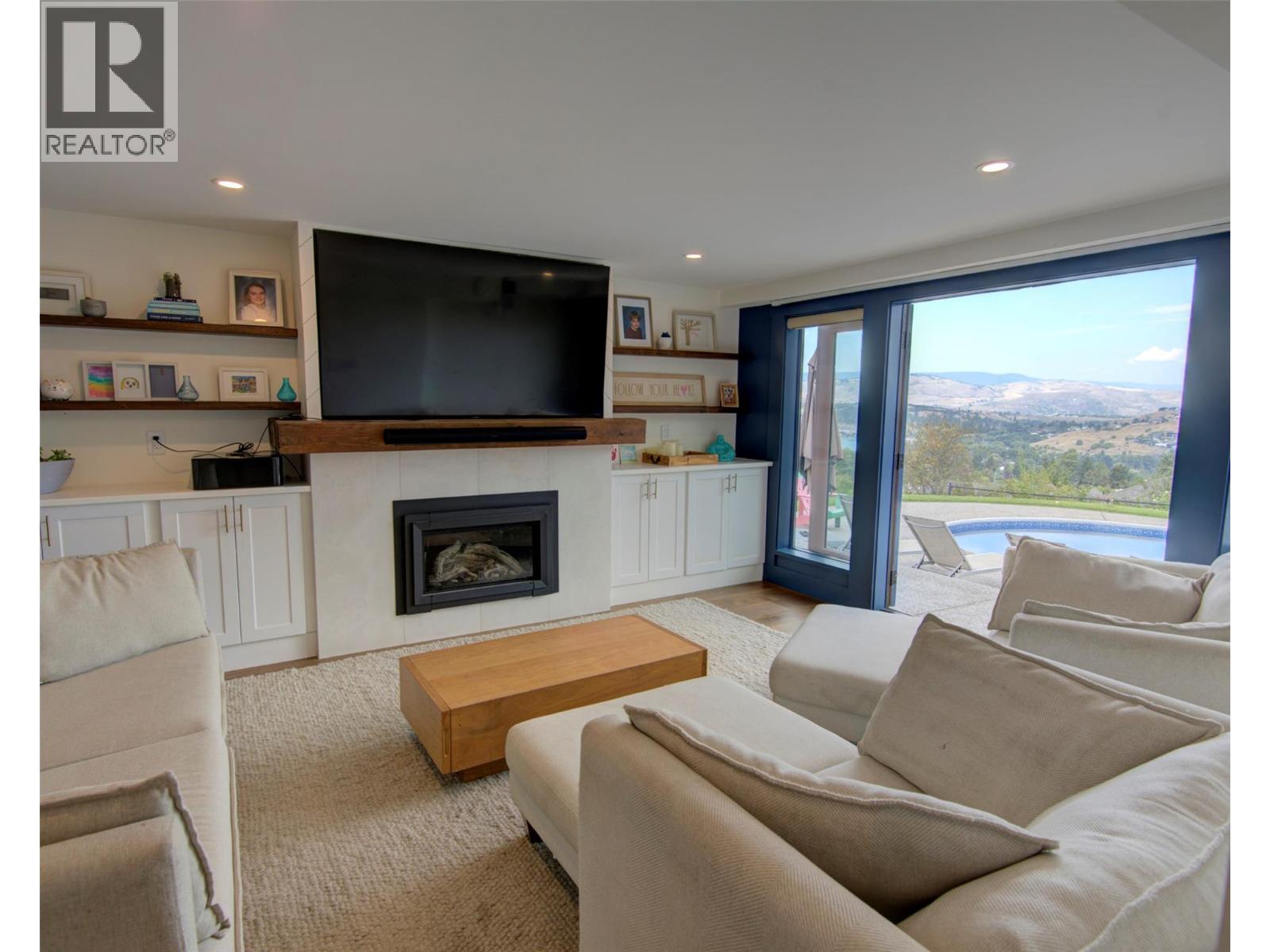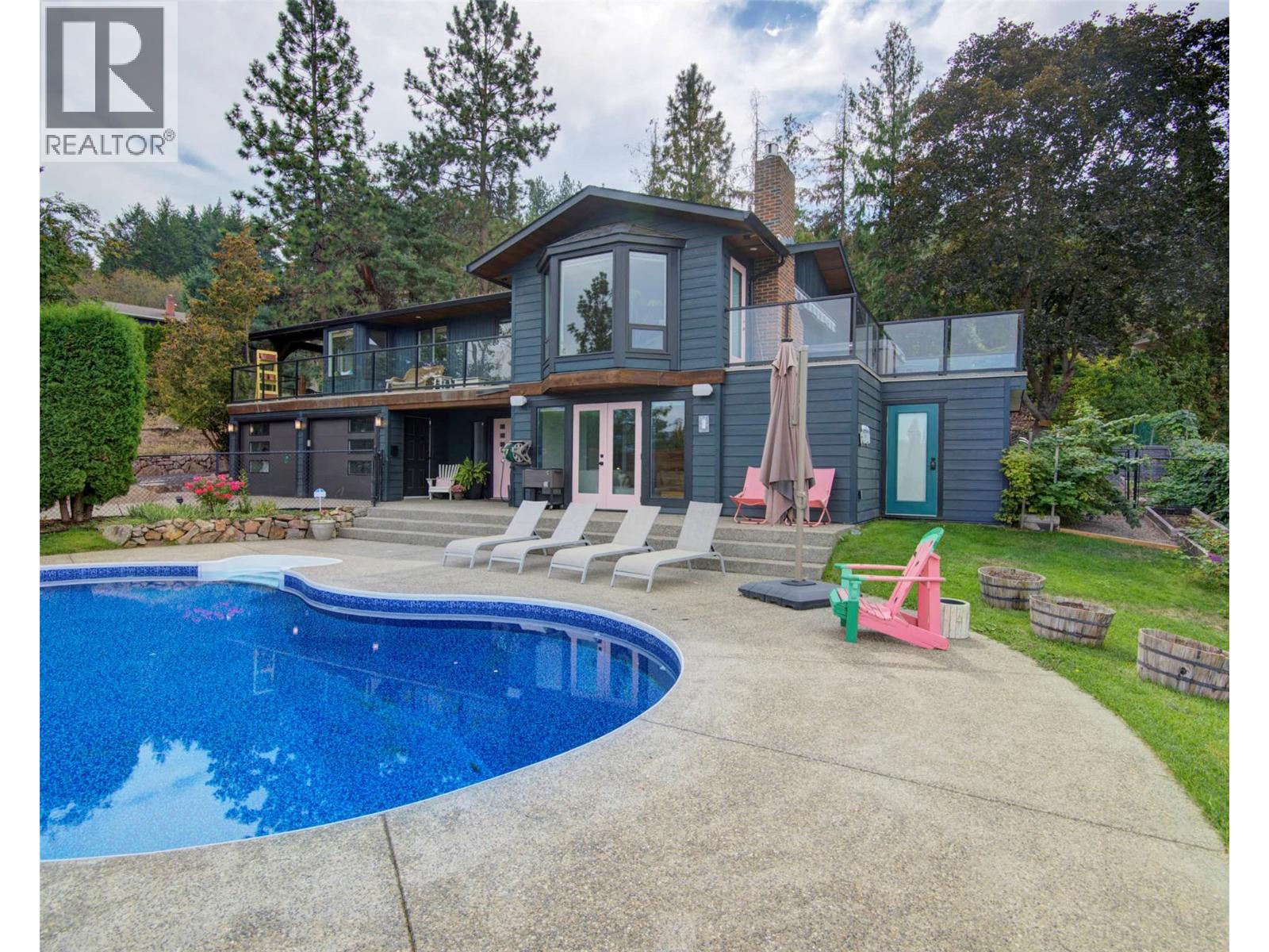 Welcome to a home that blends family living with outdoor adventure. Located just steps from the beautiful Kalamalka Lake hiking trails, this property offers stunning views of the lake and hillsides, all while providing the comfort of your own private pool. Families will also appreciate the convenient access to nearby schools. The main floor features three bedrooms, including a primary suite with a full ensuite, plus a luxurious main bathroom. Large windows frame breathtaking views from every room, and the open-concept layout makes daily living and entertaining seamless. A fantastic covered deck off the kitchen is perfect for summer barbecues, while the living room opens onto a spacious deck with a hot tub and easy backyard access. New gourmet kitchen with new hardwood flooring make this space truly beautiful. Downstairs, you will find two additional bedrooms (window egress to be confirmed) and a generous family room that flows directly to the pool area as well as a luxurious bathroom with walk in shower—ideal for children and gatherings. Privacy surrounds this home, even with neighboring properties nearby. With many thoughtful updates and a designer touch styling, this home is designed for both everyday comfort and endless enjoyment of the Okanagan lifestyle. (id:44393)