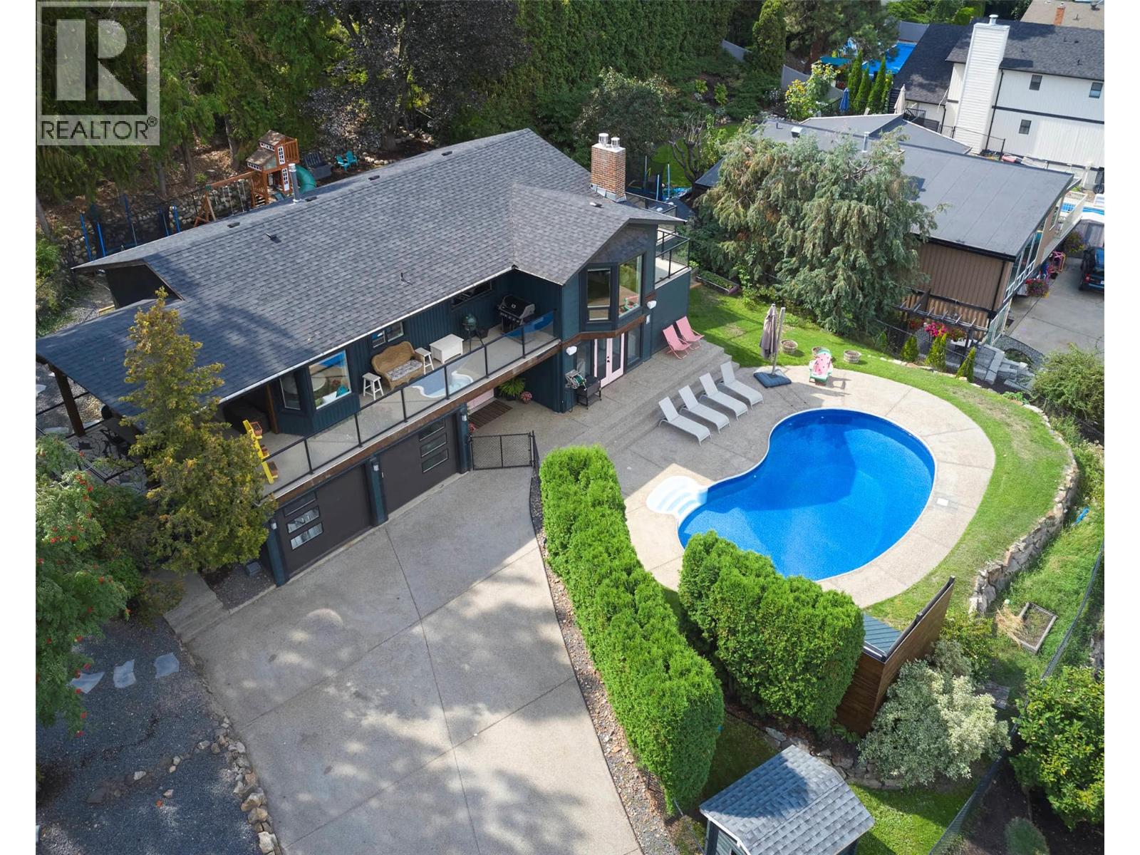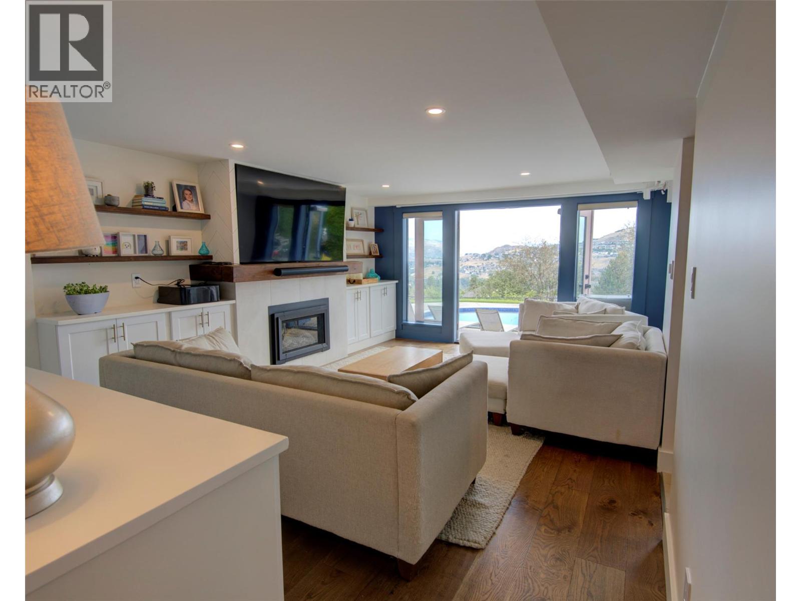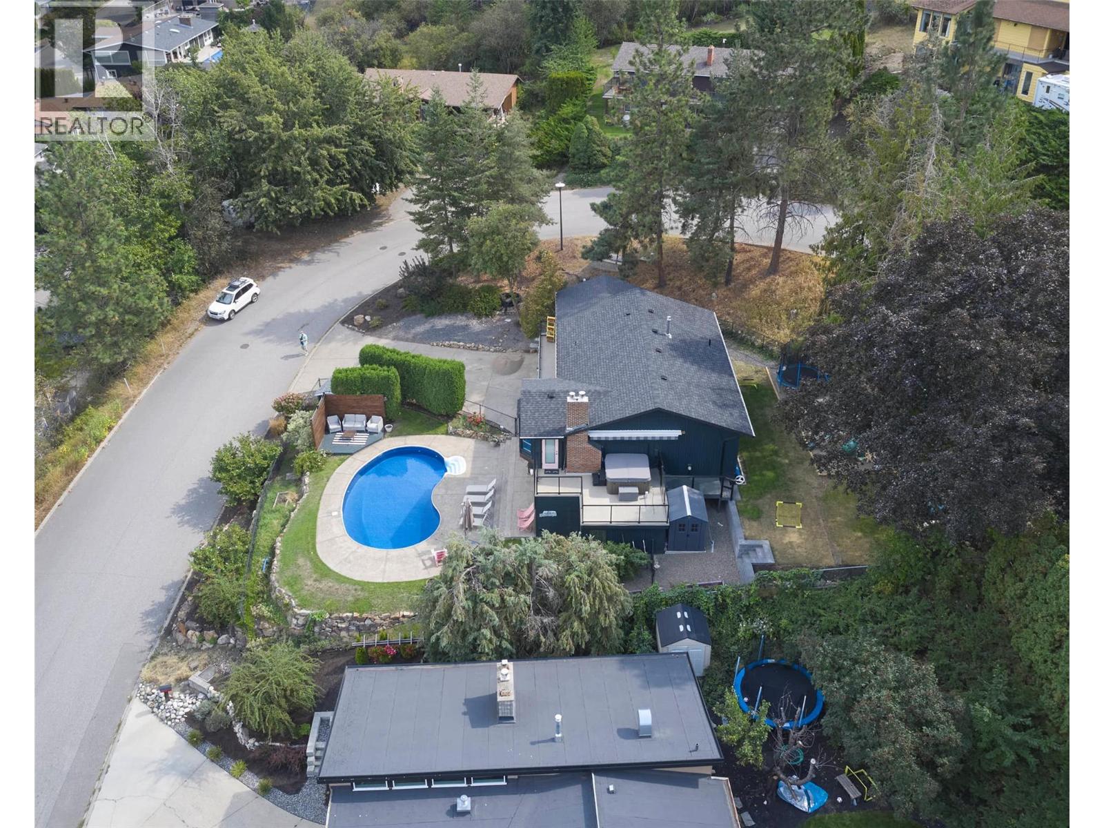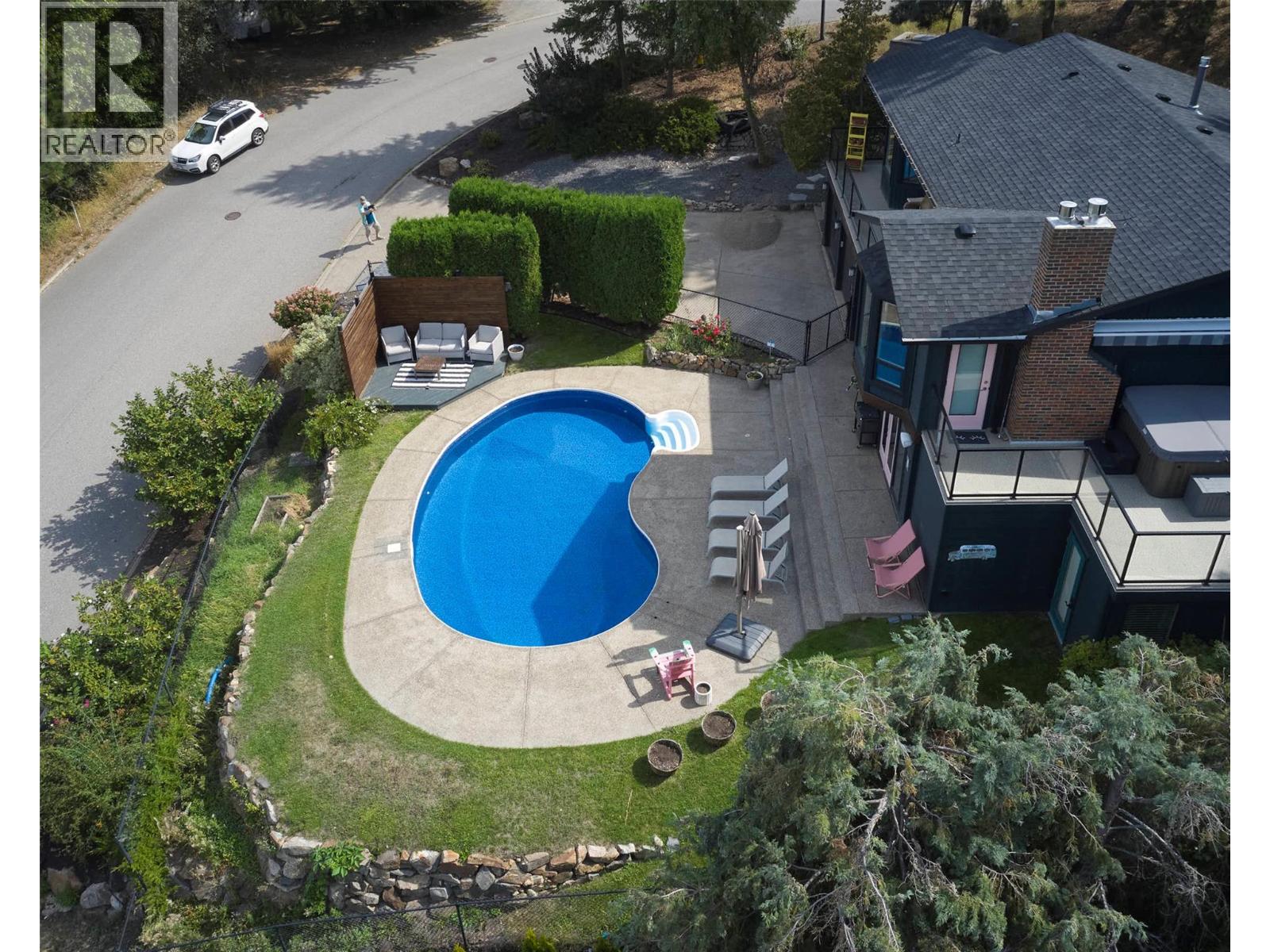 Welcome to a home that blends family living with outdoor adventure. Located just steps from the beautiful Kalamalka Lake hiking trails, this property offers stunning views of the lake and hillsides, all while providing the comfort of your own private pool. Families will also appreciate the convenient access to nearby schools. The main floor features three bedrooms, including a primary suite with a full ensuite, plus a luxurious main bathroom. Large windows frame breathtaking views from every room, and the open-concept layout makes daily living and entertaining seamless. A fantastic covered deck off the kitchen is perfect for summer barbecues, while the living room opens onto a spacious deck with a hot tub and easy backyard access. New gourmet kitchen with new hardwood flooring make this space truly beautiful. Downstairs, you will find two additional bedrooms (window egress to be confirmed) and a generous family room that flows directly to the pool area as well as a luxurious bathroom with walk in shower—ideal for children and gatherings. Privacy surrounds this home, even with neighboring properties nearby. With many thoughtful updates and a designer touch styling, this home is designed for both everyday comfort and endless enjoyment of the Okanagan lifestyle. (id:44393)