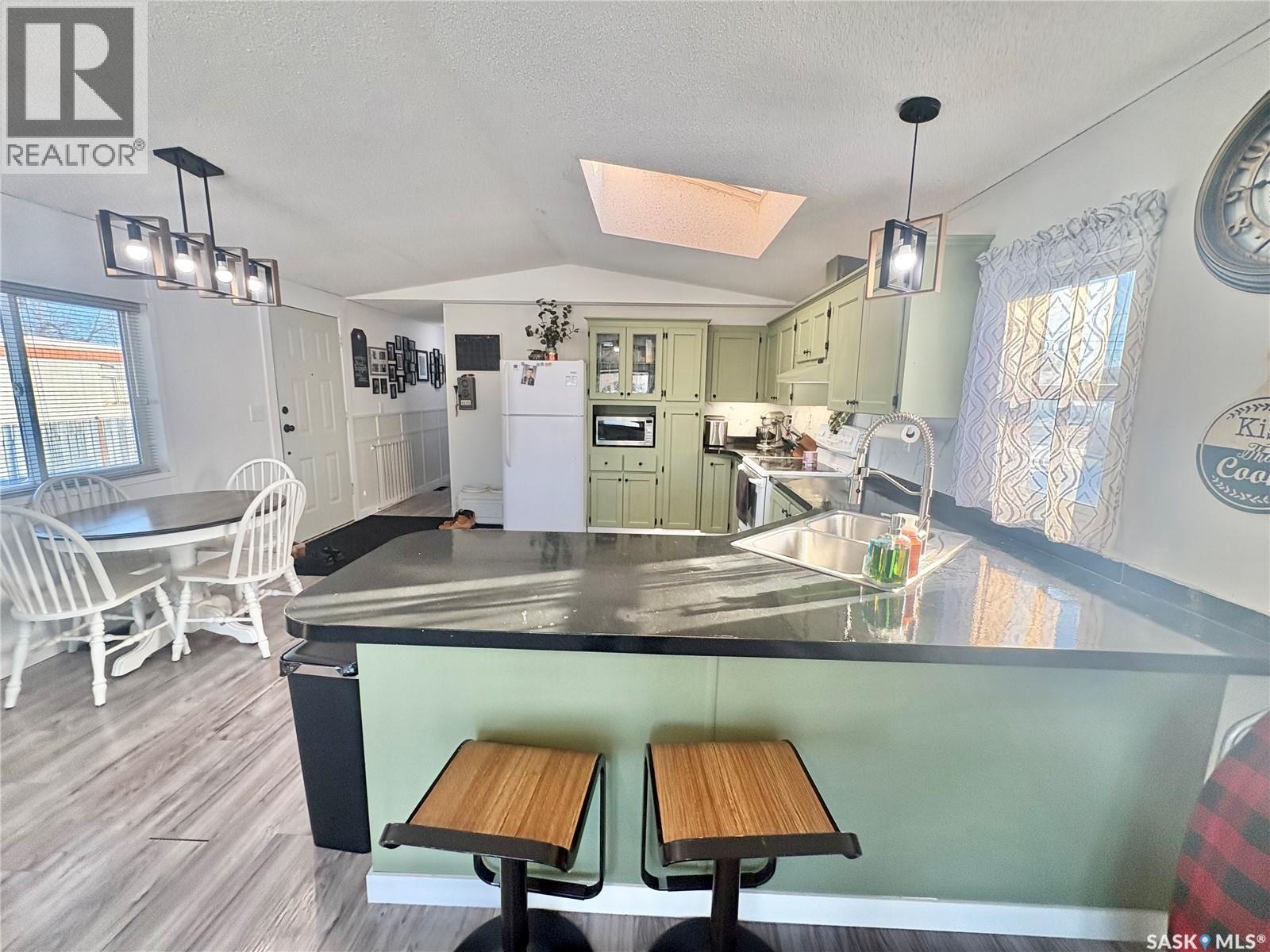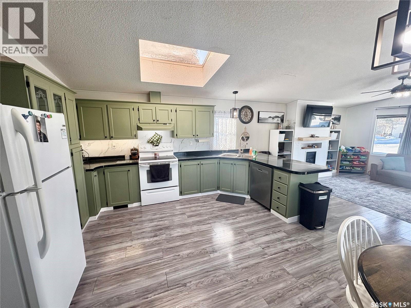 This well-kept 1997 mobile home offers comfortable, efficient living with a smart layout and solid construction—set on a generous 50 ft x 131 ft owned lot, meaning no pad rent and true ownership. Built with 2x6 exterior walls, the home provides added durability and improved insulation to help keep utility costs down year-round. Recent updates add real value, including new shingles and flashing in 2022, along with a recently upgraded dishwasher, washer, and dryer. The bright kitchen features a skylight and opens seamlessly to the living room, with a peninsula that’s perfect for casual meals or entertaining. Three bedrooms provide flexibility for family, guests, or a home office, while the spacious primary bedroom easily accommodates a king-size bed and includes a large closet space. A full four-piece bathroom completes this affordable, low-maintenance home. Gas line BBQ hookup on the deck and ample off-street parking at the front add everyday convenience. An excellent opportunity to stop renting, own your space, and start building equity. As per the Seller’s direction, all offers will be presented on 01/31/2026 4:00PM. (id:44393)