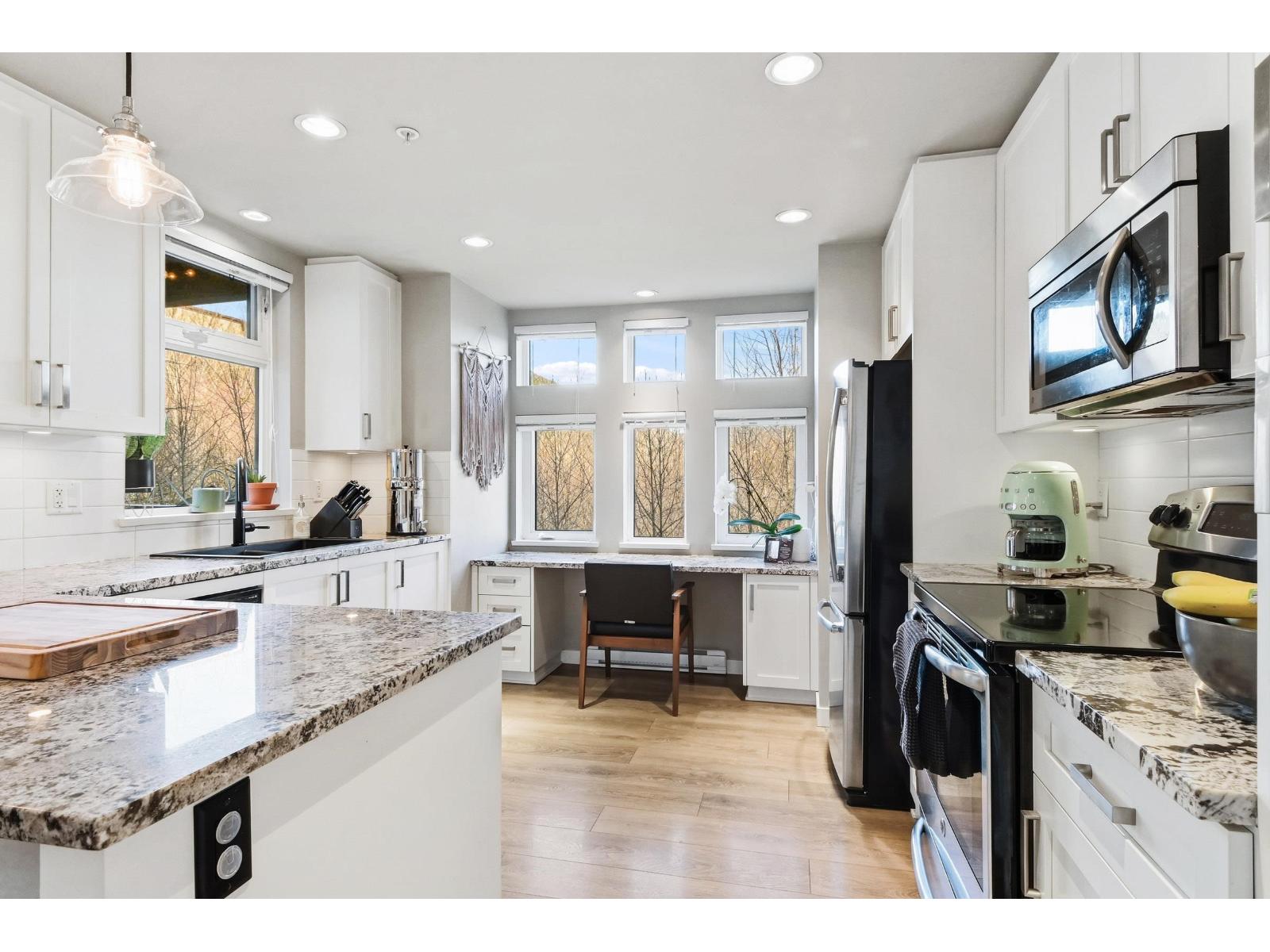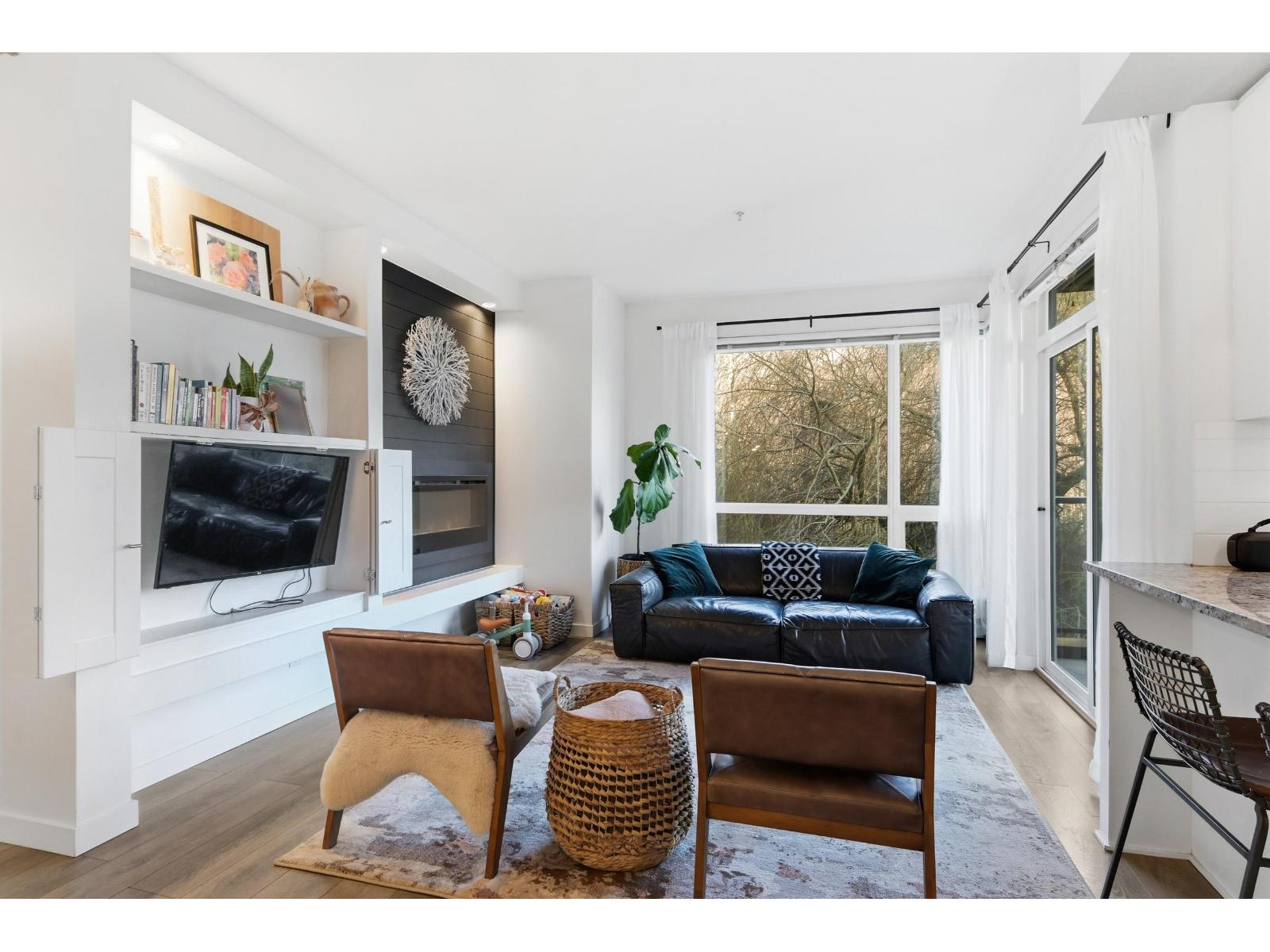 $629.92 MonthlyPrime East Abbotsford location with privacy and stunning greenbelt views-this light & bright 2 bed, 2 full bath corner unit at Waterleaf offers the perfect blend of privacy, nature and convenience, steps to shopping, dining, schools, trails and quick Hwy 1 access. Featuring 9' ceilings, oversized windows, A/C, fireplace, and an upgraded kitchen with stone counters, stainless steel appliances, induction range and breakfast bar. The spacious primary suite includes a walk-in closet and spa-like ensuite. Enjoy a BBQ on your private, covered balcony overlooking the greenbelt. Resort-style amenities include an outdoor pool, hot tub, full gym, and clubhouse with games area. Kids, pets and rentals OK. Includes 2 secure underground parking stalls plus storage. Move in ready. Could this be the one? Click multi-media links below to see more. (id:44393)