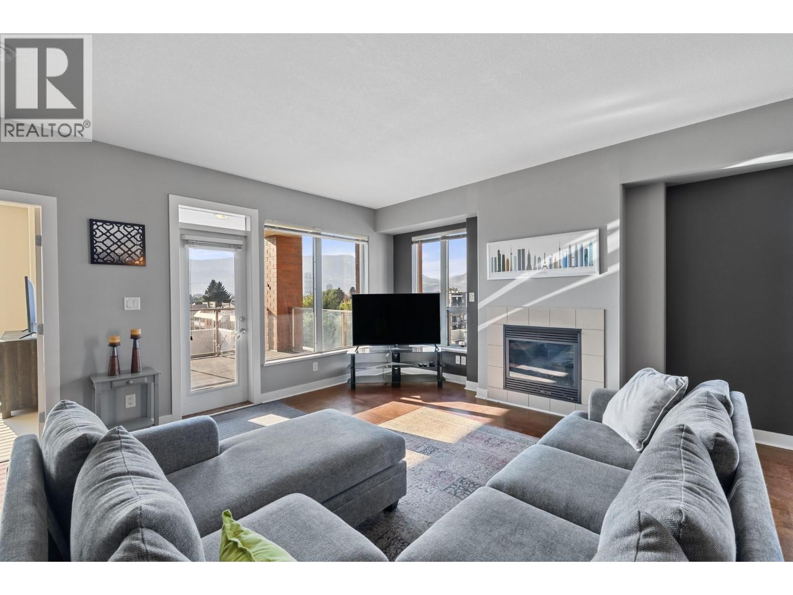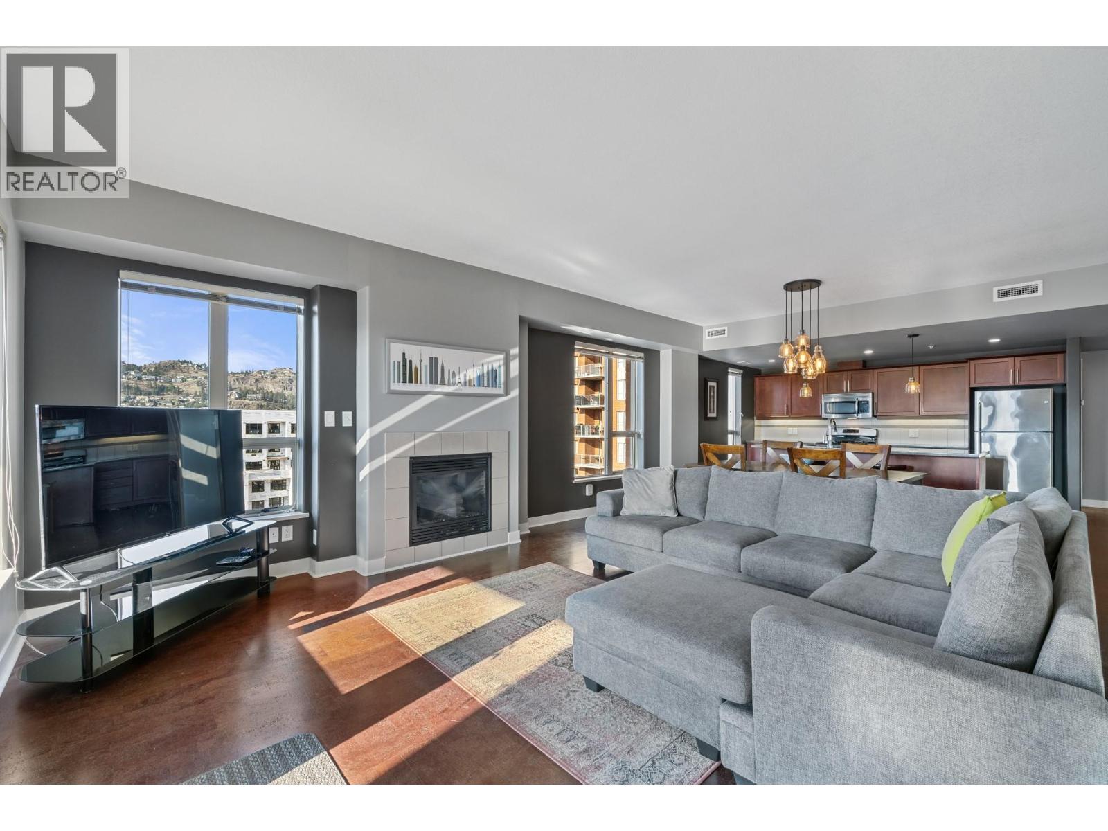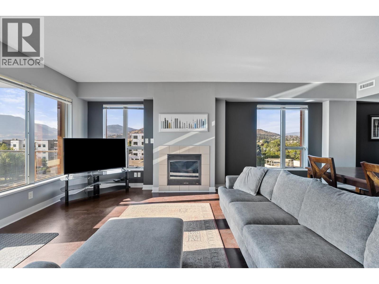 $460.07 MonthlyWelcome to urban living at its finest! Located in the prestigious Centuria building, this unit offers an impressive 1,446 sq. ft. of stylish and spacious living. This 2-bedroom, 2-bathroom condo features mountain, city, and valley views from your private balcony - the perfect spot to relax with your morning coffee or unwind at sunset. An open-concept layout includes a generous living room with a cozy gas fireplace, a modern kitchen with ample cabinetry, and a bright dining area. The large primary suite is a true retreat with a walk-in closet and a luxurious 5-piece ensuite. A second spacious bedroom, 4-piece main bathroom, and a dedicated laundry room add functionality. This concrete high-rise offers top-tier amenities including a fully equipped fitness center, sauna, steam room and a sparkling outdoor pool. Additional features include underground parking, a storage locker, elevator access, and a secure building with fire sprinkler systems. A walkable location close to downtown Kelowna, restaurants, shops, and parks, this unit offers the perfect blend of convenience and luxury. (id:44393)