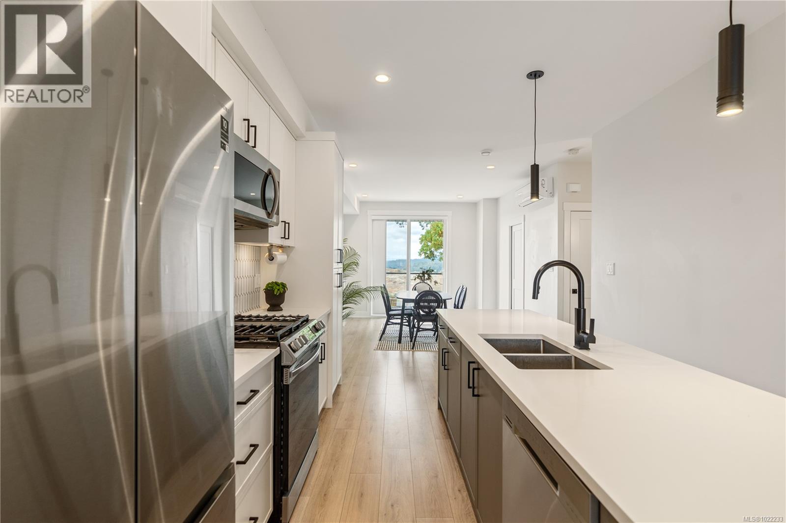 $281 MonthlyWelcome to 1161 Moonstone Loop in Bear Mountain’s South Point community! This bright 2 Bed, 3 Bath END UNIT townhouse offers stunning mountain views and a flexible, open-concept layout. The chef-inspired kitchen features stainless steel appliances, two-tone cabinetry, and a spacious island. The living and dining areas can be arranged to suit your lifestyle—dine by the fireplace or relax and enjoy the view. Upstairs, a bright skylight adds natural light, and the primary suite offers oversized closets and a spa-like ensuite with radiant floor heating and a glass shower. The second bedroom also includes its own ensuite, and a full laundry room is conveniently located upstairs near both bedrooms. Enjoy two private balconies and a low-maintenance backyard. The tandem double garage provides parking, storage, or space for a gym/office with its own entrance. Just one minute to the highway for a quick Victoria commute! (id:44393)