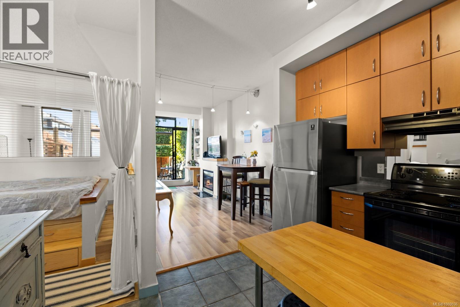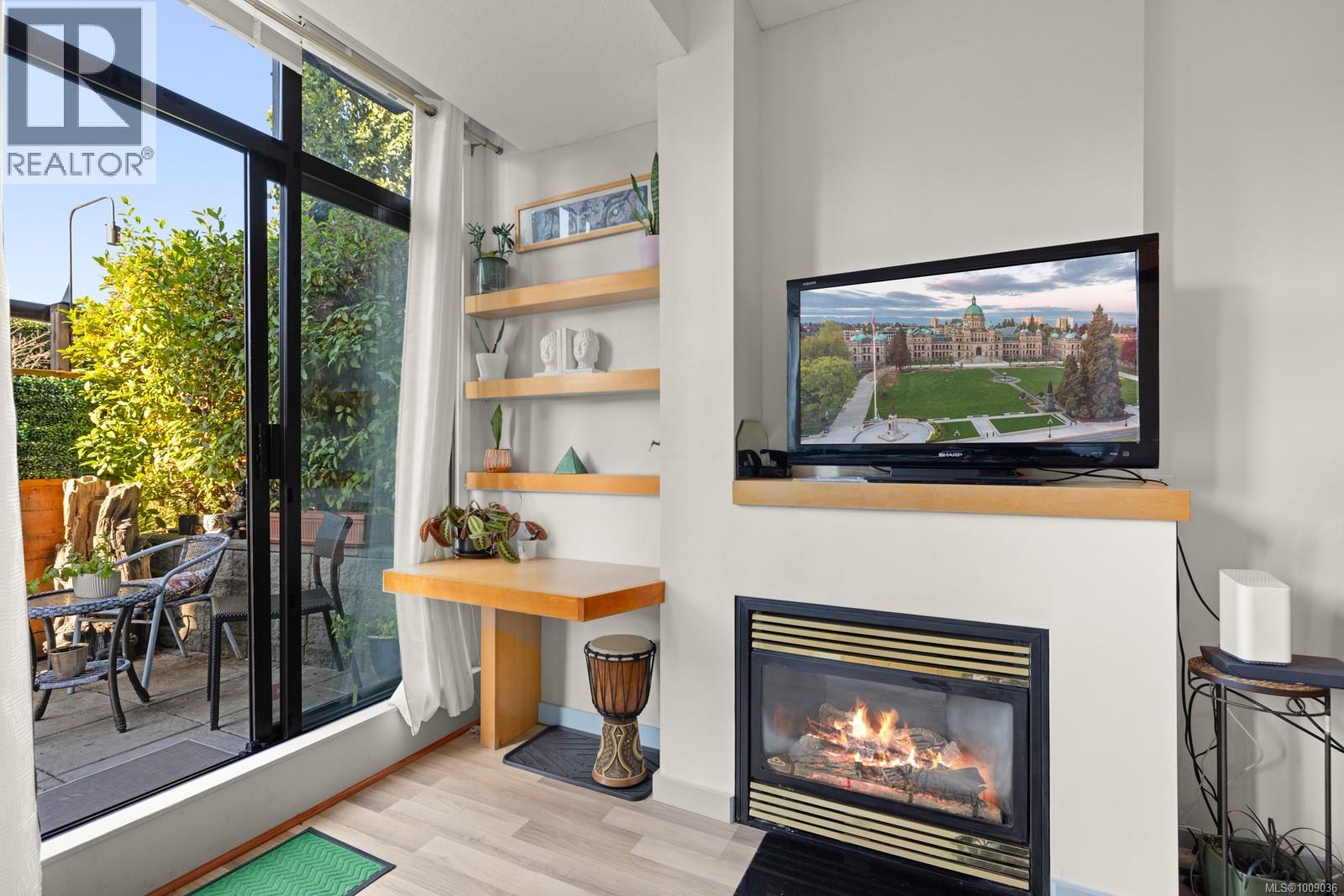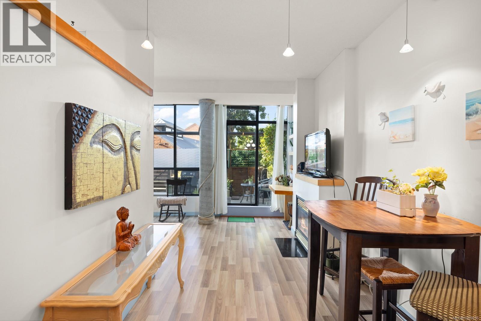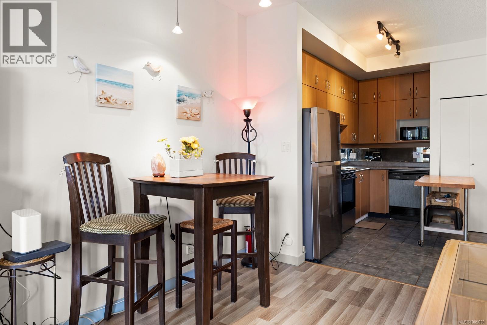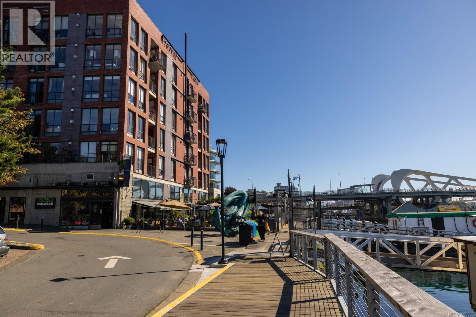 $478.92 MonthlyBright ONE BED SUITE with Large PATIO, is PET FRIENDLY and has PARKING! Welcome to Mermaid Wharf, a stylish and vibrant waterfront steel and concrete residence in downtown Victoria. This bright, spacious suite is among the largest in the building, offering 535 sq ft of well-designed living with floor-to-ceiling windows that capture west-facing sunset views. The open layout includes hardwood floors, gas fireplace, dining area, in-suite laundry and built-in desk for function and style. A rare level-entry design extends to private west-facing patio, providing convenience and privacy. The kitchen features stainless steel appliances and wood cabinetry. Comes with secure underground parking, storage locker, kayak and bike storage. Residents also enjoy a rooftop patio with BBQ facilities and the rare benefit of dock access for owners to launch kayaks directly into harbour. Allows min 90 day rentals and is steps to the Johnson St bridge, Galloping Goose, fabulous restaurants and pubs. (id:44393)