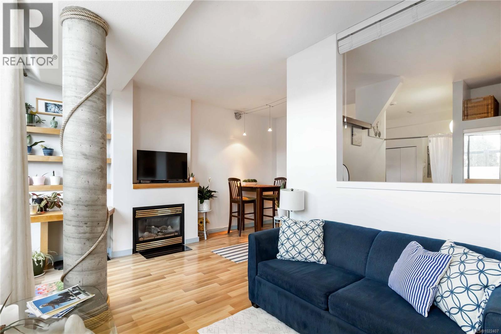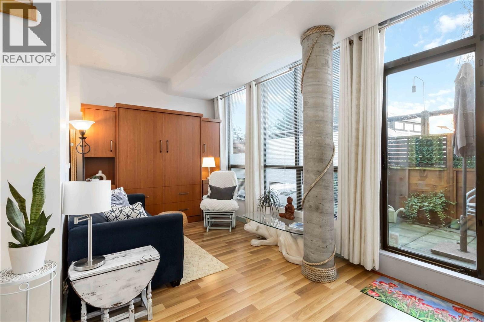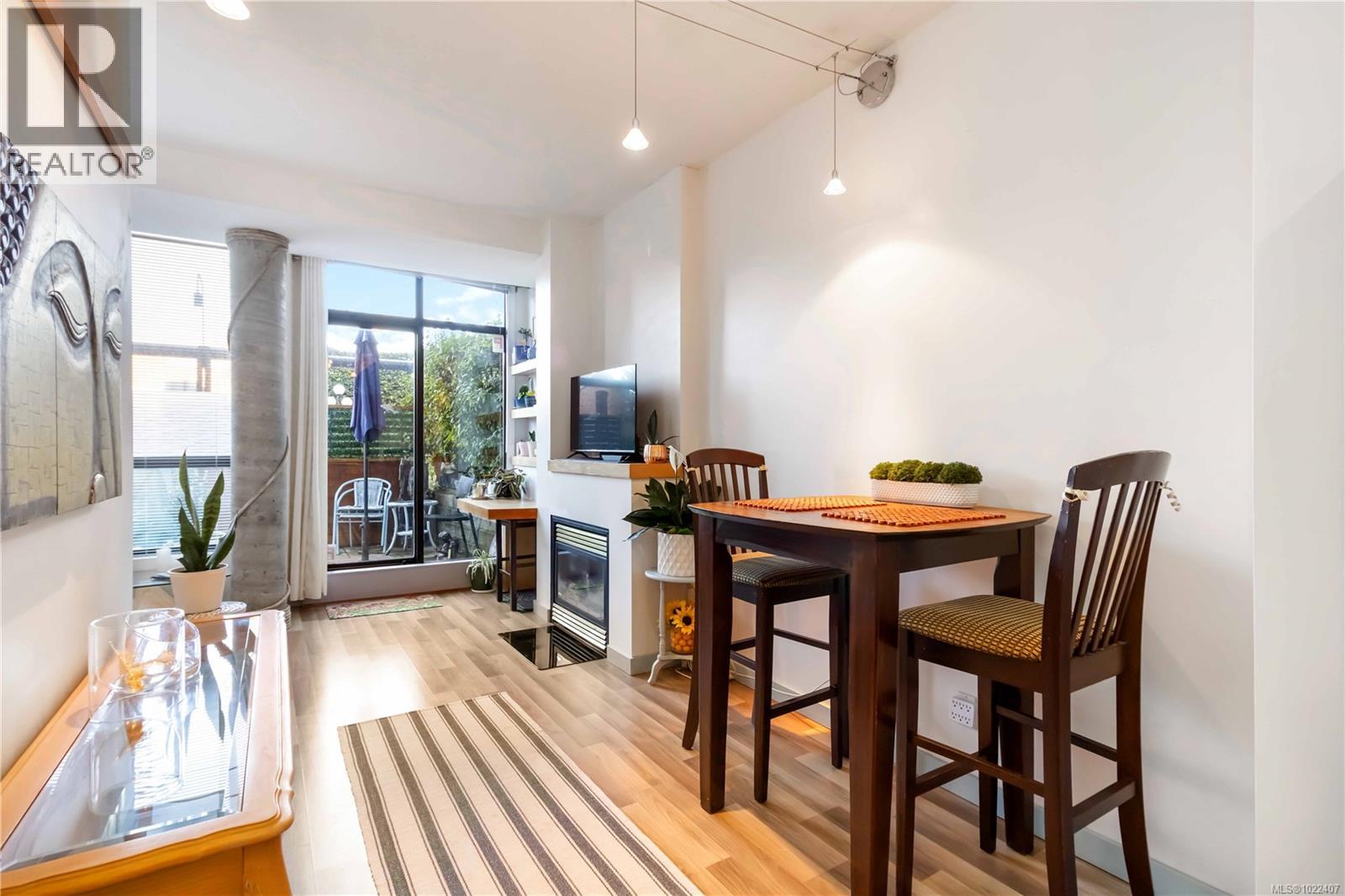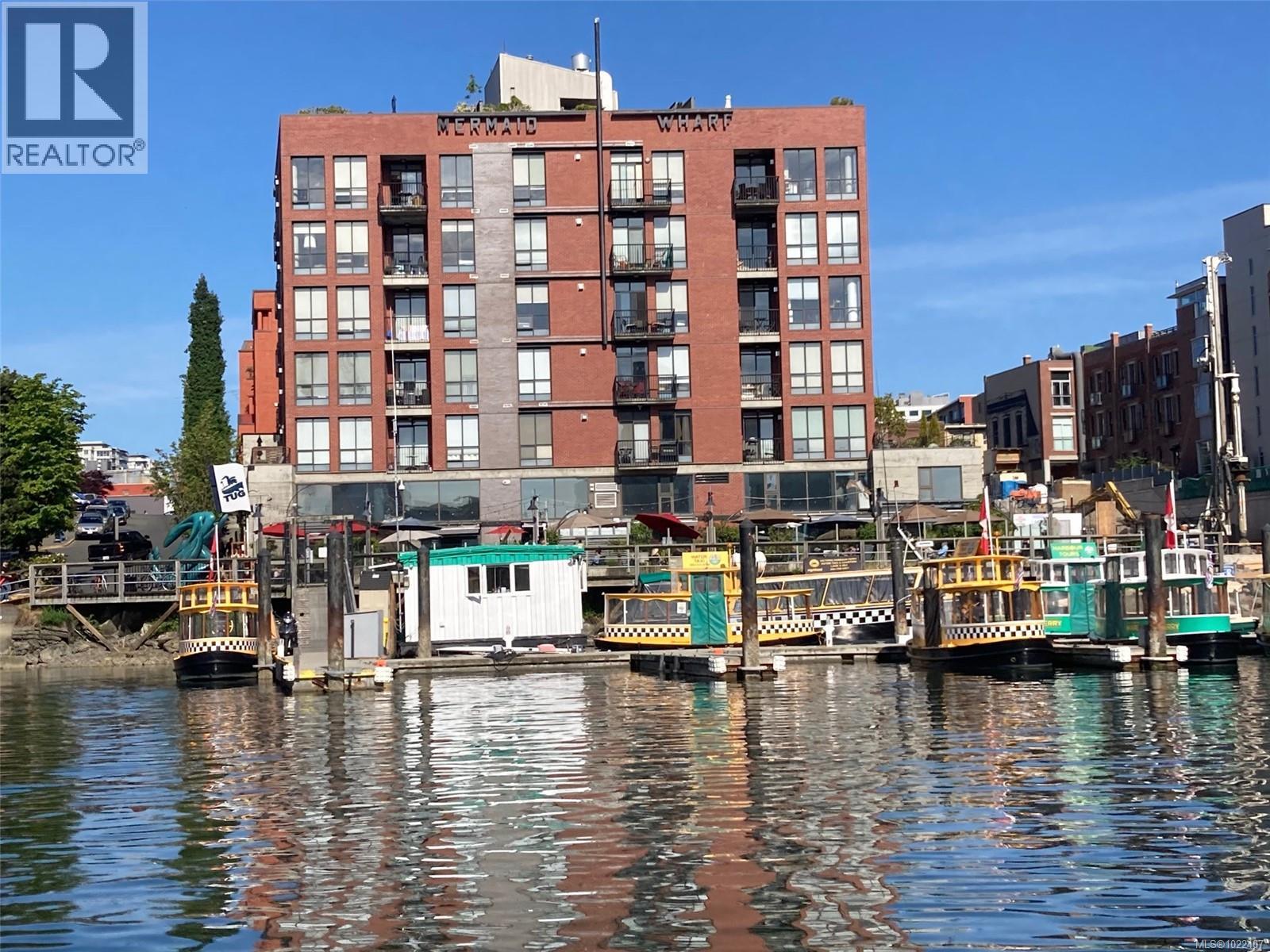 $489 MonthlyWaterfront lifestyle condo with a large ground-floor patio in Victoria’s iconic Mermaid Wharf. Enjoy an active, coastal way of life with kayaking, paddle boarding, bike paths, and waterfront strolls just steps from your door. Thoughtfully designed to maximize space and functionality, featuring high ceilings with floor to ceiling windows, gas fireplace, in-suite laundry, expanded bedroom layout with platform bed/storage, murphy bed, built-in desk/shelves. Convenient gated street level access to large patio, and secure underground parking/storage. This steel and concrete, pet-friendly, professionally managed building offers bike/kayak storage, dock access, and a roof top patio with harbour/city. Monthly strata fee includes gas & hot water. A walkable location to Downtown Victoria’s restaurants, cafés, shopping, entertainment, Chinatown, water taxis, and walkways. Great waterfront lifestyle living as a residence, urban retreat, or investment property. (id:44393)