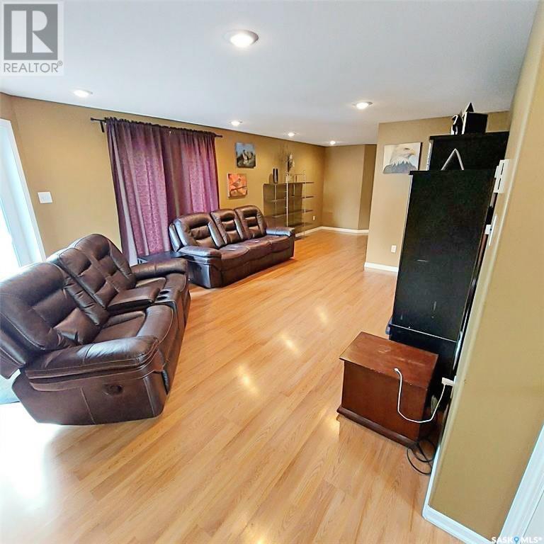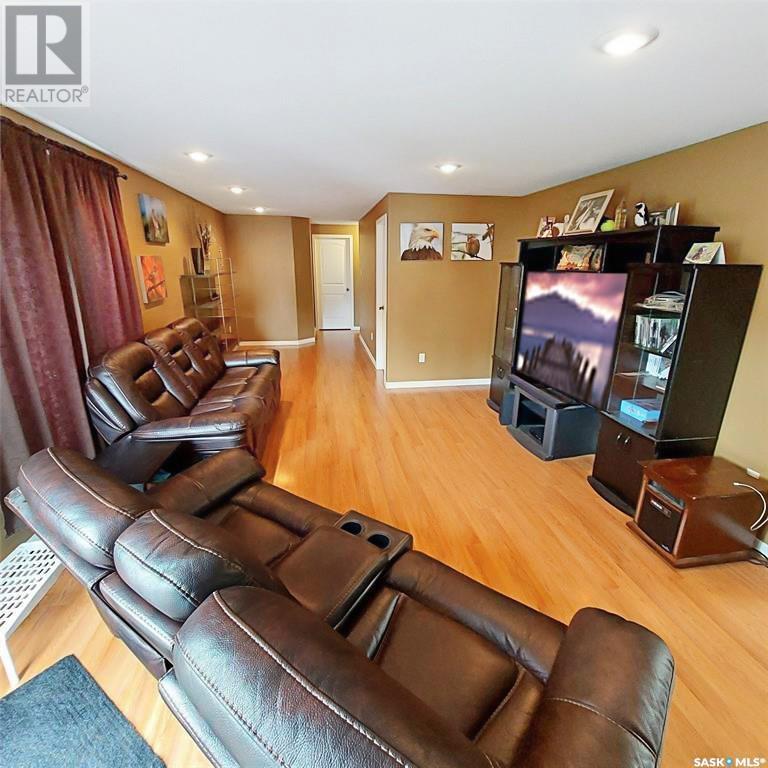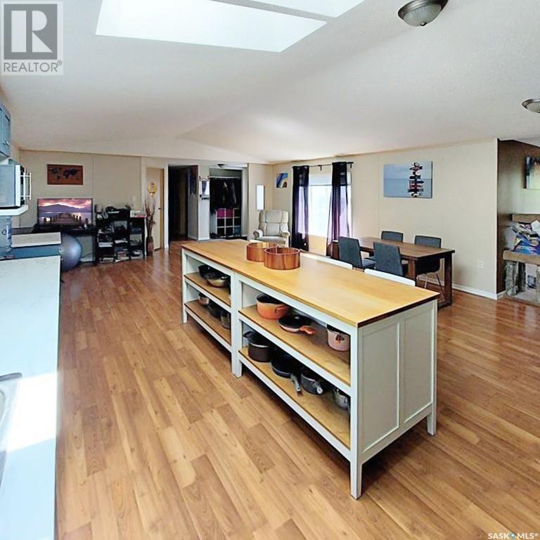 MOTIVATED SELLERS! Spacious 2,270 sq ft modular home with a 2013 addition, located on a quiet cul-de-sac in Neilburg. Bright, open-concept kitchen and dining area features skylights and a large island — ideal for entertaining. The home offers four bedrooms, three bathrooms, a cozy living room, den, bonus room, and convenient main floor laundry. The primary suite includes a walk-in closet and private ensuite. Enjoy a backyard with a firepit, extra parking, and plenty of space for family activities or relaxing. Additional features include a detached garage and ample storage throughout the home. Shingles on the modular home were replaced in June 2023. Perfect for families — just a 2-minute walk to the K–12 school, 45 minutes from Lloydminster, and 1 hour from the Battlefords. Don’t miss this opportunity to make this versatile and well-maintained property your new home! (id:44393)