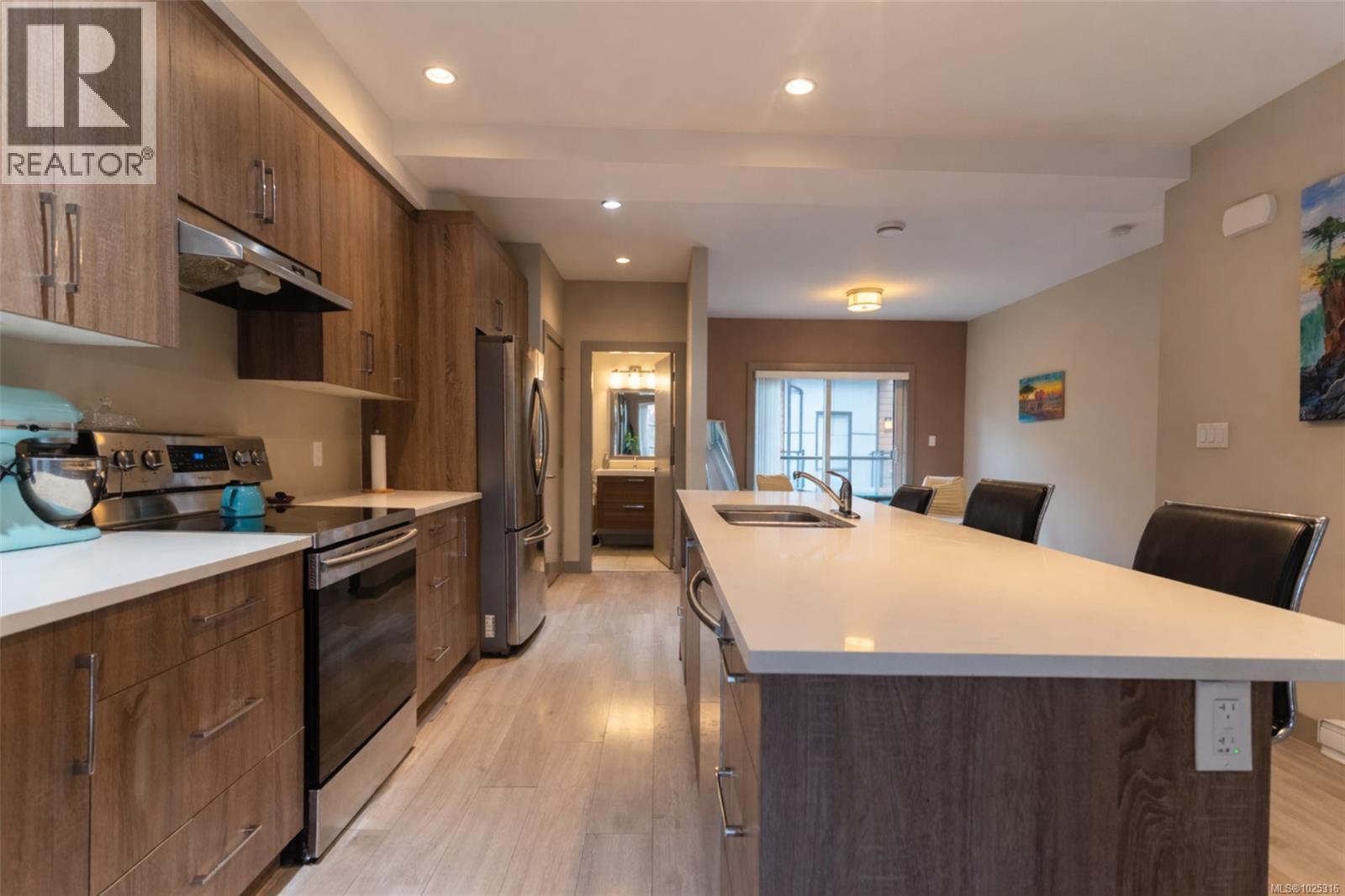 $307.19 MonthlyWelcome to this beautifully designed end-unit 3-bedroom, 3-bath contemporary West Coast–style townhome offering a bright, functional three-level layout in one of Langford’s most convenient locations. Thoughtfully designed with 9-foot ceilings, large windows, and open-concept living, this home delivers exceptional natural light and a spacious feel rarely found in townhome living. The main level features a stylish kitchen with stainless steel appliances, ample cabinetry, and an oversized island that flows seamlessly into the dining and living areas. An electric fireplace adds warmth and ambiance, creating an inviting space for everyday living and entertaining. As an end unit, this home benefits from additional windows and enhanced privacy. Enjoy outdoor living on two private balconies located on both sides of the home, providing excellent airflow and additional natural light throughout the day. Upstairs, the upper level offers three well-appointed bedrooms, including a spacious primary suite with vaulted ceilings, walk-in closet, and private ensuite. Two additional bedrooms provide flexibility for families, guests, or home office use. The lower level includes a versatile den, ideal for a home office, gym, guest space, or media room, offering excellent separation between living and sleeping areas. This three-level design allows for privacy and adaptability as lifestyle needs evolve. Located close to major shopping hubs, Costco, grocery stores, restaurants, cafés, parks, schools, and transit, this home offers a true convenience-first lifestyle. Easy access to recreation, trails, and commuting routes makes daily living effortless. With strong rental demand, proximity to key amenities, and a flexible layout, this property presents excellent long-term value and appreciation potential. A perfect opportunity for first-time buyers, families, professionals, or investors seeking comfort, functionality, and location. (id:44393)