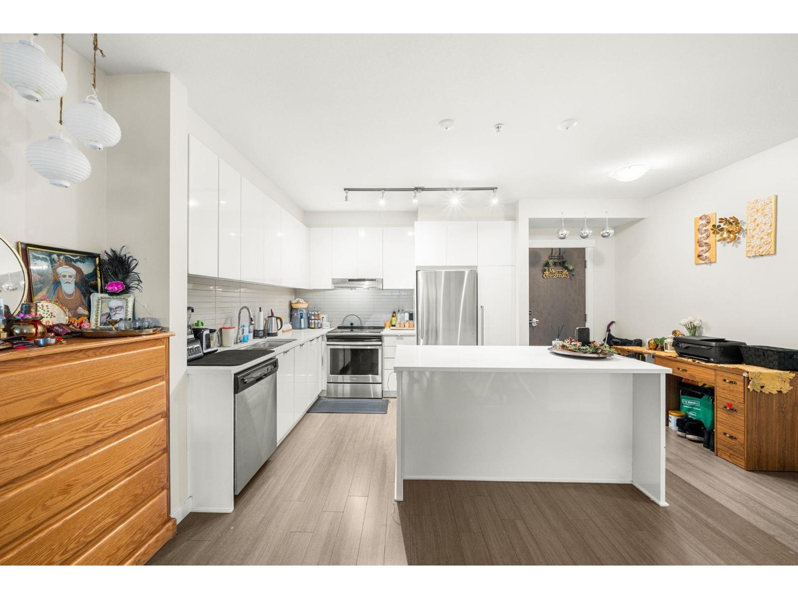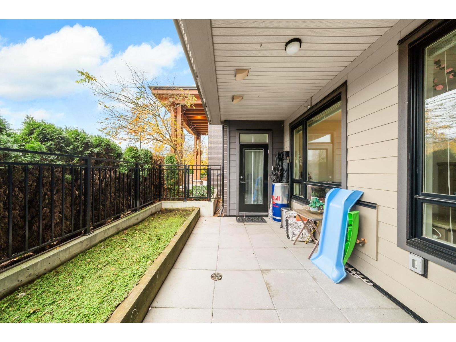 $400 MonthlyWelcome to Elmstone by Polygon in the master-planned Westerleigh community. This bright 2 bed, 2 bath ground-floor home offers a large private patio with fenced yard, perfect for easy outdoor living. The open layout features 9 ft ceilings, laminate flooring, and a stylish kitchen with a full-size island, stainless steel appliances, engineered stone counters, and soft-close cabinetry. The primary suite includes a walk-in closet and a spa-inspired ensuite with double sinks and a spacious shower. Enjoy resort-style amenities at Club West, including a pool, hot tub, gym, lounge areas, sports court, BBQ zone, and dog wash. Convenient location near Highway 1, Abbotsford International Airport, schools, parks, shopping, and dining. Rentals and pets allowed, plus parking with EV charging. (id:44393)