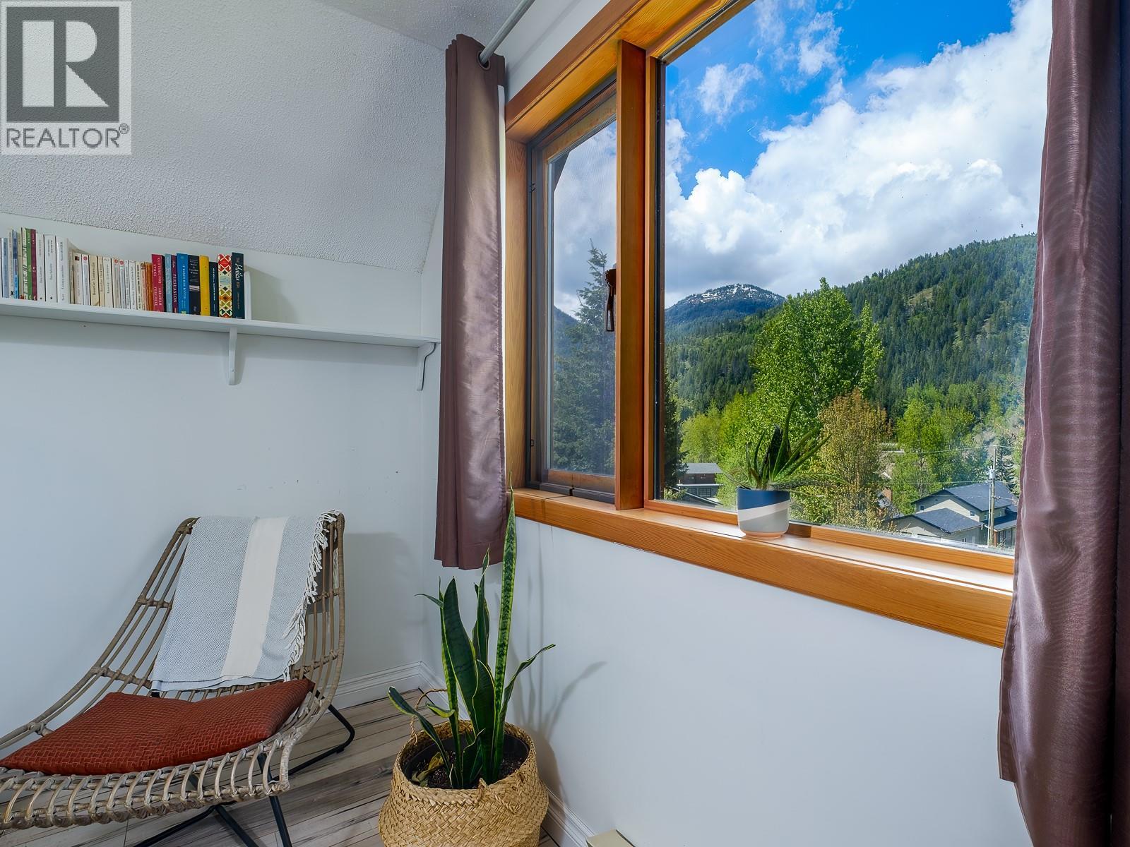 Tucked away on a quiet dead-end street, this charming home offers the perfect blend of peaceful mountain living and everyday convenience. Situated on a spacious 90 x 100 ft corner lot with awesome mountain views, the property features mature landscaping, vibrant perennials, and an established garden with various ""chill zones"" designed for relaxing in the sun or shade. The inviting three-level layout includes 3 bedrooms, 2.5 bathrooms, and a warm interior highlighted by engineered wood flooring through the living and dining areas. The partially finished basement offers a family room perfect for workouts or movie nights, providing plenty of storage and easy access to the lower patio and wood storage area. Modern updates abound, including two tastefully renovated bathrooms, a sauna, and high-ticket upgrades like a new roof (2024), on-demand hot water (2024), a high-efficiency furnace (2020), and updated attic insulation. Structural peace of mind is ensured with new perimeter drainage (2024) and a recently redone deck surface, while a gorgeous timber-frame carport with overhead storage adds both character and practicality. Located in a fantastic neighborhood just steps from hiking and biking trails, you are only a five-minute drive from the legendary Red Mountain Resort and within easy walking distance to schools and downtown. (id:44393)