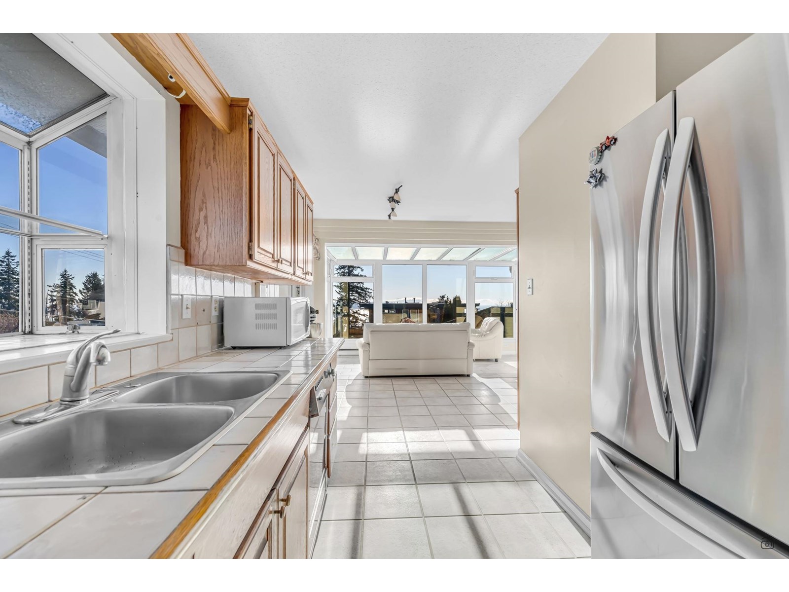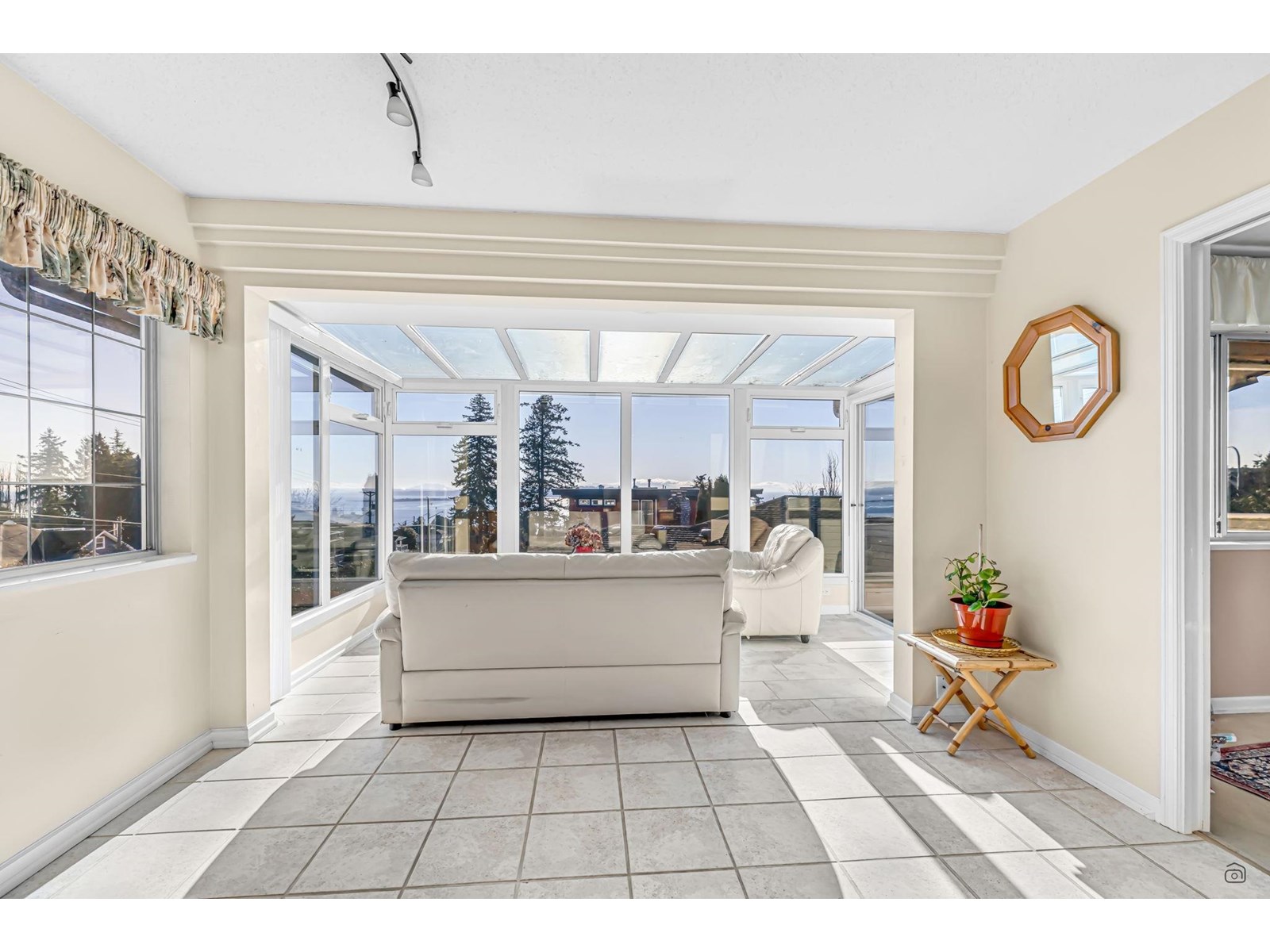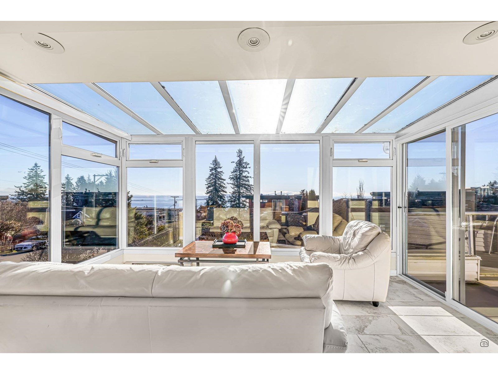 Stunning ocean views steal the show in this bright and spacious 4-bedroom, 3-bathroom home on a large corner lot. Enjoy breathtaking vistas from the solarium and balcony, while the sunlit above-ground basement offers its own laundry, a 25' x 20' walkout patio, and an 8' x 6' outdoor-access storage room-perfect for extended family living. Modern updates include sleek appliances, a newer hot water tank, and two cozy gas fireplaces. With ample parking, including RV space, this home is ideally situated in top school catchments: Semiahmoo Secondary (IB Program) and White Rock Elementary (Fine Arts). Steps from transit, Uptown shops, and three blocks to Peace Arch Hospital. Don't miss the cinematic video and floorplans! (id:44393)