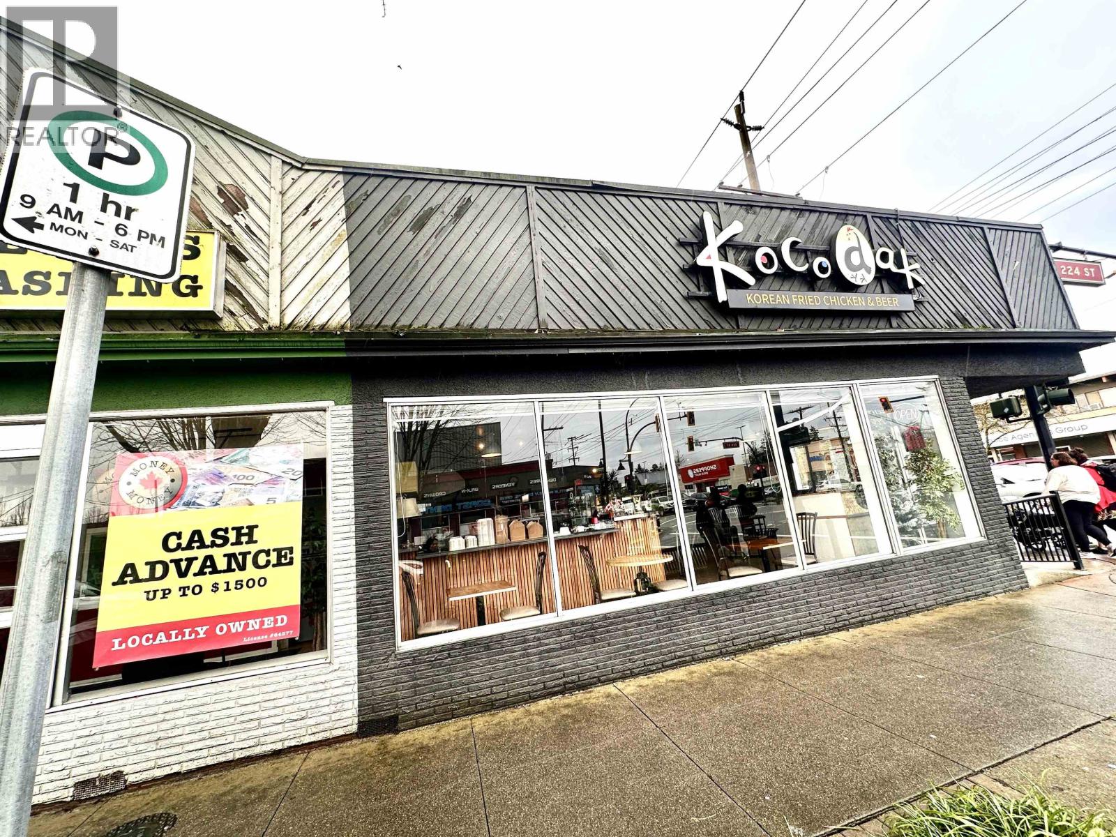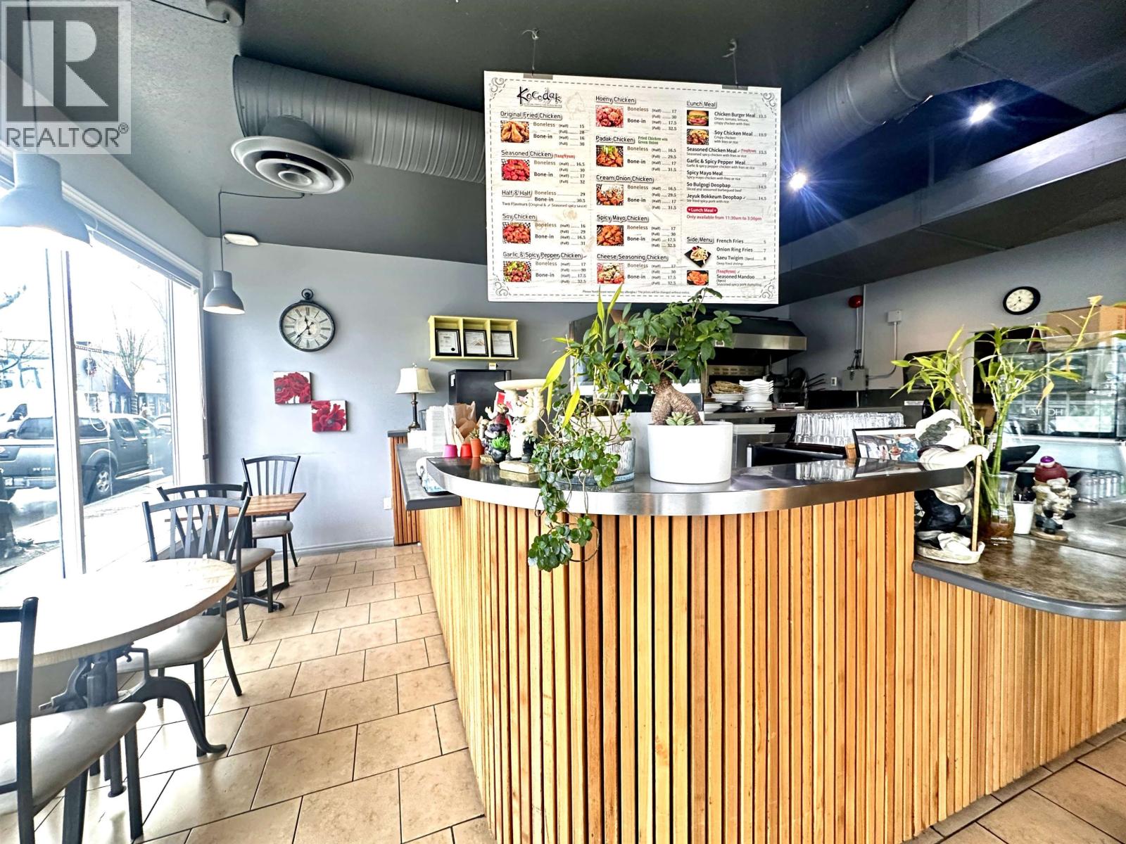 "Showing by appointment only, do not disturb staff. * Well-established Korean fried chicken restaurant located in the heart of downtown Maple Ridge. This business enjoys a busy, high-exposure comer location with excellent street visibility and strong foot and vehicle traffic. Plenty of free street parking is available nearby, making it very convenient for customers. The restaurant features approximately 1,450 sq.ft. with 30 seats, a full commercial ventilation system, and a liquor license approved until midnight, allowing for strong evening and late-night sales. The space is well laid out and fully equipped for continued operation. The business benefits from a long-term lease with low rent, providing excellent cost stability. Food cost is low, and the operation is efficient and easy to manage. The landlord is cooperative and easy to work with, making this an ideal situation for a new owner. The brand and recipes are included. Please contact the listing agent for more information today! (id:44393)