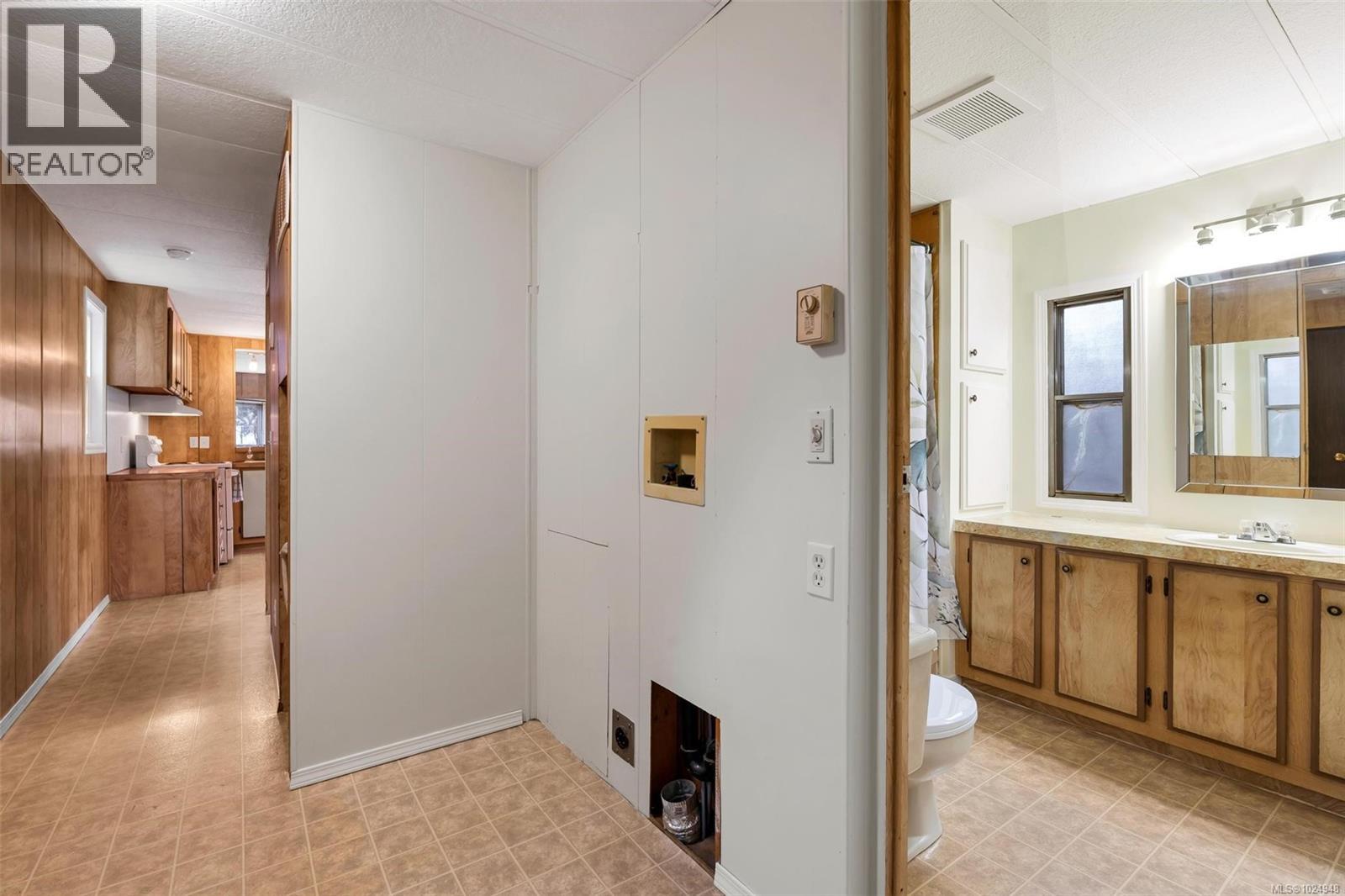 $471 MonthlyGreat Opportunity! This charming 2-bedroom, 1-bath modular home is located in the desirable 55+ Saltair Mobile Home Park. This estate sale has been lovingly cared for by the same family for over 20 years. With a newer heat pump, in-unit laundry hookups, and an outdoor storage shed, you have everything you need to get started. The home would benefit from a new roof and a refreshed shower surround, making it perfect for someone looking to personalize their bathroom and add value. Serenity meets convenience with low pad fees, just minutes from oceanfront parks, scenic coastal trails, and the charming towns of Chemainus and Ladysmith. Local shops, cafés, and amenities are all nearby. Come see it for yourself. Quick possession is available so you can start your next chapter today. Buyer to verify measurements if important (id:44393)