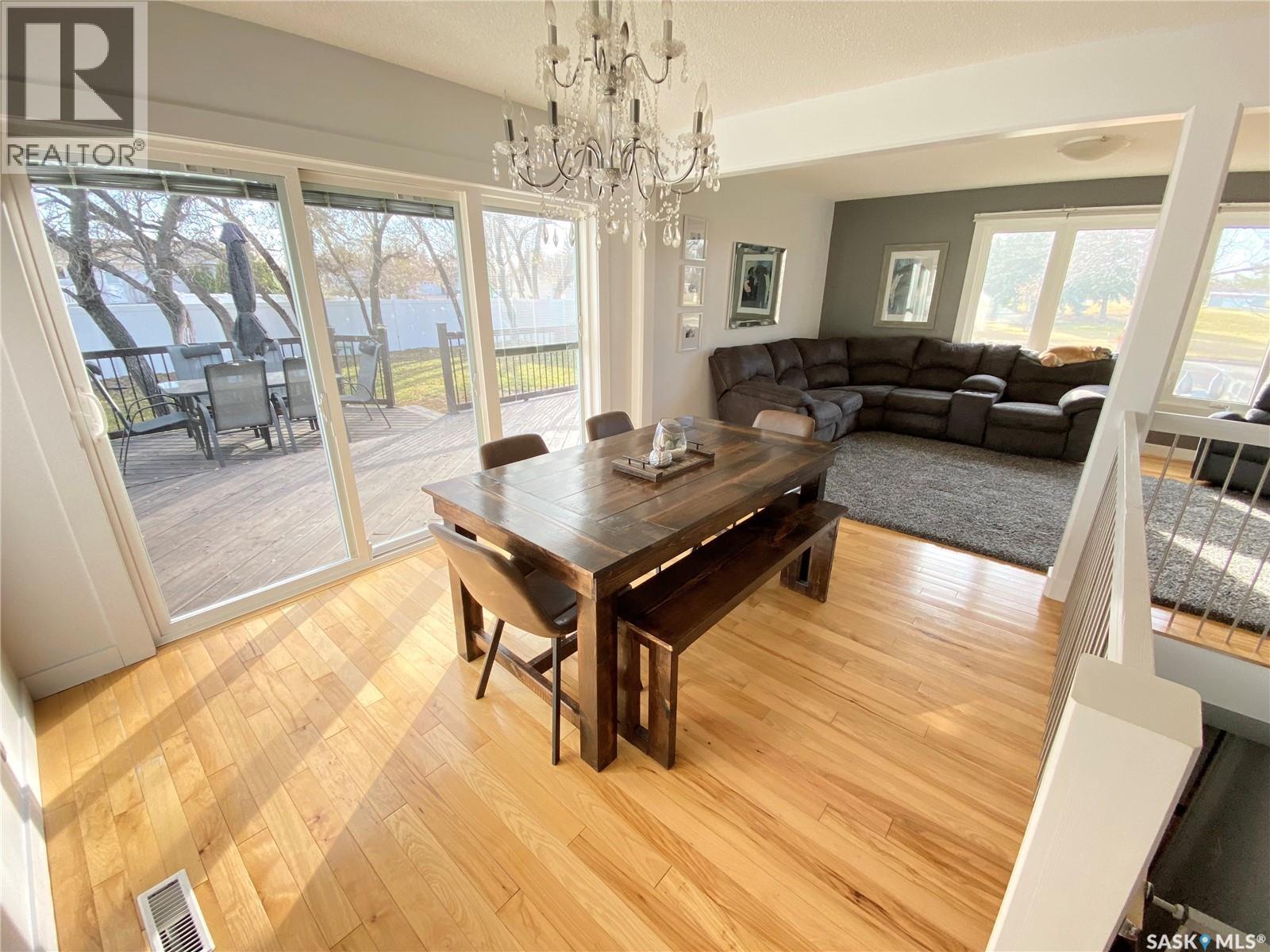 PRIME location! 1205 Douglas is perfectly situated for your growing family—directly across from Jubilee Park and steps from Legacy Park School, the Spark Centre, swimming pool, soccer fields, ball diamonds, and tennis courts. Plus, you’re just a few blocks from Assiniboia Park School. This fully finished home offers 5 bedrooms (4 up, 1 down), 2 full bathrooms, and a convenient half bath. You’re welcomed by a spacious entryway with ample closet space. The modern kitchen features crisp white cabinetry, a large island, and a stainless steel appliance package. The expansive dining area is filled with natural light, enhanced by updated doors and windows leading to your back deck. Downstairs, enjoy a renovated family space—perfect for relaxing or entertaining—complete with an electric fireplace and a stylish wet bar. The fully fenced yard is equally impressive, featuring a large two-tiered deck, durable PVC fencing, and plenty of room to build a garage or let the kids run and play. Offer presentation is scheduled for Monday, May 4th @ 5:00pm so be sure to have your Agent get you in before you miss out! As per the Seller’s direction, all offers will be presented on 05/04/2026 5:00PM. (id:44393)