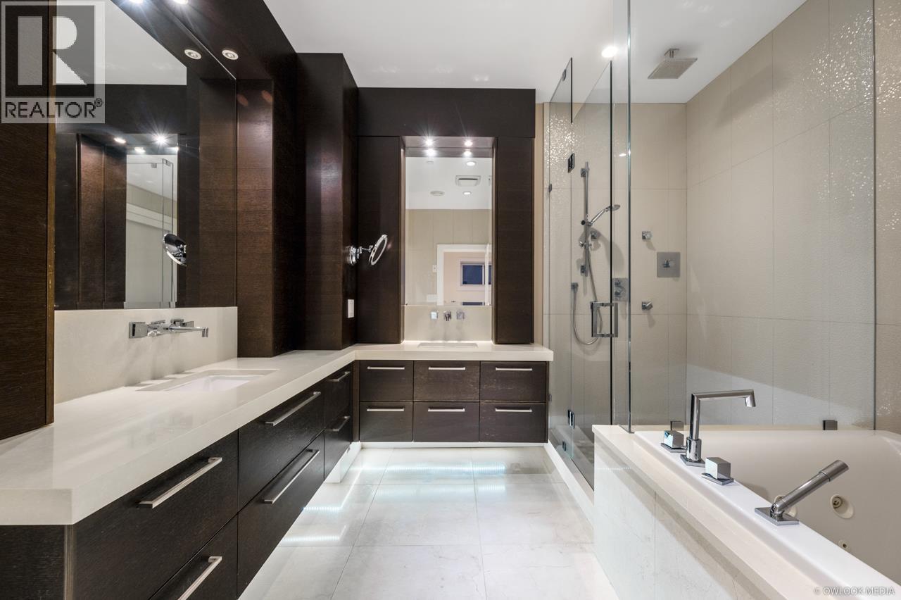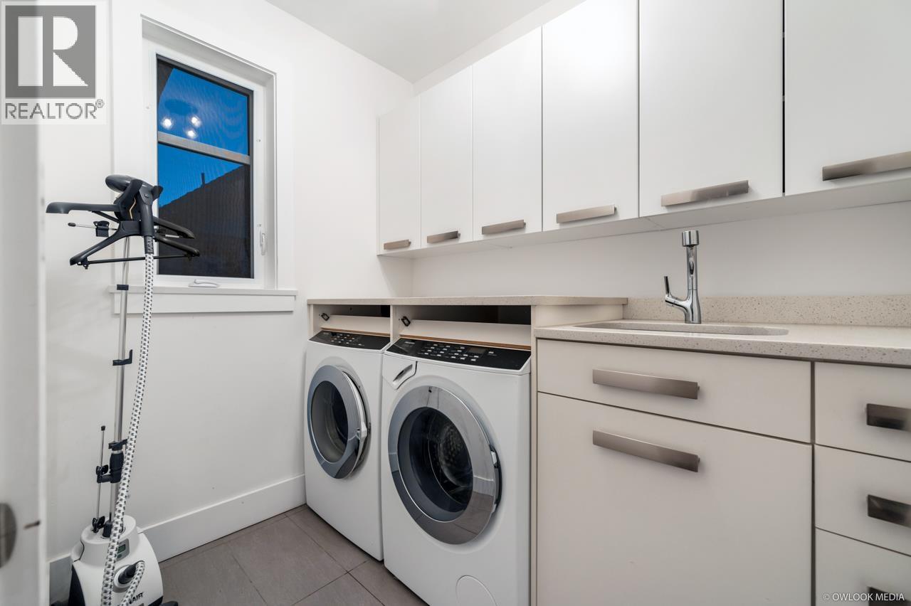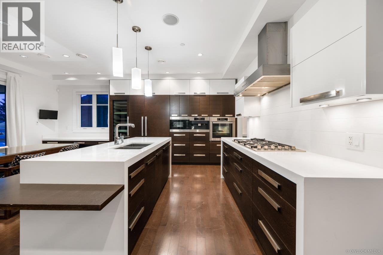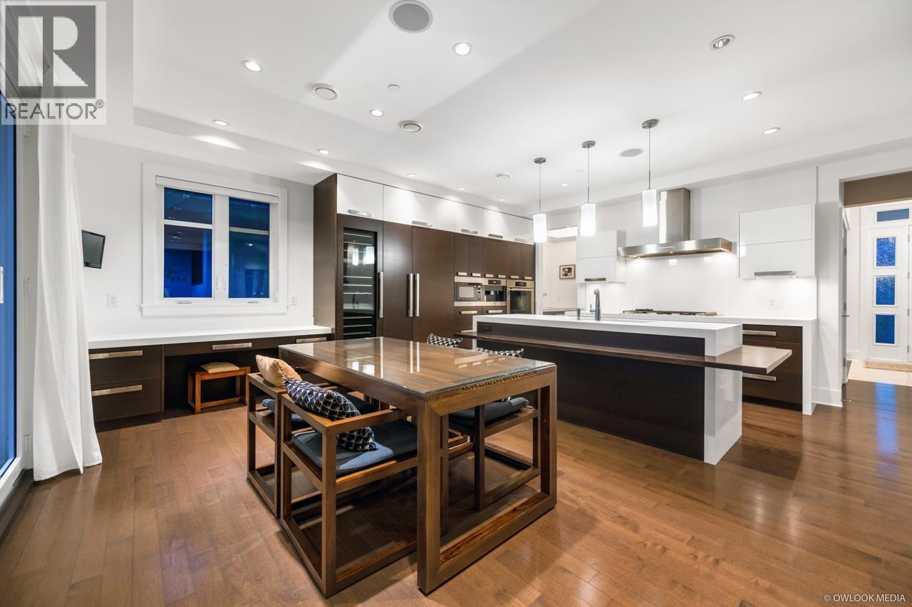 This remarkable contemporary home sits on a quiet corner lot in the heart of Ambleside with views of the Ocean and Lions Gate Bridge. Almost 4,800 sq/ft over 3 levels with Elevator, 7 bedrooms, 6 full baths & 1 half bath, living room, family room, Wok kitchen, media room, 3 sets of washers/dryers! Radiant floor heating with A/C, kitchen outfitted with high end Miele appliances, Euroline doors, Italian tiles and hardwood flooring throughout. Entertain with the built in BBQ on the huge heated south facing patio. Legal one bedroom with own kitchen, washer/dryer with separate entrance. Easy access to shopping, Ambleside Beach, golf course and West Vancouver´s finest schools. (id:44393)