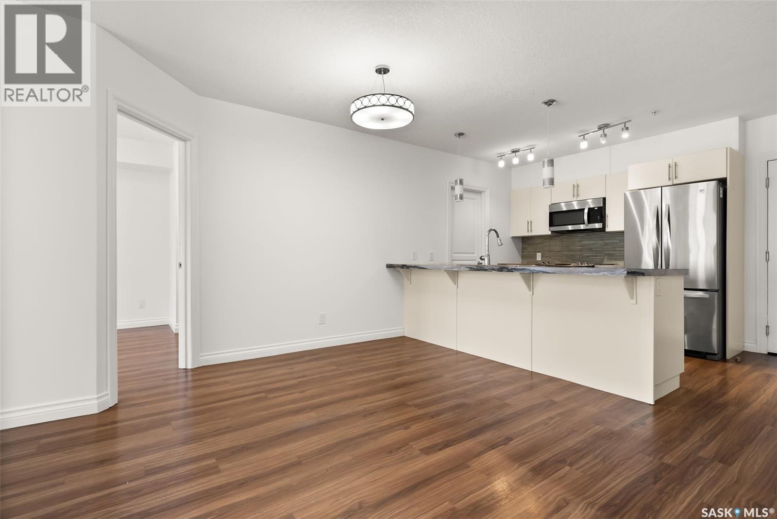$508.45 MonthlyWelcome to Fontaine Bleu, where style meets convenience in the heart of Harbour Landing. This vibrant community brings a touch of Miami flair to Regina with amenities designed for modern living—dog wash station, car wash, bike storage, fitness centre, and a stylish amenities room for gatherings. Inside, this bright, open-concept condo is instantly inviting with paint so fresh it looks brand new. The kitchen is a showstopper with sleek stainless steel appliances, an island with seating, and a walk-in pantry large enough for your small appliances—and even a deep freeze. Whether you’re hosting friends or enjoying a quiet evening in, the living and dining areas offer the perfect canvas to create your ideal space. The primary suite feels like a private retreat, featuring a walk-thru closet and a 4-piece ensuite with space for a makeup vanity. A second bedroom also boasts a walk-thru closet and private access to the main bathroom, making it perfect for guests or a home office. For added convenience, you’ll find an in-suite laundry room. Luxury vinyl plank flooring runs throughout—stylish, durable, and pet-friendly. Step out to your private patio to soak up the summer sun or nurture a garden of potted blooms. This unit also includes TWO underground parking stalls (#219 & #220)—a rare and valuable find. With Harbour Landing’s walking paths, parks, and the Grasslands shops and restaurants just steps away, you’ll love the lifestyle as much as the home itself. Condo fees cover heat, water, sewer, building insurance, maintenance, lawn care, snow removal, and reserve fund contributions, so you can enjoy peace of mind and hassle-free living. Move-in ready, pet-friendly, and packed with extras—this Fontaine Bleu condo is the perfect blend of comfort, convenience, and community. (id:44393)