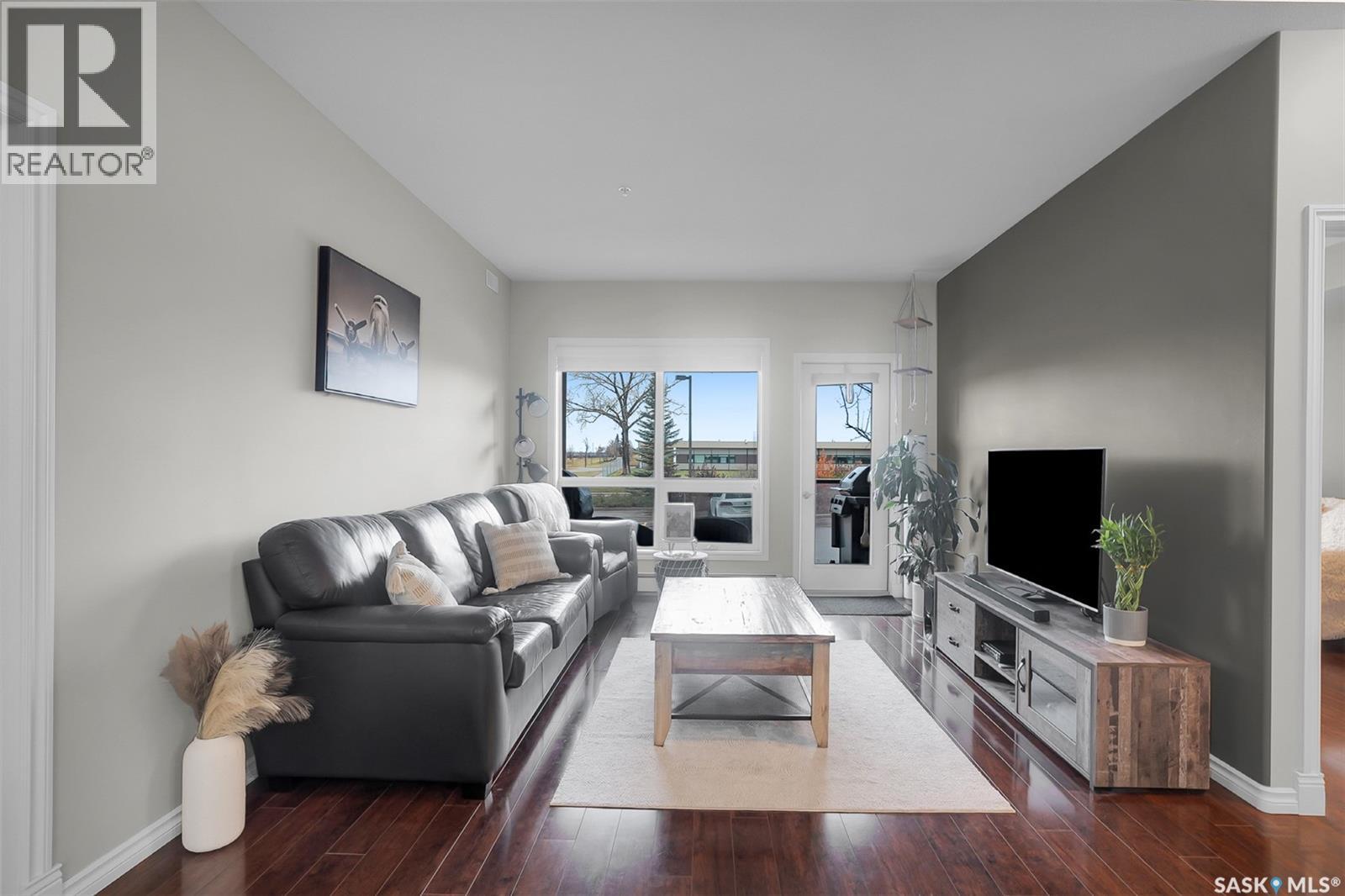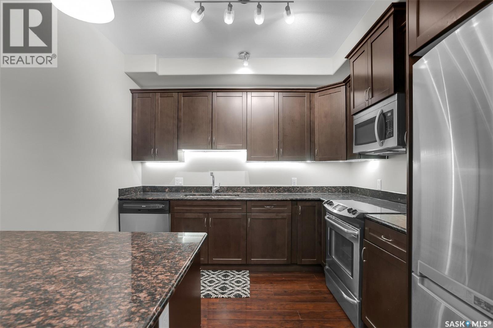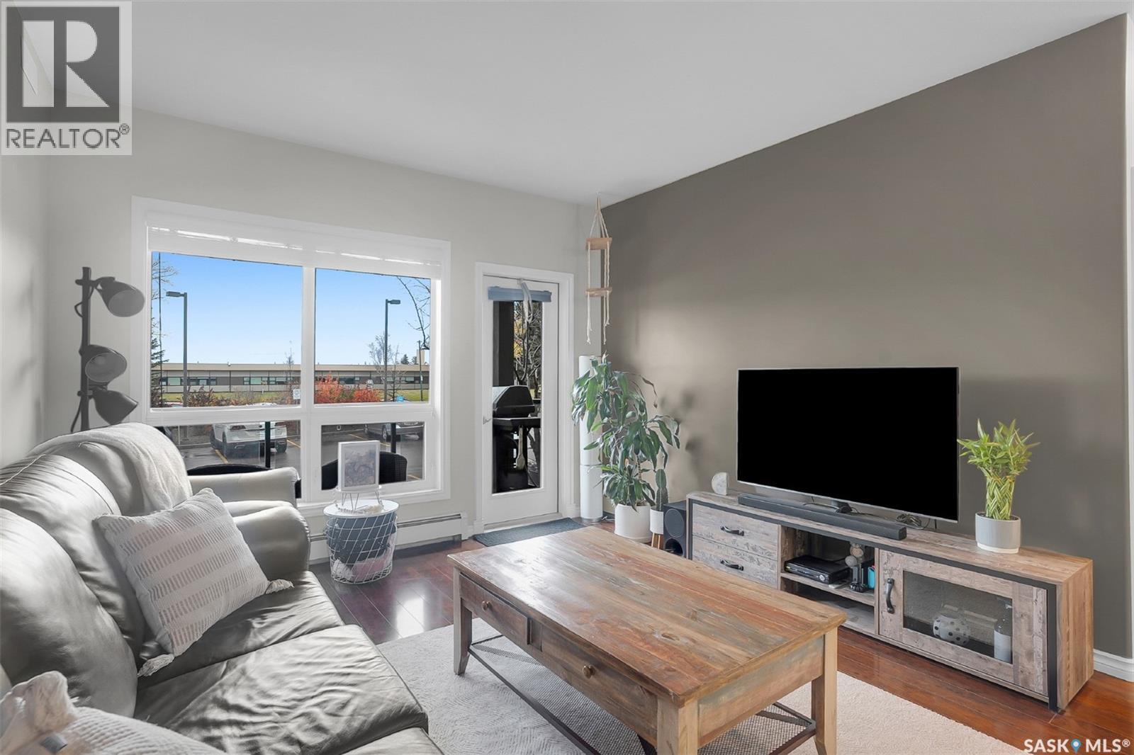 $633 MonthlyExperience comfortable, low-maintenance living in this beautifully cared-for 1,012 sqft, 2-bedroom, 2-bathroom condo located in the highly desirable Greystone Heights neighbourhood. Situated on the main floor, this home offers easy access and a welcoming open-concept layout filled with natural light. The spacious kitchen features dark maple cabinetry, granite countertops, stainless steel appliances (all included), and a large peninsula perfect for casual dining or entertaining. Rich flooring flows through the main living areas, leading to a bright living room and patio door that opens to your private outdoor space with a natural gas BBQ hookup—ideal for year-round grilling and relaxation. The primary bedroom provides comfort and privacy with a walk-in closet and 3-piece ensuite, while the second bedroom and full bathroom offer excellent space for roommates, family or guest. Additional highlights include in-suite laundry, central air conditioning, and convenient parking arrangements with heated underground parking PLUS an extra surface stall, along with a secure storage locker. Enjoy the convenience of being just minutes from the University of Saskatchewan, Greystone Heights School & park, 8th Street amenities, restaurants, bus routes, and beautiful walking paths. (id:44393)