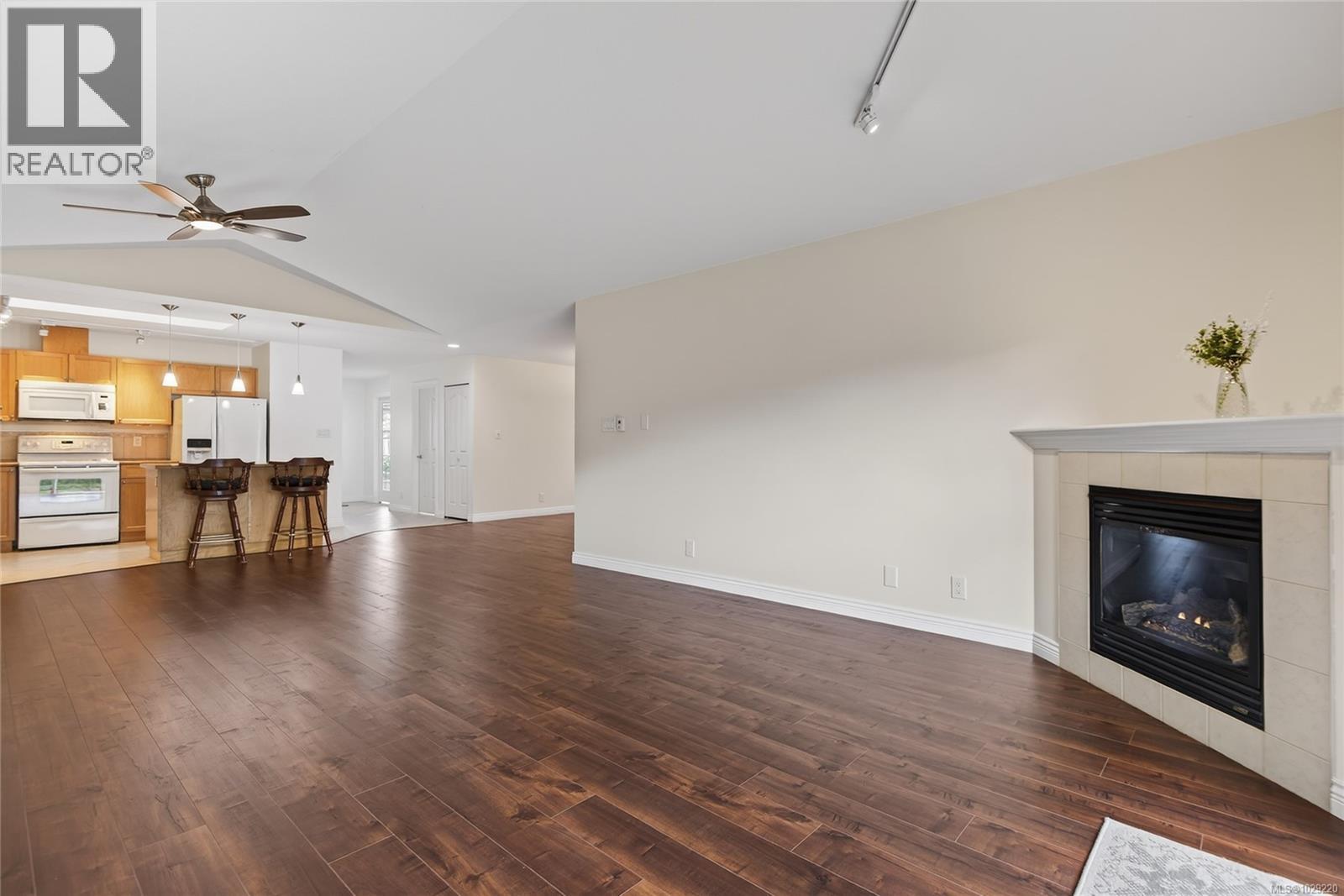 $444.49 MonthlyAffordably priced below assessed value. This 2bdrm/2bth 1371 sq/ft open concept patio home in popular Heather Glen gated community. Situated at the end of cul-de-sac with no road noise. The spacious kitchen has an island & skylight for natural light. The living room has a cozy gas fireplace. Central vac system included. Newer appliances & laminate flooring in recent years. Separate laundry room with storage. Bonus family room off the kitchen. A radiant heat floor system is the primary heat source. The large primary bedroom has a 5pc ensuite with double sinks & ample closet space. The second bedroom is perfect for guests or the office. Enjoy the private, enlarged double patio space for entertaining with a BBQ gas hook up. New roofs 2025. The single car garage has room for storage with shelving & a wall of cabinets & features a double driveway for two cars. Pet friendly. Close to all amenities including Crown Isle Golf Resort, shopping, hospital, Costco, Home Depot & Aquatic Centre. (id:44393)