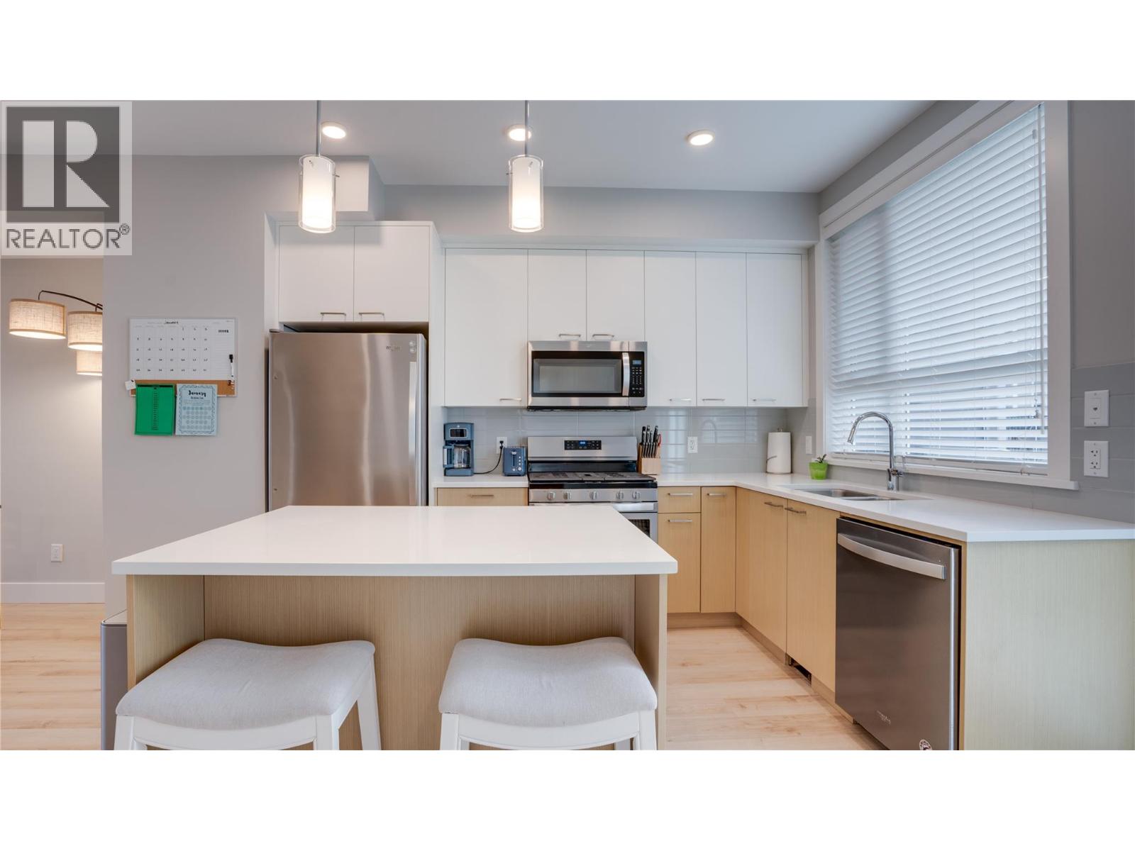 $293.93 MonthlyThis bright, stylish, and newly painted townhome is located in a vibrant family-friendly community just steps away from the Park! Featuring 2 bedrooms, a den or flex room, 2 full baths, a fenced in backyard, and a massive tandem style garage for all your toys. The open-concept main floor features a contemporary island kitchen with upgraded stainless steel appliances, quartz countertops, and durable laminate flooring. The large island is perfect for entertaining and flows seamlessly with the dining and living room. Off the kitchen you have access to the patio and fully fenced backyard - ideal for relaxing, gardening, or giving kids and pets a secure place to play. A natural gas hookup makes BBQs effortless and outdoor living even more enjoyable. Upstairs, you’ll find the perfect sized primary bedroom with a 3-piece ensuite, a generous second bedroom, a 4-piece main bath, and an office space or flex area currently being used as a 3rd bedroom. Additional highlights include efficient geothermal heating and cooling, a massive 2-car tandem garage with ample storage room, driveway parking that fits a full size truck, and low strata fees. Enjoy the park and basketball court right across the street, and take advantage of nearby sports fields, playgrounds, scenic hiking, biking trails, beaches and Turtle Bay Plaza - all just minutes away. Don’t miss out on this beautiful affordable townhome and discover why so many love living at - Apex at the Lakes! (id:44393)