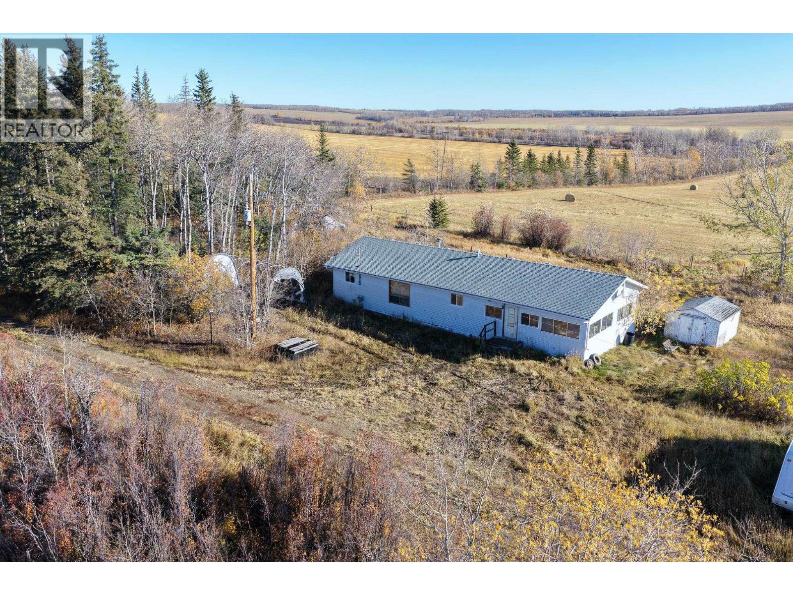 * PREC - Personal Real Estate Corporation. Welcome to this picturesque 1/4 section in Murdale, a cherished homestead for many years. This property offers a perfect mix of rolling pasture, forest, and approximately 80 acres in hay - fully fenced and cross-fenced with multiple pastures for grazing. The 3-bedroom, 1-bath home features a cozy enclosed porch, a generous mudroom, and a spacious walk-in closet. It’s ready for your creative ideas and personal touch. The property is fully serviced, with two natural springs providing a plentiful water supply and a handy 14x40 shop adding great utility. Ideal for a small ranching operation or anyone seeking space, privacy, and incredible value on 160 acres of stunning land. Property sold as is, where is. GST not included. (id:44393)