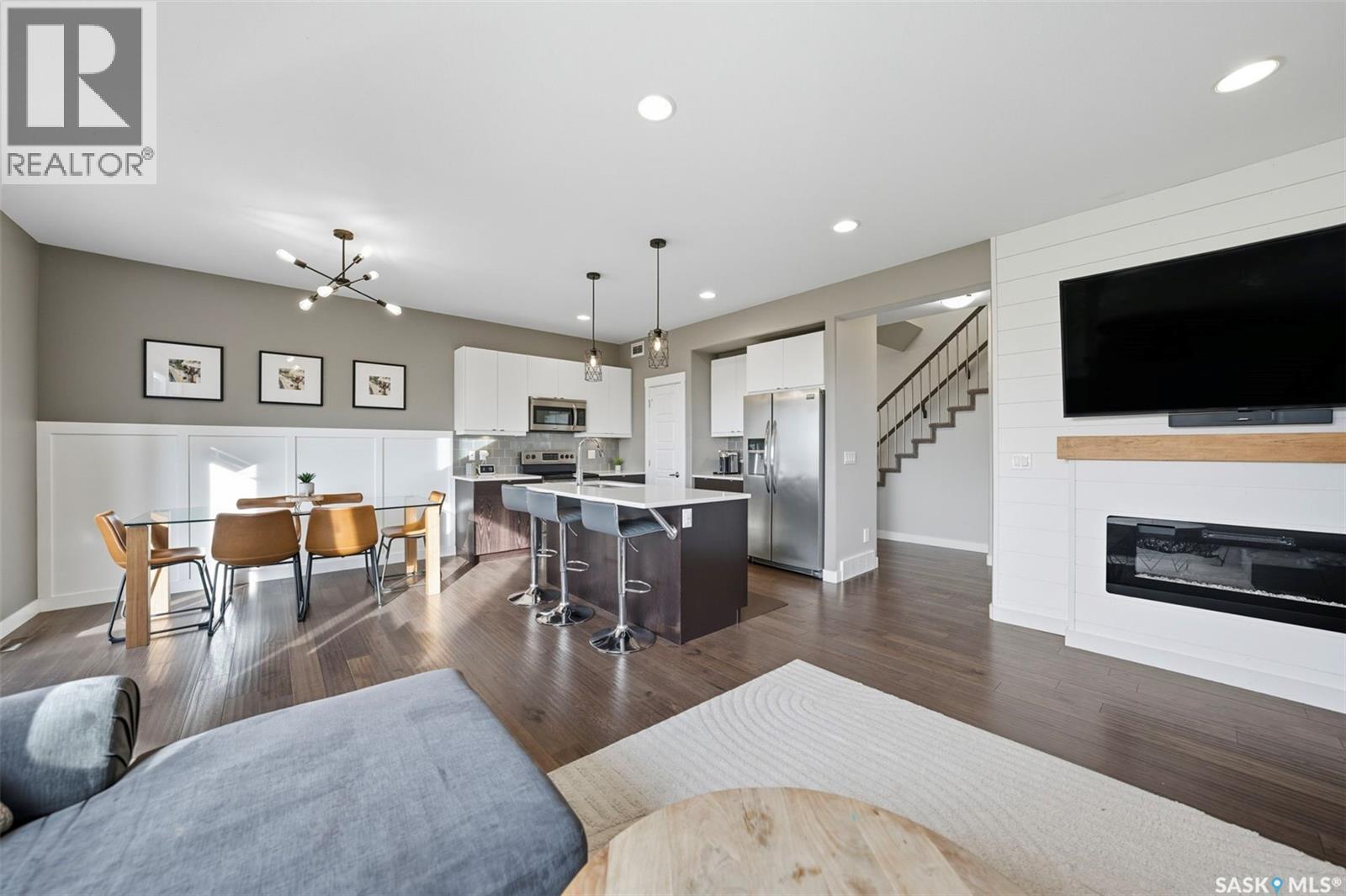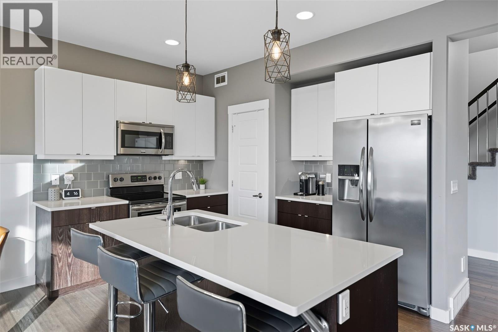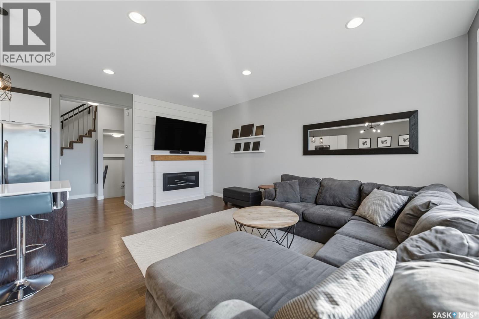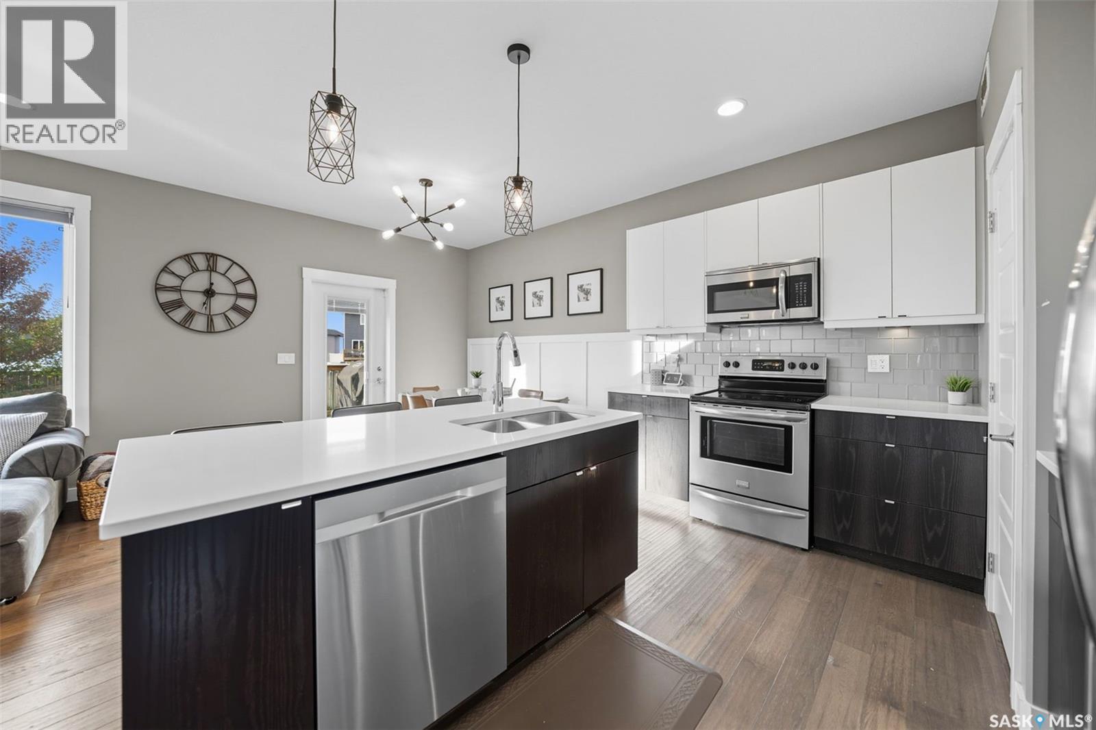 Welcome to 1319 Steeves Ave, in desirable Kensington, move-in ready, built in 2015, four bedroom, three bath, hardwood and porcelain tile floors, carpet upstairs, kitchen features island plus counters with white quartz tops, glass backsplash, large pantry, mudroom, triple glazed windows, triple concrete drive, heated garage with tandem door, west-facing yard, beautifully landscaped, fenced, with trees/shrubs, lawns front & rear, two level deck with privacy screen, outdoor gas for BBQ. Nest thermostat & doorbell, play center and large shed (1) remain. Future Kensington school planned. Broker Bay for showing. (id:44393)
