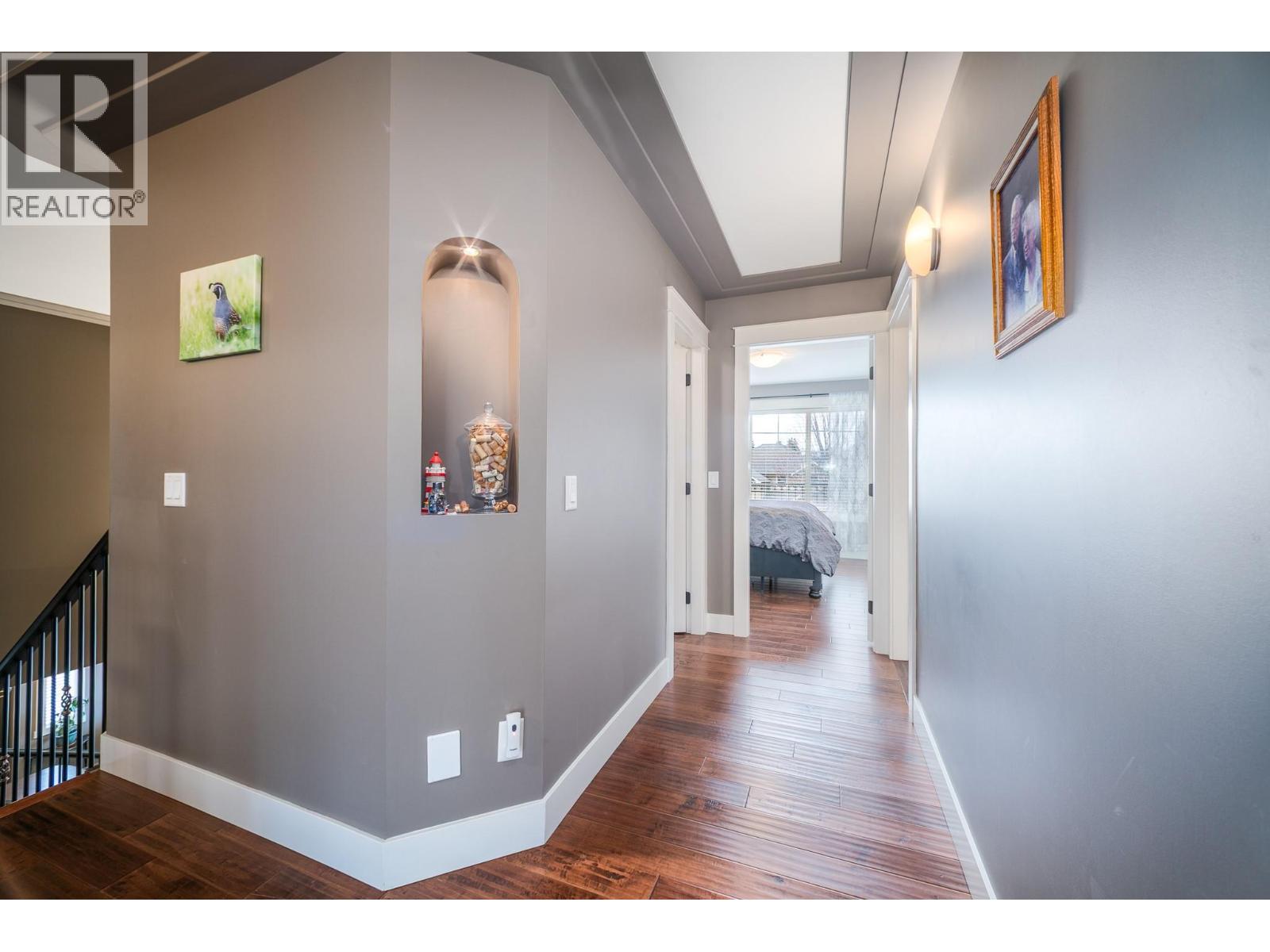 Located in a highly desirable neighborhood near an elementary school, hiking trails, and Black Mountain Golf Course, this stunning home features a grand entry with a sweeping curved staircase, soaring ceilings, and numerous upgrades throughout. The formal living and dining areas showcase a stone gas fireplace and floor-to-ceiling windows, filling the space with natural light. Featuring 7 bedrooms and 6 bathrooms, with summer kitchen on lower level, the home features a steam kitchen, main kitchen, and laundry room with heated floors, custom cabinetry to the ceiling, engineered hardwood on main and second floors, and granite in five bathrooms. Luxuries include hot water on demand, alarm system, and built-in sound in the theatre room. The primary bedroom offers double doors, a sitting area, private covered deck, large walk-in closet, and spa-like ensuite with dual sinks, separate tub and shower, and heated floors. Multiple patios, a covered verandah, large double garage with tall ceilings, and extra-wide driveway provide ample parking and storage. Just 40 minutes to Big White Ski Resort. Call to book your private viewing today! (id:44393)