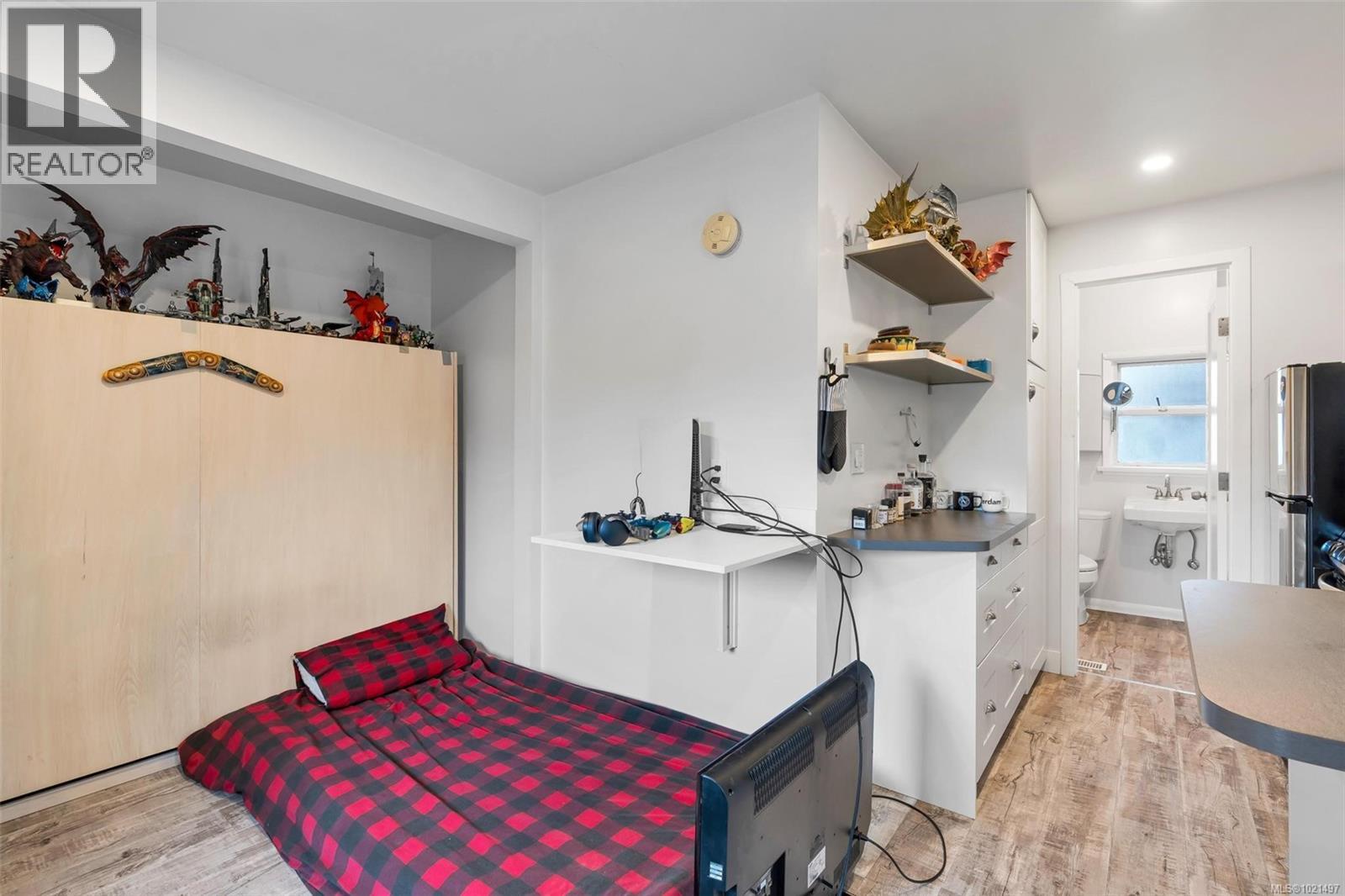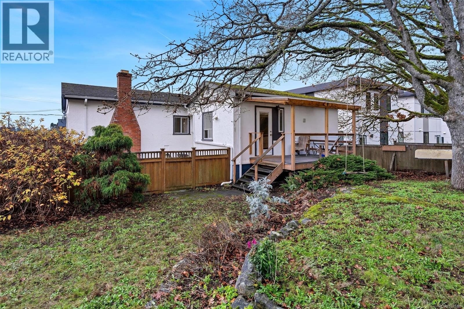 THE HOME you have been waiting for! 1334 Wood St is a super bright 2-bed, 2-bath home just a block from the ocean in beautiful and trendy Esquimalt. This 1948 charmer offers 1,111 sq ft of finished space, including an updated studio suite, plus 909 sq ft of unfinished potential in the basement. Original wood floors, coved ceilings, and a wood-burning fireplace create a warm, classic feel. South and east windows fill the living and dining areas with natural light. The kitchen features generous storage, floor-to-ceiling pantry, ample counters and a peninsula open to the eating area. Bedrooms are privately tucked away with a spacious 4-piece bath between them. South exposed fully fenced yard as well! The studio suite enjoys its own yard and strong rental history. Secure future potential development as well, as the home is set on two legal lots and is surrounded by new homes. This property is an excellent starter or investment opportunity, and really is the perfect balance of both! (id:44393)