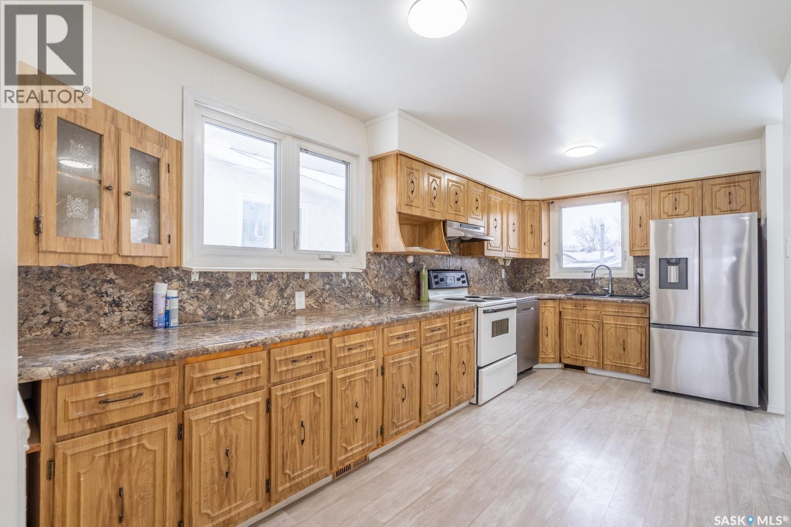 Welcome to this well-maintained 4-bedroom, 2-bathroom bungalow located on a quiet street in Regina’s desirable east end – Glencairn. This home offers a great blend of comfort, updates, and functionality. Step inside to a bright, west-facing living room that fills with natural light. The spacious kitchen offers ample cabinetry, perfect for family meals and entertaining. Three well-sized bedrooms and a refreshed 4-piece bathroom complete the main floor, which also features updated laminate flooring throughout most of the level. The solid and inviting basement includes a large rec room, a fourth bedroom, a 3-piece bathroom, and a dedicated furnace/storage area. New carpet adds comfort and warmth to the lower level. Recent updates include: fresh paint, Laminate flooring on most of the main floor, renovated main-floor bathroom, newer carpet in the basement, updated windows throughout the main floor, a new back deck, and a fully fenced yard that is perfect for kids, pets, or summer gatherings, with a double detached garage with convenient access from the rear alley. Situated just minutes from East End amenities and with quick access to Ring Road, this home is ideal for families or anyone seeking a move-in-ready property in a well-established neighbourhood. (id:44393)