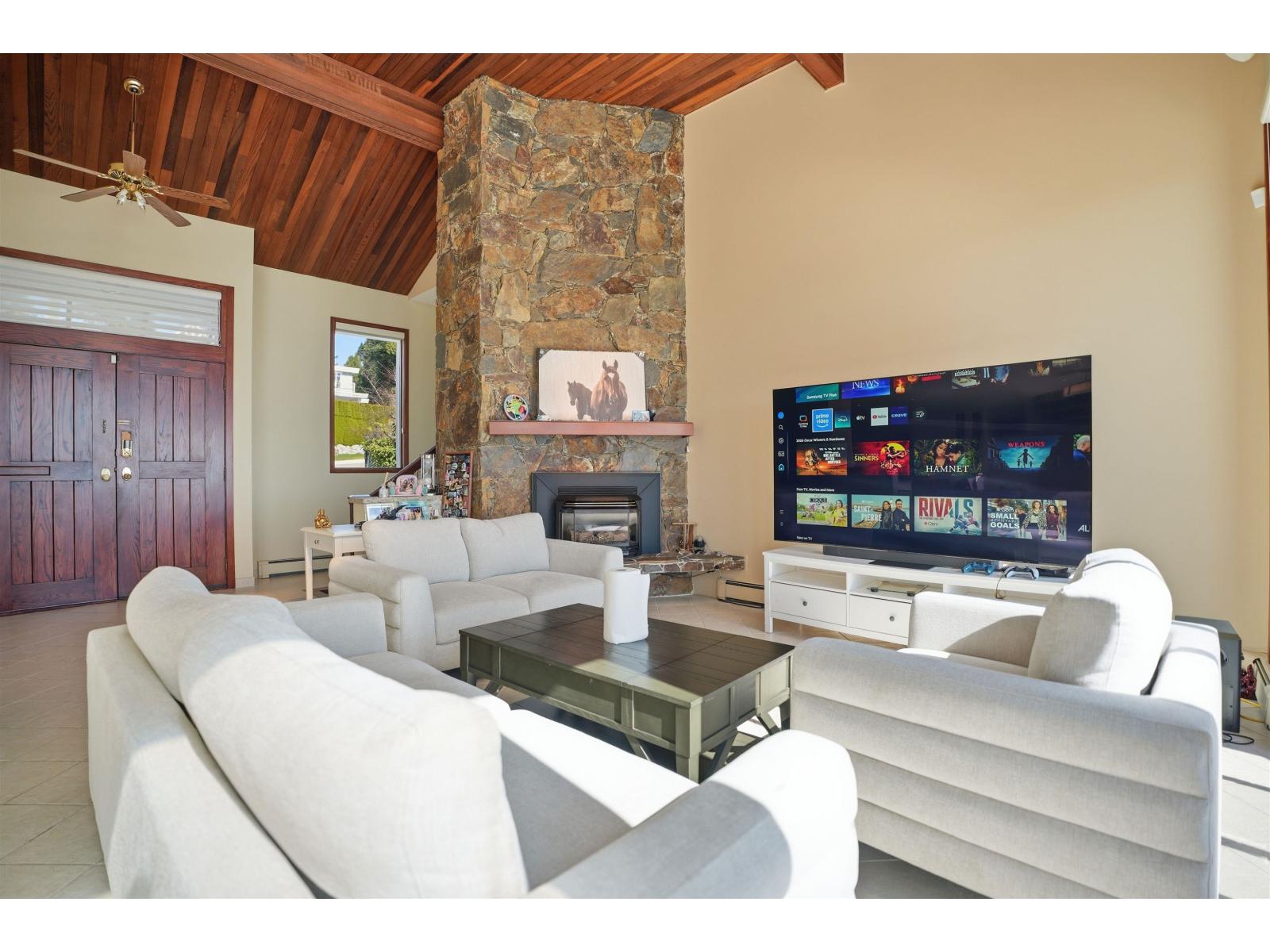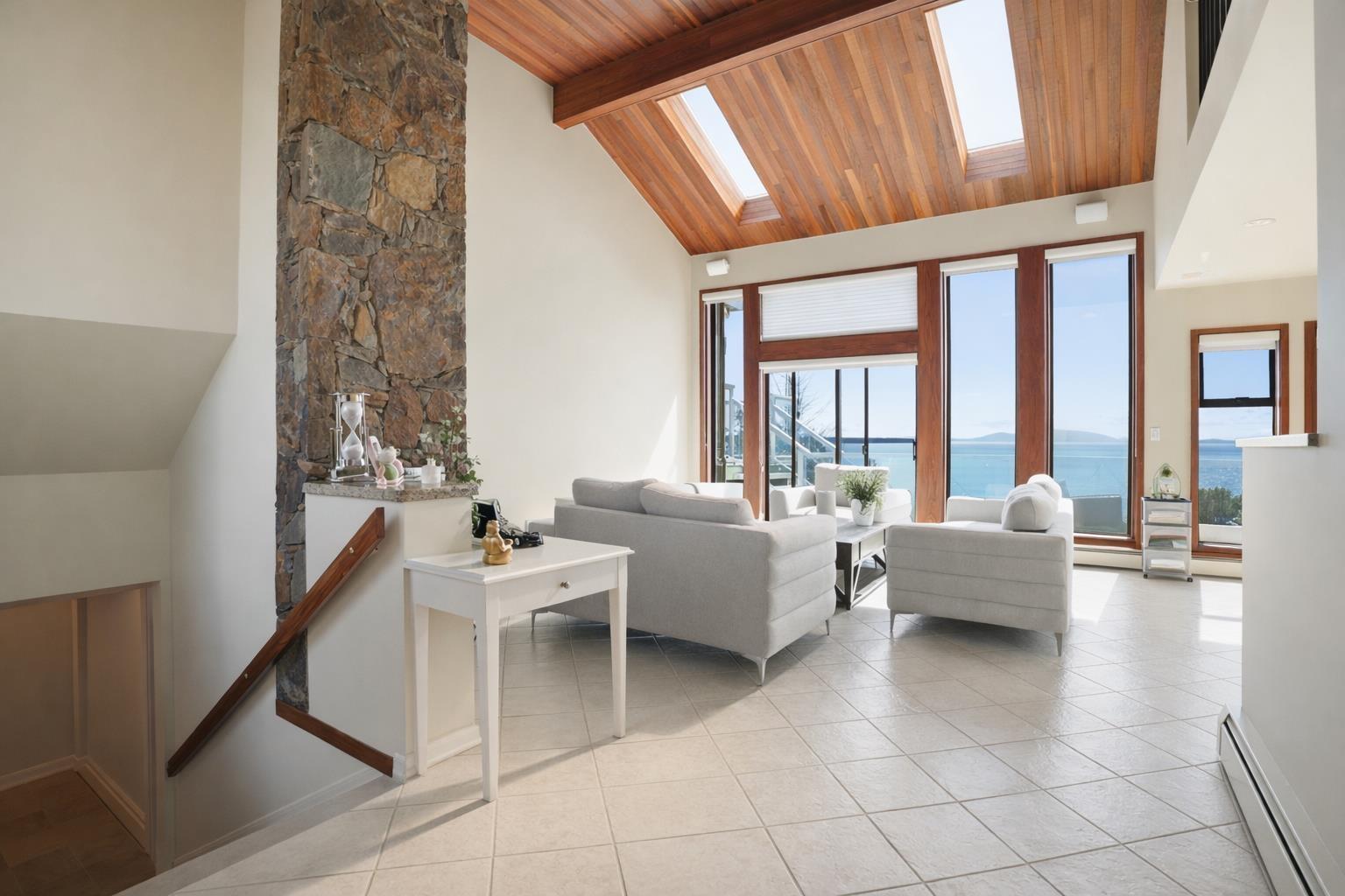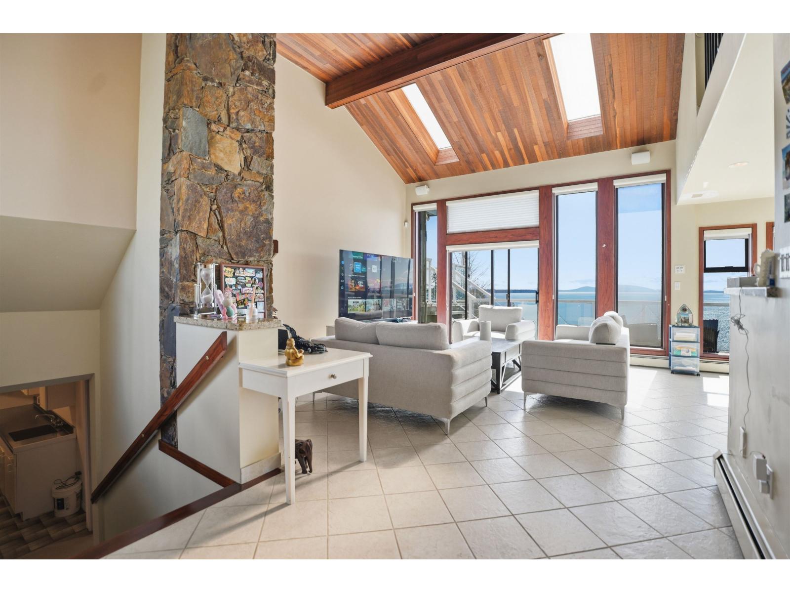 A TRULY breathtaking half-acre oceanfront estate tucked away on a quiet street with direct beach access, offering an unparalleled coastal lifestyle. This is more than a home, it is a rare opportunity to own your own piece of paradise, a front-row seat to nature's greatest show, forever. The 3,000+ sq ft residence is thoughtfully designed to maximize light, space, and views, featuring soaring vaulted ceilings, a dramatic floor-to-ceiling stone fireplace, premium Vitrum windows, radiant heated floors, and over 1,200 sq ft of expansive decks capturing uninterrupted panoramic ocean views.The layout offers exceptional flexibility with two ocean-view primary bedrooms with ensuites, along with a spacious 1,290 sq ft walk-out basement complete with a summer kitchen, ideal for extended family. Located just steps from Ocean Park Village, and within catchment of top-rated schools including Ray Shepherd Elementary and École Elgin Park Secondary, and parks.A truly one-of-a-kind legacy property, something you can pass down. (id:44393)