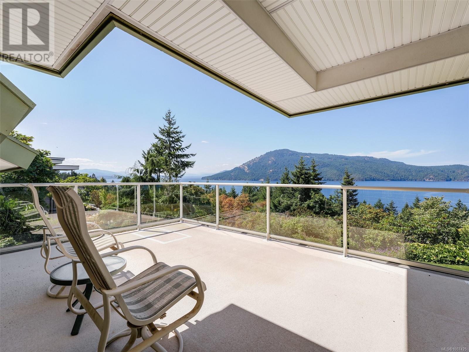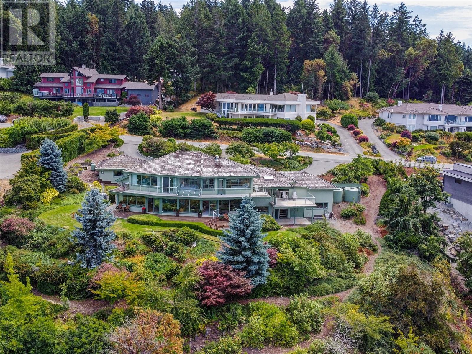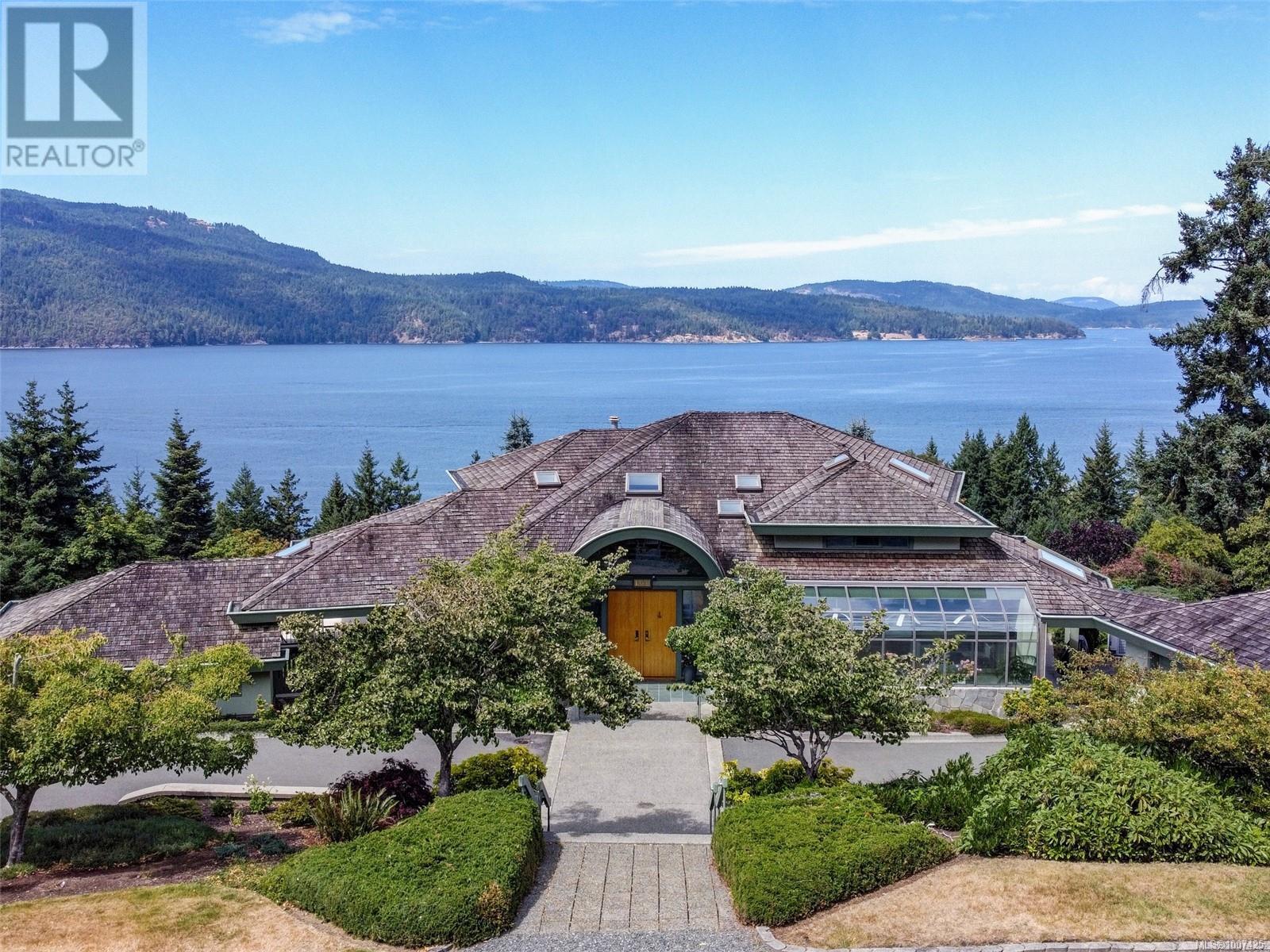 Perched on a beautifully landscaped and partially natural one-acre lot, this custom Care Award-winning home offers sweeping panoramic views of the Gulf Islands and beyond. Lovingly maintained by its original owner, the home is designed for effortless entertaining with spacious, light-filled interiors and seamless indoor-outdoor flow. Expansive windows frame ever-changing coastal vistas, while generous living areas open to multiple decks and patios. The large primary suite is a private retreat with a massive walk-in closet and an impressive ensuite. Outdoors, enjoy a greenhouse for gardening, a separate two-car garage, and a workshop with overheight ceilings—ideal for hobbyists or serious projects. A rare blend of architectural quality, privacy, and West Coast lifestyle. (id:44393)