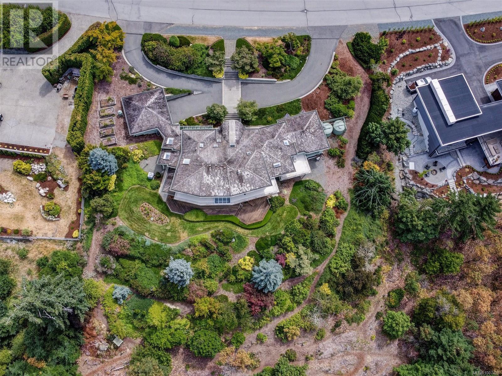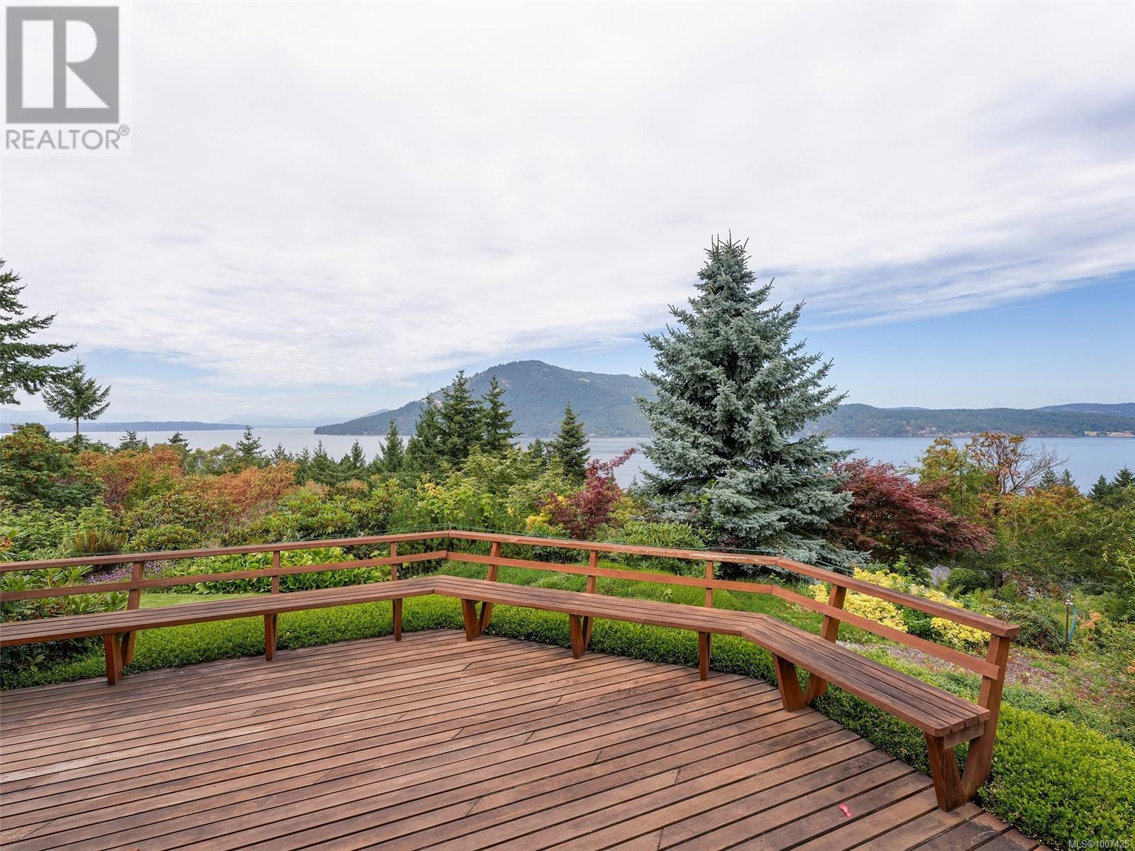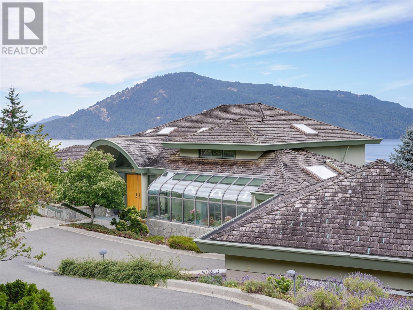 Perched on a beautifully landscaped and partially natural one-acre lot, this custom Care Award-winning home offers sweeping panoramic views of the Gulf Islands and beyond. Lovingly maintained by its original owner, the home is designed for effortless entertaining with spacious, light-filled interiors and seamless indoor-outdoor flow. Expansive windows frame ever-changing coastal vistas, while generous living areas open to multiple decks and patios. The large primary suite is a private retreat with a massive walk-in closet and an impressive ensuite. Outdoors, enjoy a greenhouse for gardening, a separate two-car garage, and a workshop with overheight ceilings—ideal for hobbyists or serious projects. A rare blend of architectural quality, privacy, and West Coast lifestyle. (id:44393)