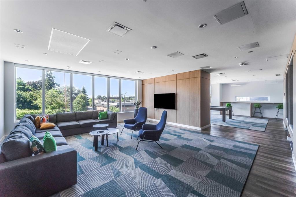 Welcome to King George Hub2 by PCI. This bright, south-facing 1-bedroom home boasts an efficient layout with floor-to-ceiling windows and a spacious private balcony. The open kitchen features quartz countertops, stainless steel, and integrated appliances. Building amenities include a rooftop lounge, a large fitness center, a party and games room, an outdoor BBQ area, a children's play area, and a theatre room. Enjoy unparalleled accessibility with King George Skytrain, Central City Mall, SFU Surrey Campus, Save-On-Foods, and a variety of dining and shopping options just steps away. Unit is Vacant, please schedule your appointment for viewing. Unit information: -493 sqft with air conditioning -1 Bedroom -1 Bathroom -1 parking Building Amenities: -Exercise Room -Lounge -Bike room -Courty (id:44393)