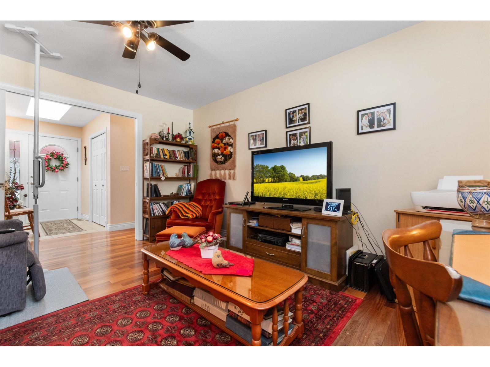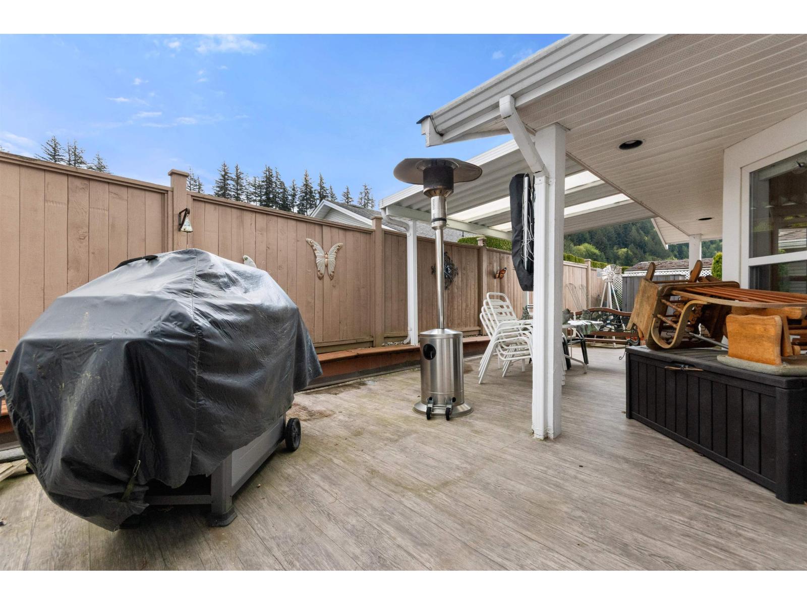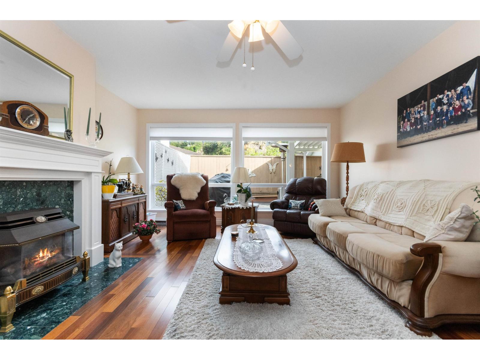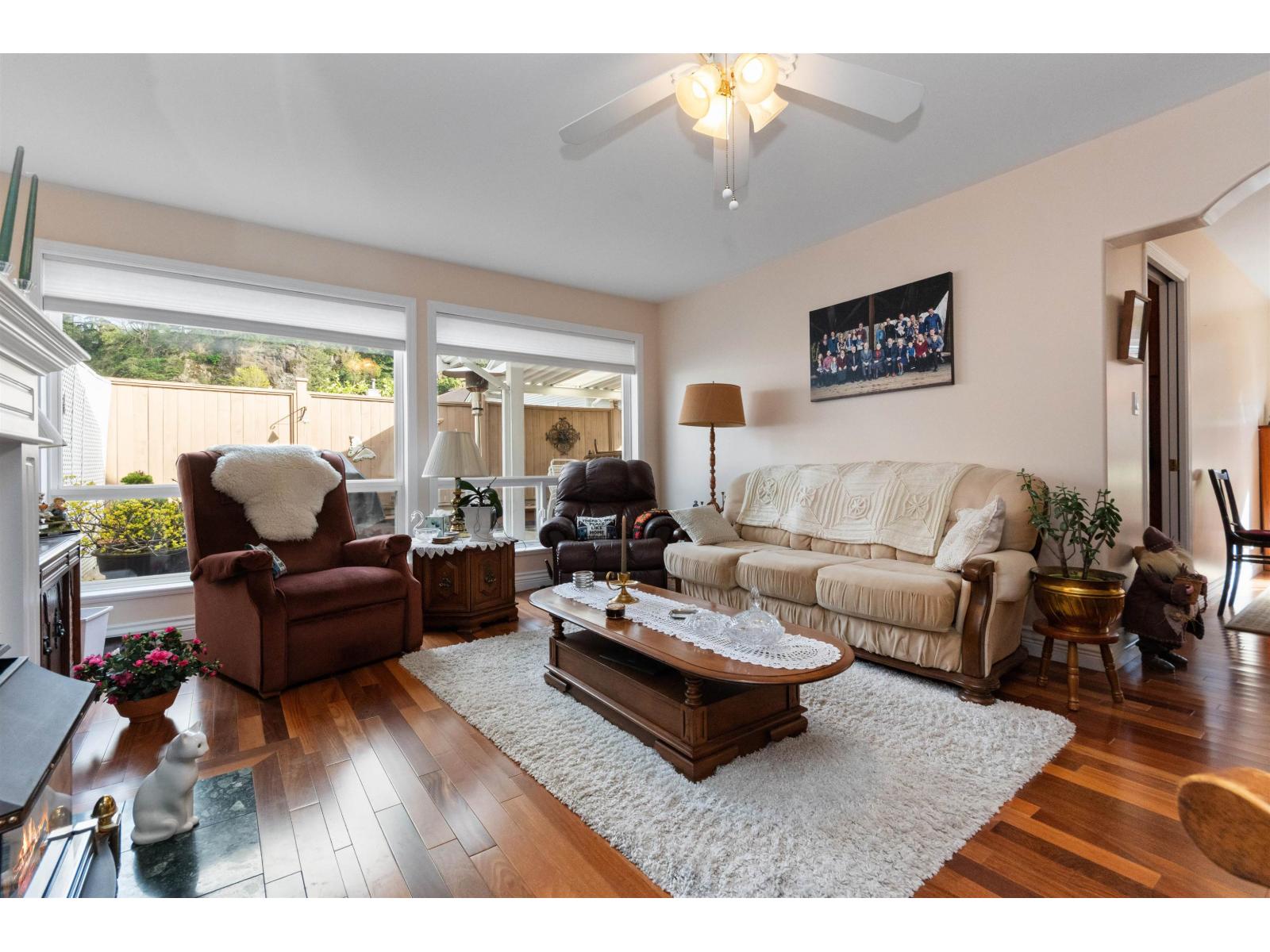 Welcome to Promontory Lake Estates! Beautifully kept 2 bed + den rancher in gated Sardis community. Plenty of thoughtful updates including A/C, Brazilian teak hardwood floors throughout, under-cabinet lighting, SS appliances. Bright living room w/ natural gas fireplace. Step out of the kitchen to your private backyard w/ large covered patio and raised garden beds. Inside find a spacious primary suite w/ WIC and separate soaker tub & shower. Enjoy the convenience of a built in vaccuum, double garage, and crawl space for extra storage. Roof and furnace only about 12 yrs old. 45+ gated community in a fantastic central location with quick access to shopping, grocery, restaurants, Vedder River, and Cultus Lake! Complex includes a large clubhouse and pond with walking path. Don't miss out! (id:44393)