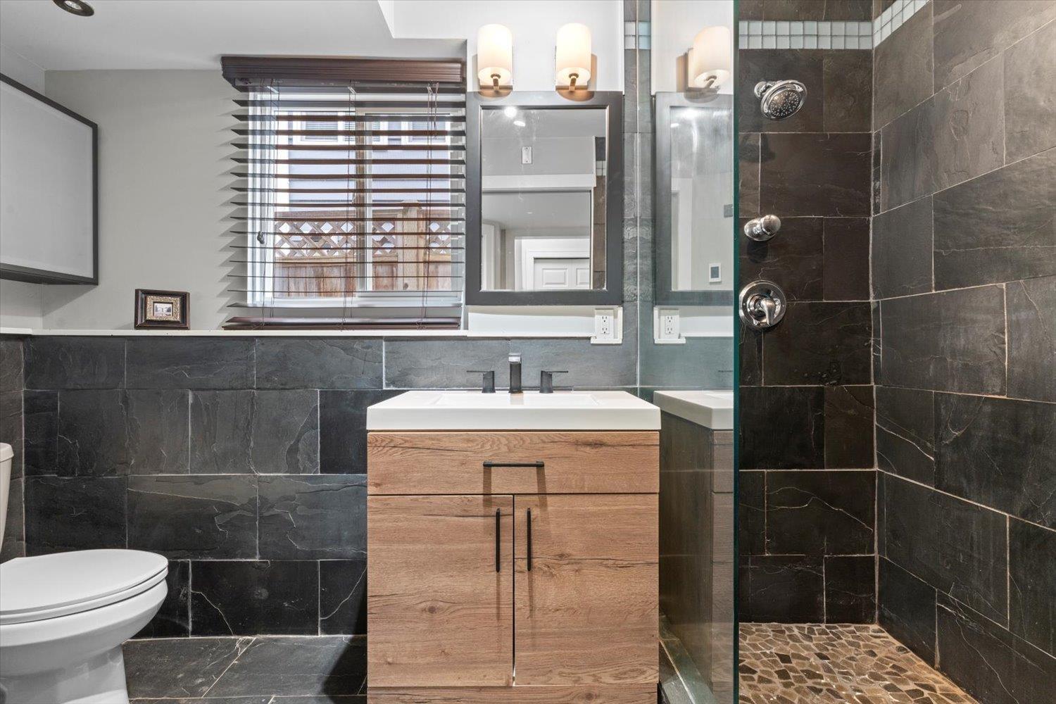 Steps to the shore in White Rock! This charming corner-lot home offers a relaxed beachside lifestyle with an easy walk to the ocean and local shops. Inside, enjoy an open-concept main floor with bright SW exposure, two bedrooms, a spa-inspired bath with NuHeat floors, and a sun-drenched kitchen. Downstairs, the spacious primary retreat features a cozy fireplace, huge walk-in closet, and full ensuite. Outside, enjoy private, fully fenced yards, multiple decks, hot tub hookups, and the rare bonus of extra parking. This home feels tucked away while still close to everything. Quality upgrades include hot water on demand, thermal vinyl windows, 240V power, and a high-efficiency furnace. School catchments: Ray Shepherd & Elgin Park. (id:44393)
