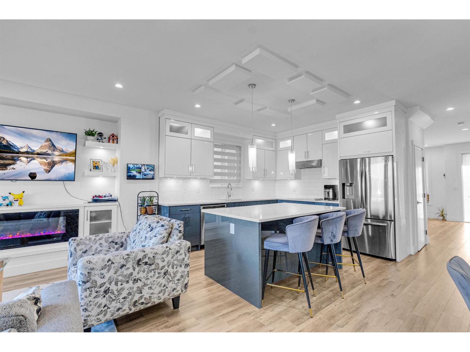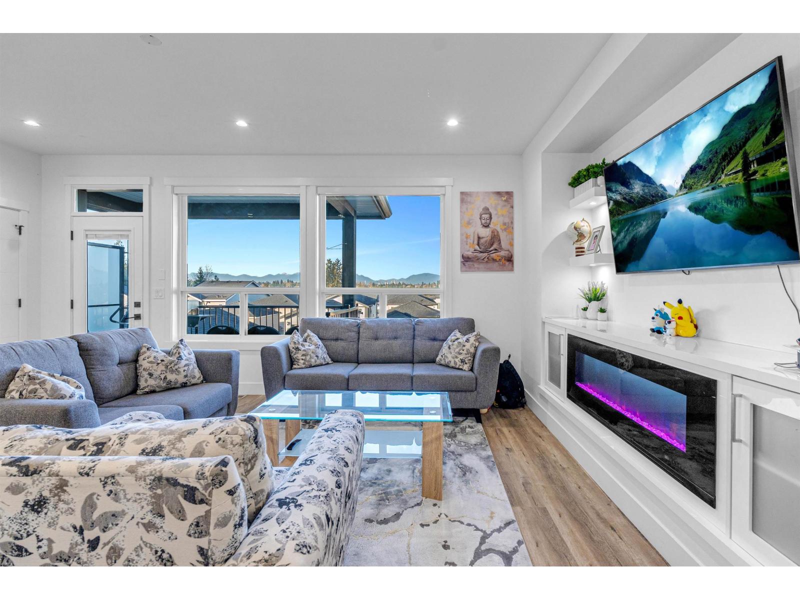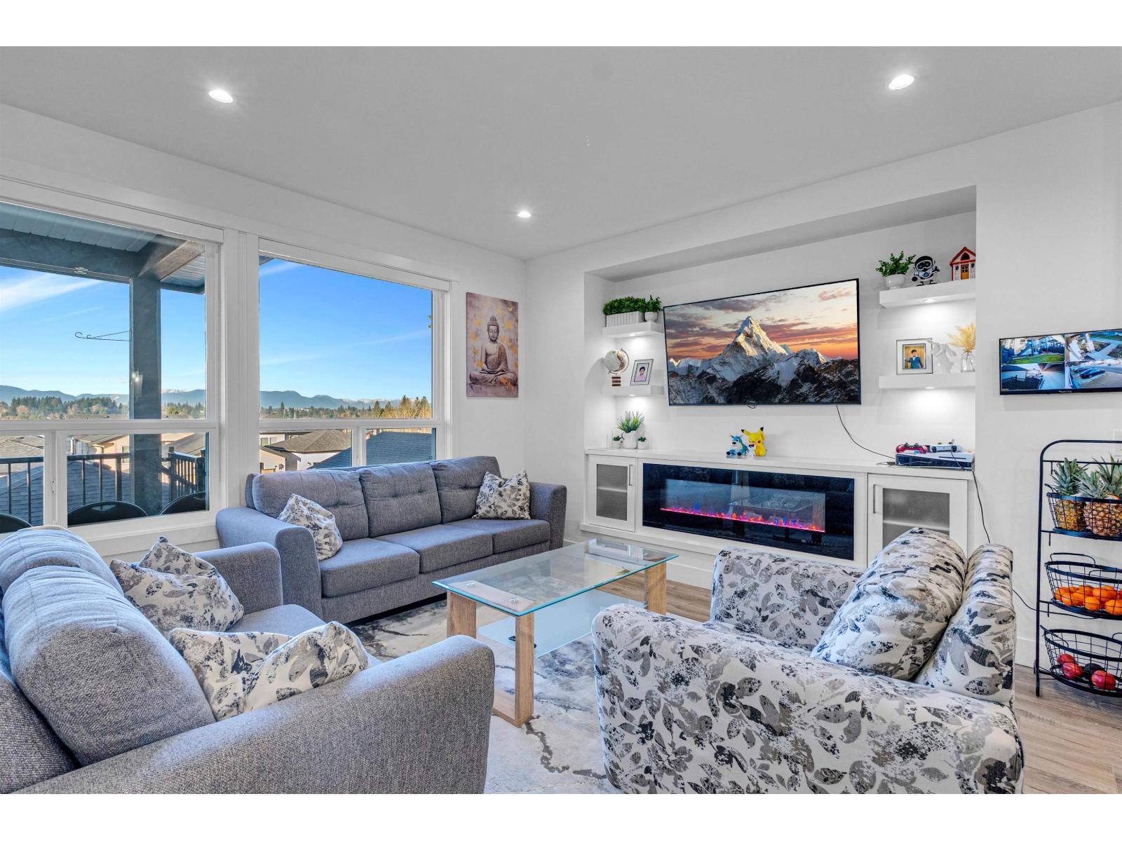 Welcome to this modern 5 bedroom, 5 bathroom home with a flex room in desirable Sullivan Station. This bright 3-level home features an open-concept layout with high-end finishes and stunning North Shore mountain views from every floor. Walking distance to all levels of school. Chef's kitchen with stainless steel appliances, gas range, and separate spice/prep kitchen. BBQ hookup for outdoor entertaining. Upper level offers two primary bedrooms with walk-in closets and ensuites, plus a third bedroom with ensuite and laundry. Back lane access, ample parking, fenced yard, high quality security cameras and roughed in for central vacuum. 2 SUITES (2 + bachelor) with separate entries -ideal for rental income or multi-generational living. (id:44393)