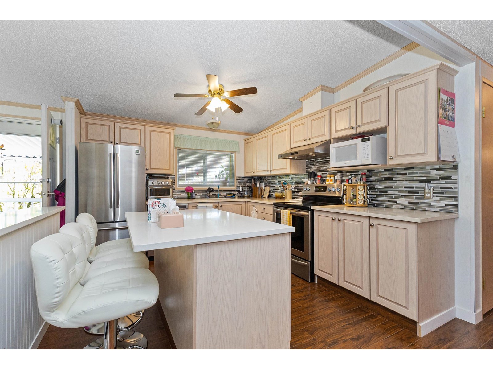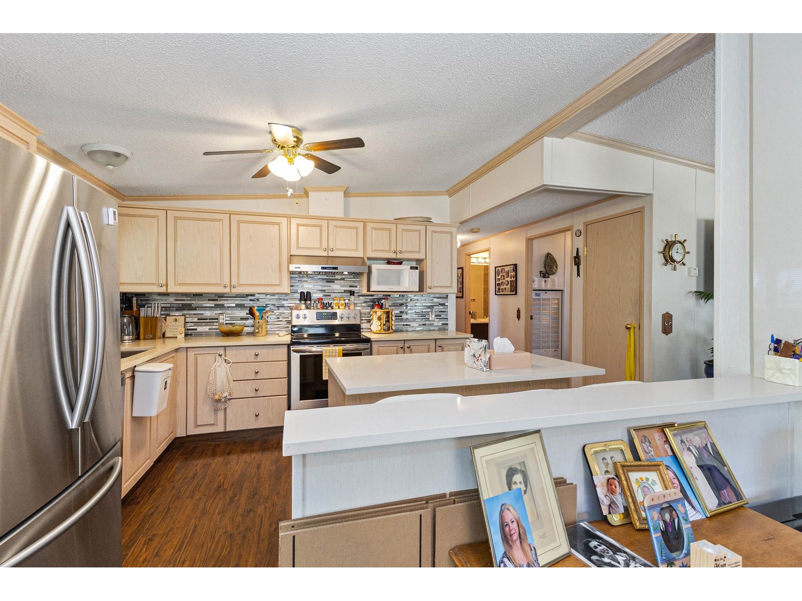 Welcome to Maplewood Estates Mobile Park! This 55+ complex is a great place to retire and downsize into if condo living isn't appealing. Many updates to this home over the last 10 years and the pride of ownership shows. Roof shingles were replaced in 2016, appliances and counter tops were also replaced in 2016. Main bathroom was renovated in 2016 and a new deck and side stairs in 2018. Last year the wall between the kitchen and living room was removed and a new kitchen island installed to give a wonderful open concept feel. Too many other updates to mention. Best location in the complex, right up front so you don't have to drive all through the park to go home and a quick walk out. One Small dog or cat is allowed under 12". Not many double wides become available, call now. (id:44393)