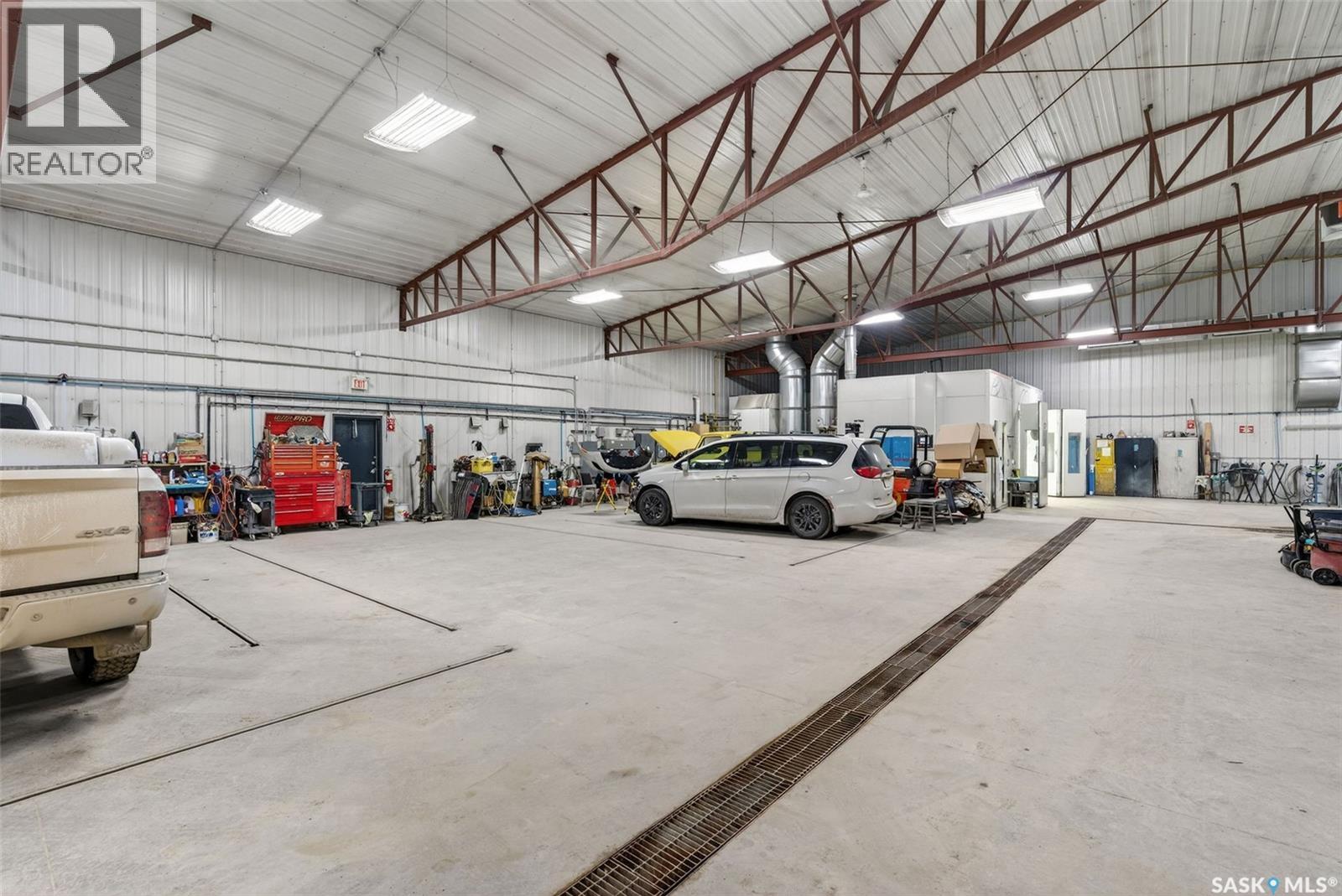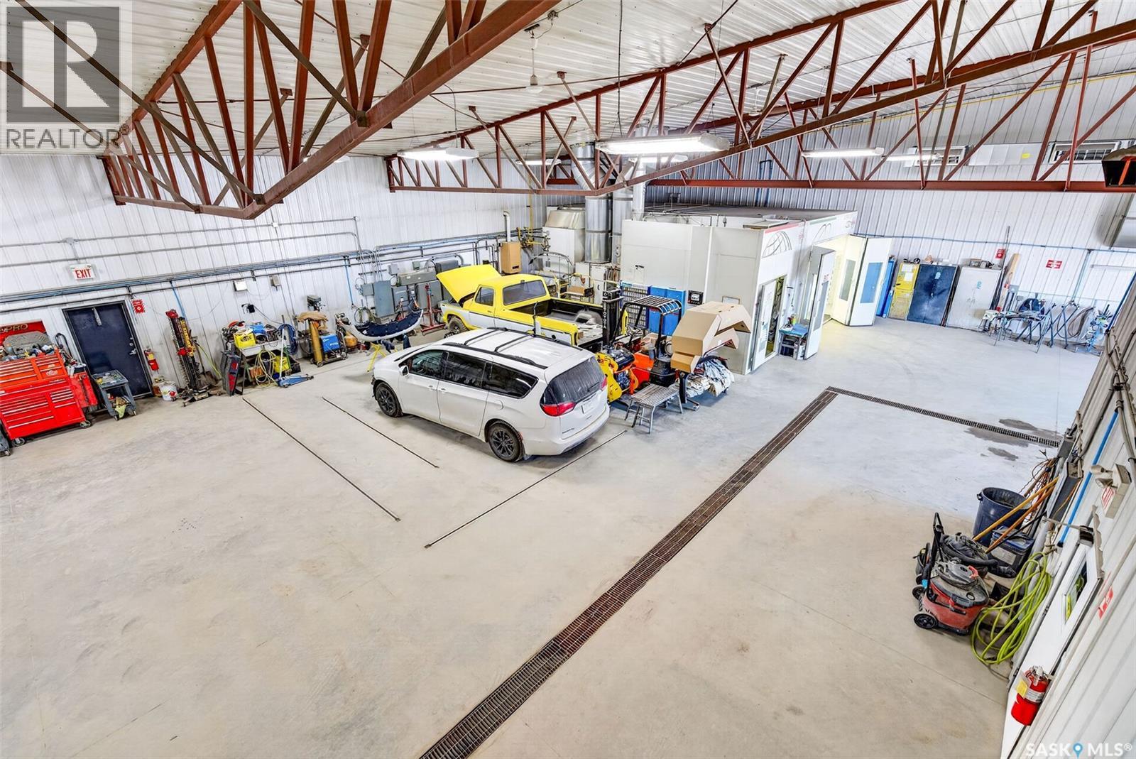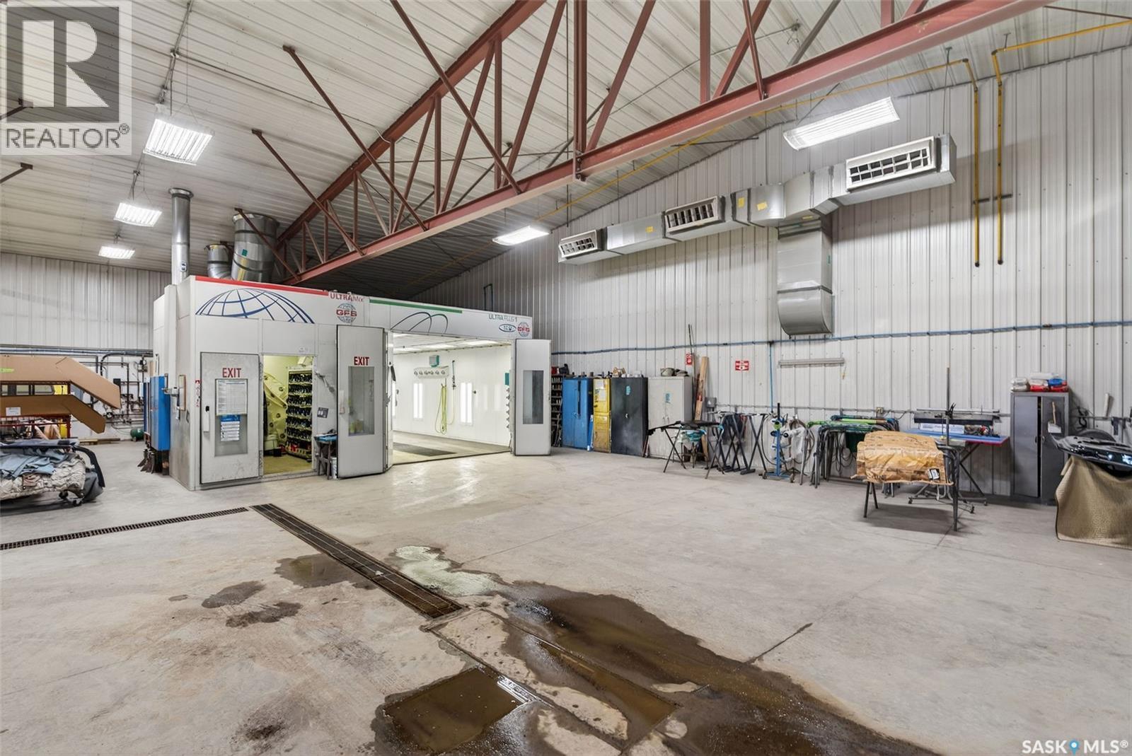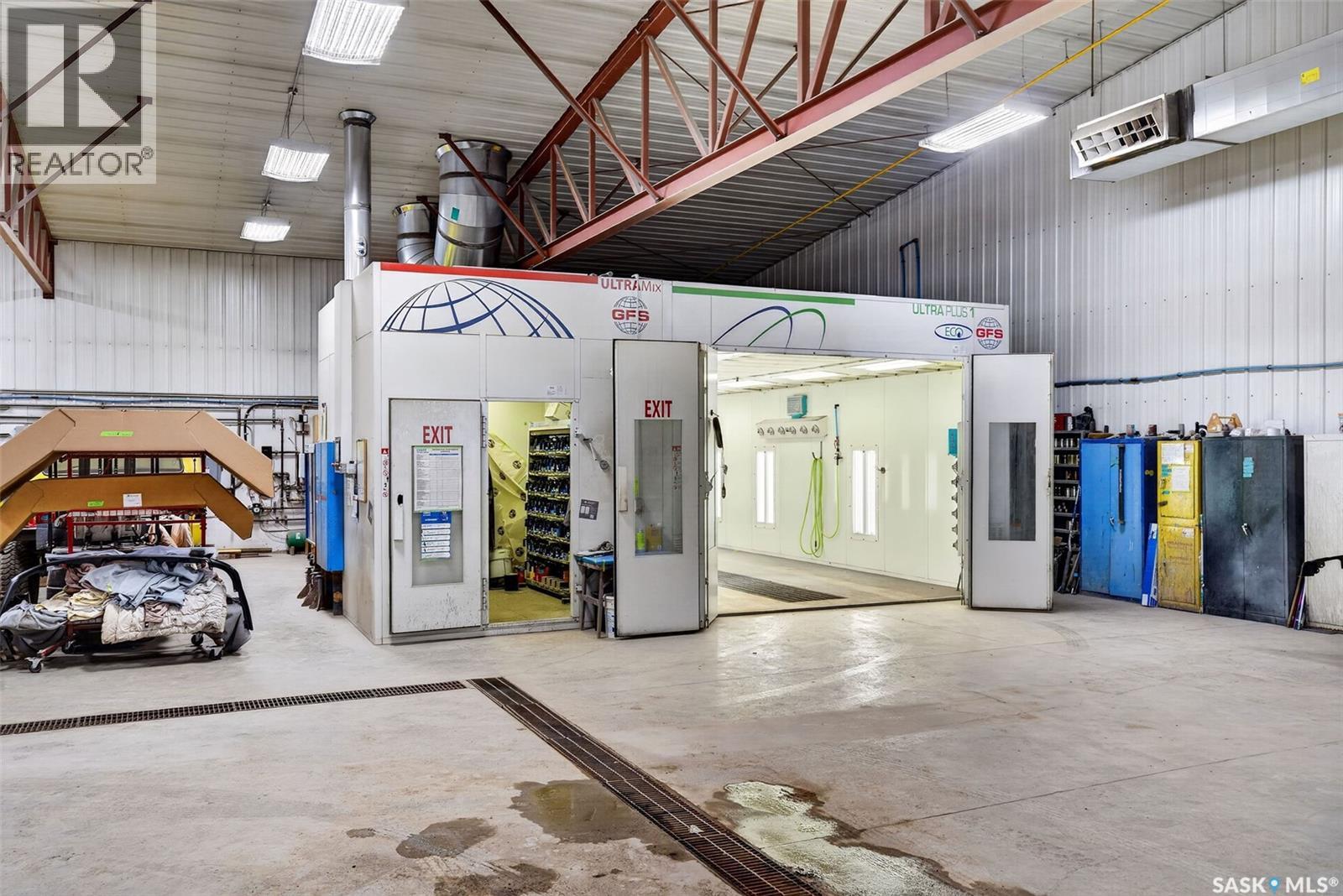 “Check out the Video and Photos of this Modern 7,000 Sq. Ft. Auto Body Facility (Built 2014) with Three-Phase Power & Paint Booth Included.” Turnkey opportunity to own a well-established and highly respected business—"Lanigan Auto Palace", a father-and-son operated auto body repair shop proudly serving the community for over 40 years. This modern, state-of-the-art facility was constructed in 2014 and offers approximately 7,000 sq. ft. (100’ x 70’) of steel-frame construction designed for efficiency and long-term durability. The building features in-floor heat, three-phase power, two 12-ft overhead doors, plus an additional overhead receiving door for smooth workflow and vehicle movement. Inside, you’ll find a professional reception area, multiple offices, and a dedicated staff/lunch room, providing a comfortable and functional workspace. The shop is fully equipped and includes a Global Finishing Solutions Ultra Plus Paint Booth, making this a true turnkey operation for continued success. A 20’ x 60’ mezzanine adds valuable storage space, while the wash bay connected to town sewer enhances daily operations and efficiency. The property sits on approximately 1 acre of land with 250 feet of frontage, offering excellent accessibility and room for expansion or additional uses. Additional outbuildings provide further storage, including the original shop building and a detached garage, giving flexibility for parts storage, overflow work, or rental potential. A Clean Phase 2 Environmental Report is available, offering peace of mind to buyers. Sellers are open to multiple options and would consider selling the building only, creating an excellent opportunity for investors or operators looking to establish or expand their automotive or light industrial business in the growing community of Lanigan. Call today for more information! (id:44393)