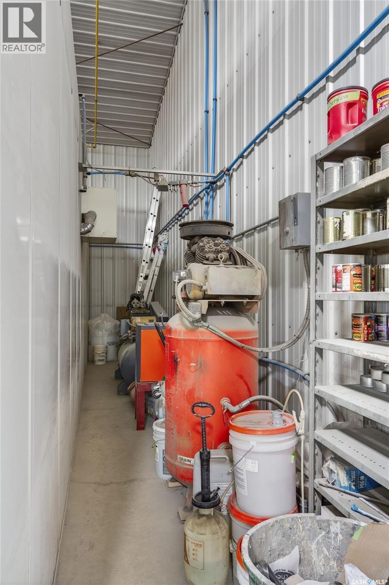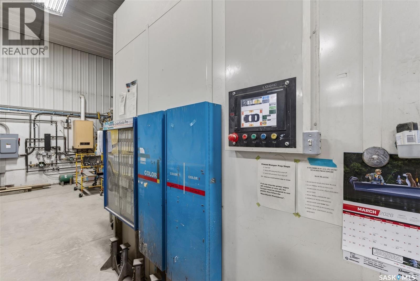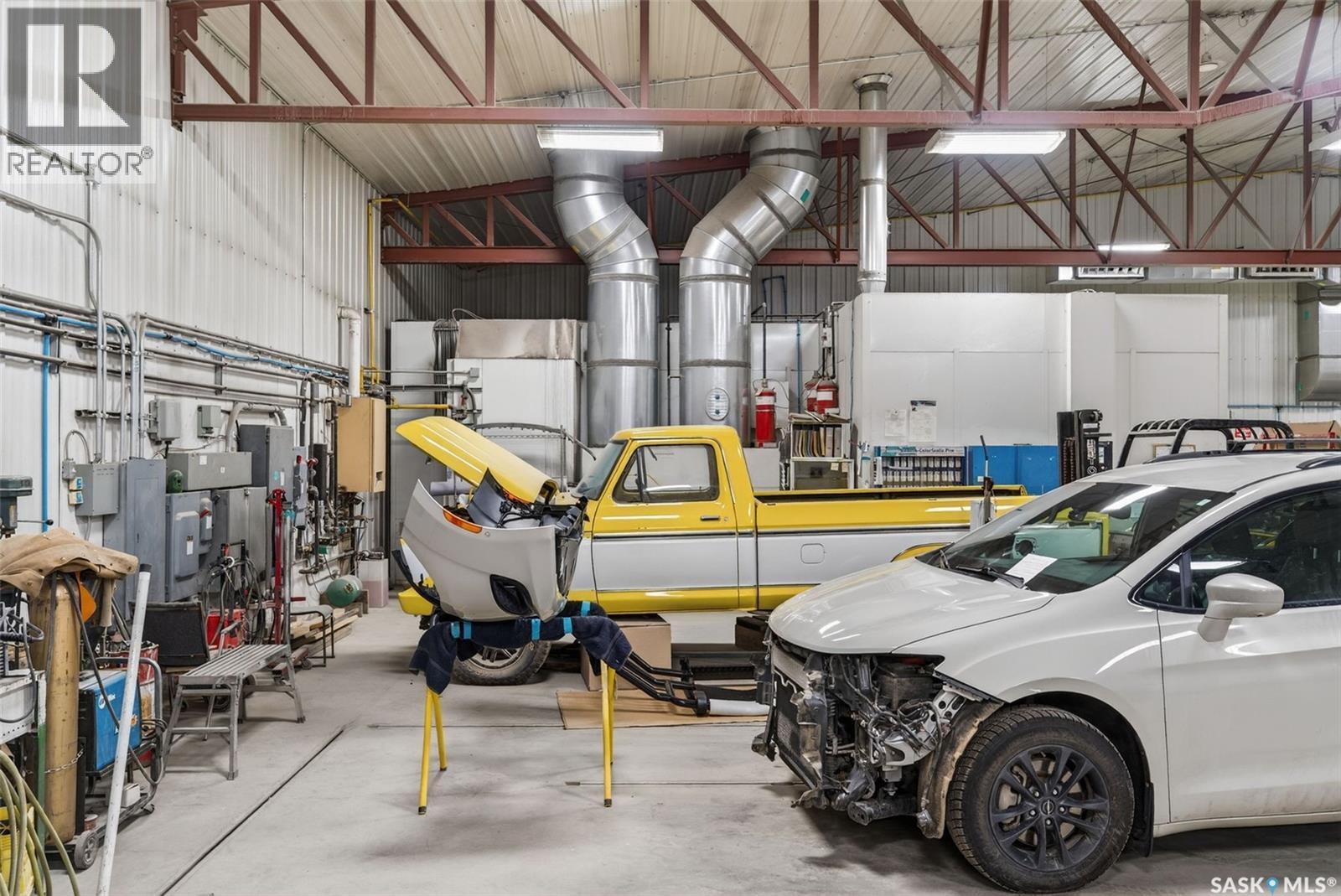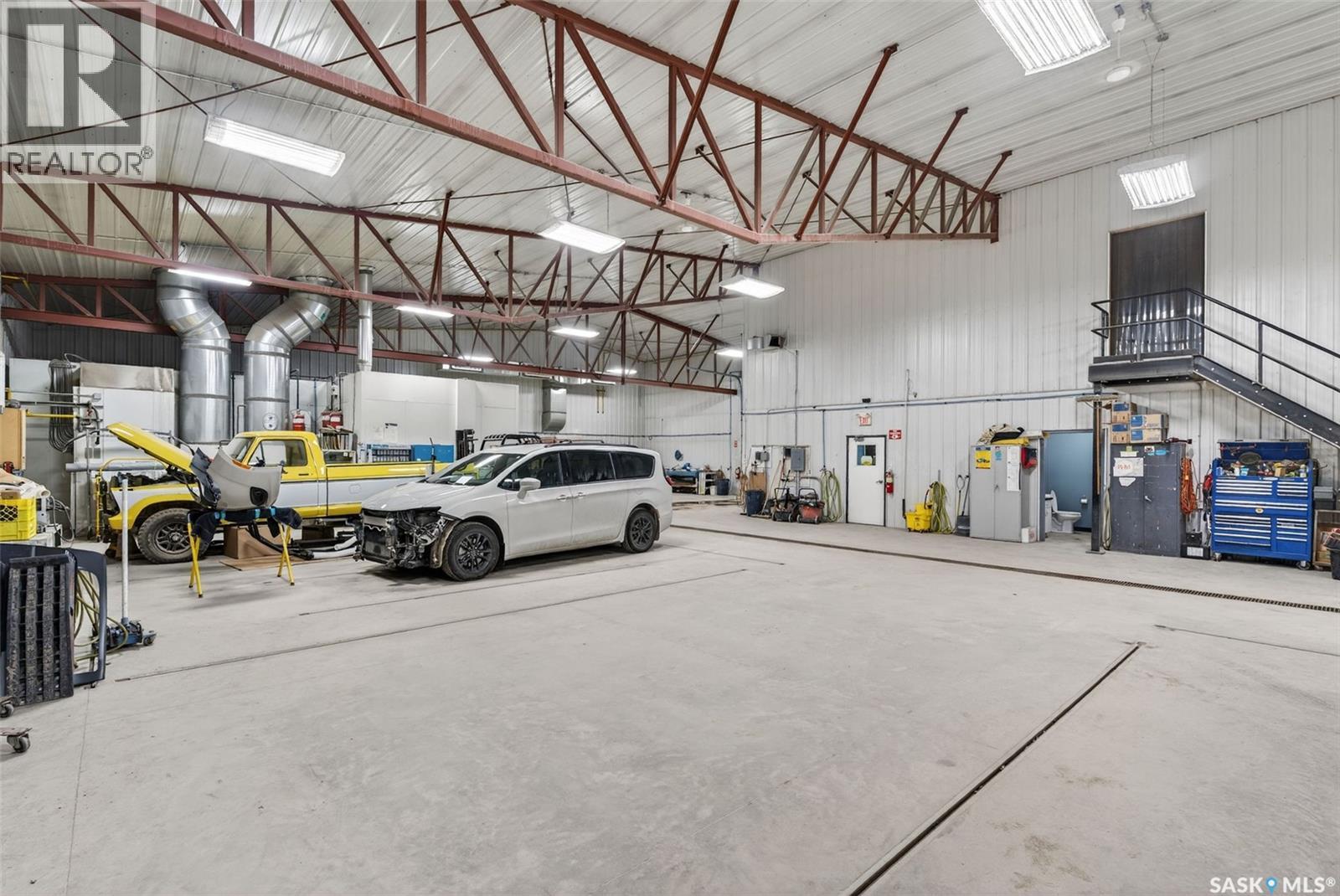 “Check out the Video and Photos of this Modern 7,000 Sq. Ft. Auto Body Facility (Built 2014) with Three-Phase Power & Paint Booth Included.” Turnkey opportunity to own a well-established and highly respected business—"Lanigan Auto Palace", a father-and-son operated auto body repair shop proudly serving the community for over 40 years. This modern, state-of-the-art facility was constructed in 2014 and offers approximately 7,000 sq. ft. (100’ x 70’) of steel-frame construction designed for efficiency and long-term durability. The building features in-floor heat, three-phase power, two 12-ft overhead doors, plus an additional overhead receiving door for smooth workflow and vehicle movement. Inside, you’ll find a professional reception area, multiple offices, and a dedicated staff/lunch room, providing a comfortable and functional workspace. The shop is fully equipped and includes a Global Finishing Solutions Ultra Plus Paint Booth, making this a true turnkey operation for continued success. A 20’ x 60’ mezzanine adds valuable storage space, while the wash bay connected to town sewer enhances daily operations and efficiency. The property sits on approximately 1 acre of land with 250 feet of frontage, offering excellent accessibility and room for expansion or additional uses. Additional outbuildings provide further storage, including the original shop building and a detached garage, giving flexibility for parts storage, overflow work, or rental potential. A Clean Phase 2 Environmental Report is available, offering peace of mind to buyers. Sellers are open to multiple options and would consider selling the building only, creating an excellent opportunity for investors or operators looking to establish or expand their automotive or light industrial business in the growing community of Lanigan. Call today for more information! (id:44393)