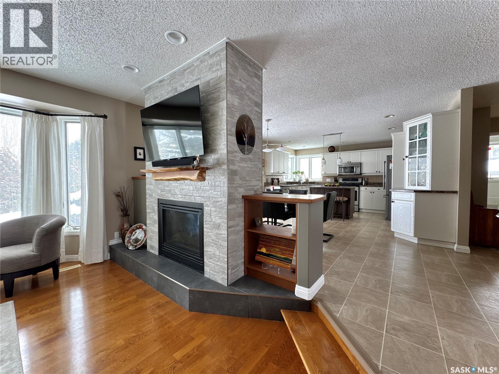 Picture this: you walk into 140 Morrison Drive and your eyes are immediately drawn to the showstopping double-sided natural gas fireplace, perfectly placed between the living and dining rooms. It’s the kind of feature guests notice the moment they arrive. Sunlight pours through large kitchen windows into the charming white kitchen, where thoughtful design shines — from the double sink overlooking the backyard to the center island, built-in china cabinet, and custom pull-out cabinetry that makes everyday living easier. Throughout the main living area, upgraded custom Pella windows with built-in blinds add both style and convenience — a premium feature you’ll appreciate every day. The dining space easily hosts everything from weeknight suppers to holiday meals, all beside the warmth of the fireplace. Patio doors open onto the oversized composite deck, extending your living space into the professionally landscaped backyard. The beautiful gazebo with retractable roof lets you choose sun or shade depending on the moment. The primary suite offers space for a king-sized bed, plus a walk-in closet and full ensuite. Two additional main-floor bedrooms are generously sized, each with charming window-seat nooks. Downstairs, the expansive rumpus room is ready for movie nights, games, and family memories. A flexible bonus space could become your bar, second kitchen area, playroom, or hobby zone. You’ll also find an oversized fourth bedroom, full bathroom, and well-appointed office. And yes — your pickup should fit. The insulated attached garage offers room without compromise. Set near parks and schools in one of Yorkton’s desirable neighbourhoods, 140 Morrison Drive is more than a house — it’s where your families story is written. As per the Seller’s direction, all offers will be presented on 04/20/2026 12:12AM. (id:44393)